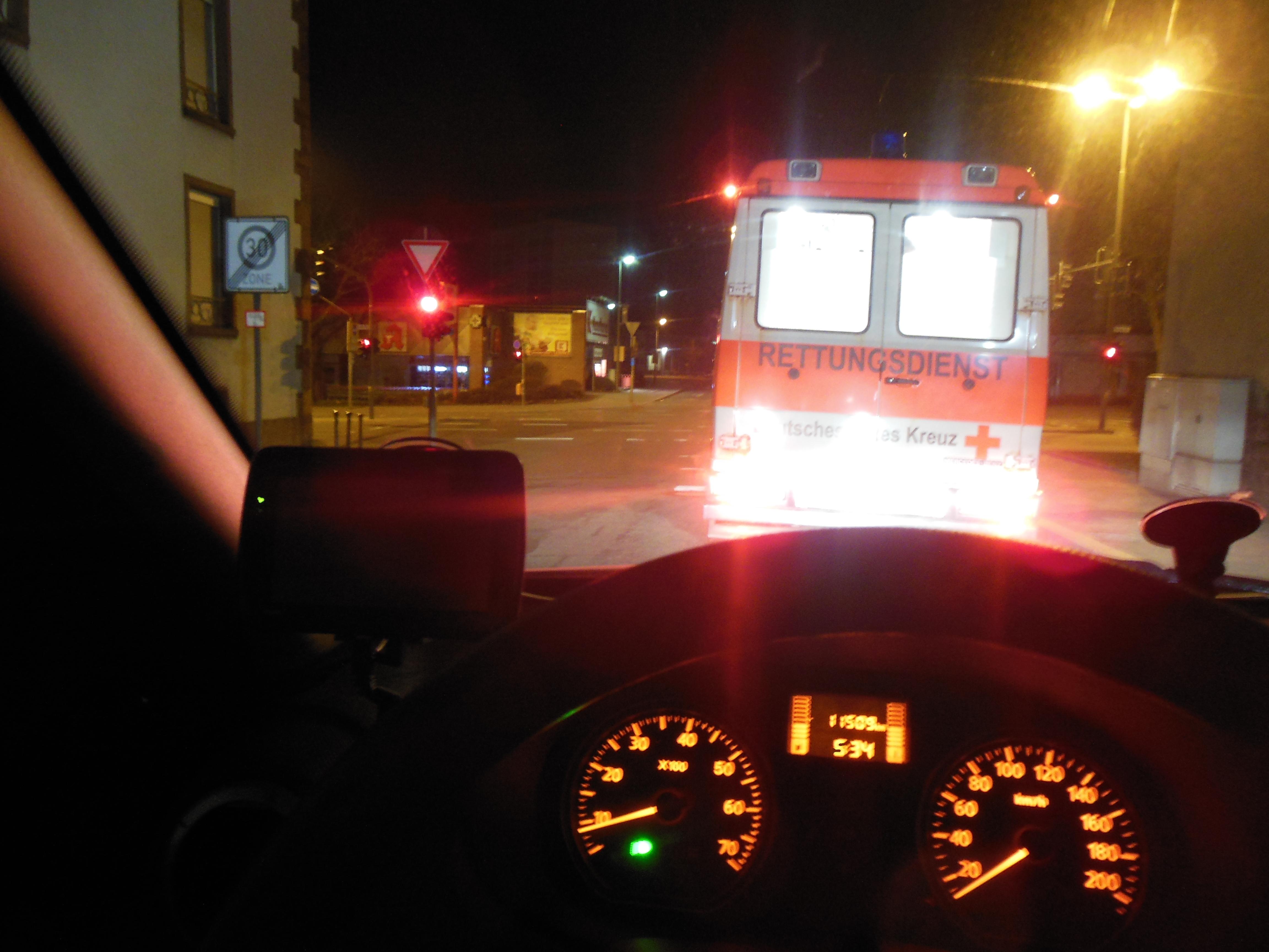 Kurze Zeit später kam in Krankenwagen mit 2 sehr netten Sanitätern. Sie kümmerten sich um Mama uns luden Sie ein. Ich folgte dem Auto ins Krankenhaus.