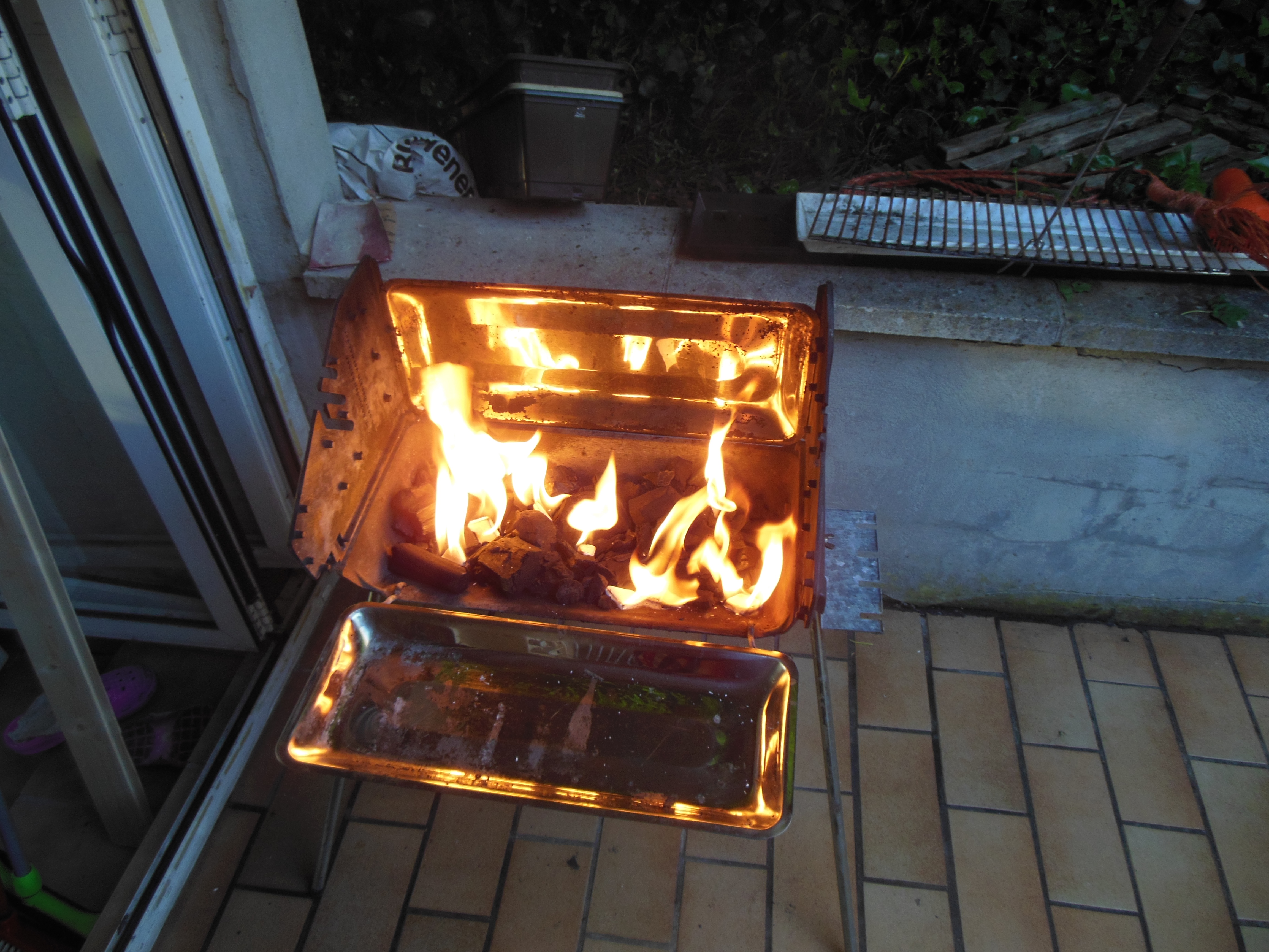 Ja, leider war es als die Sonne weg war doch schnell recht kühl geworden und so mussten wir rein gehen. Wenn der Wintergarten einmal in Ordnung ist, kann man auch da gemütlich sitzen nach dem grillen, oder wenns mal regnet heisst das ja nicht dass man nicht grillen kann. Der Fleischspender steht ja unter einem Vordach.