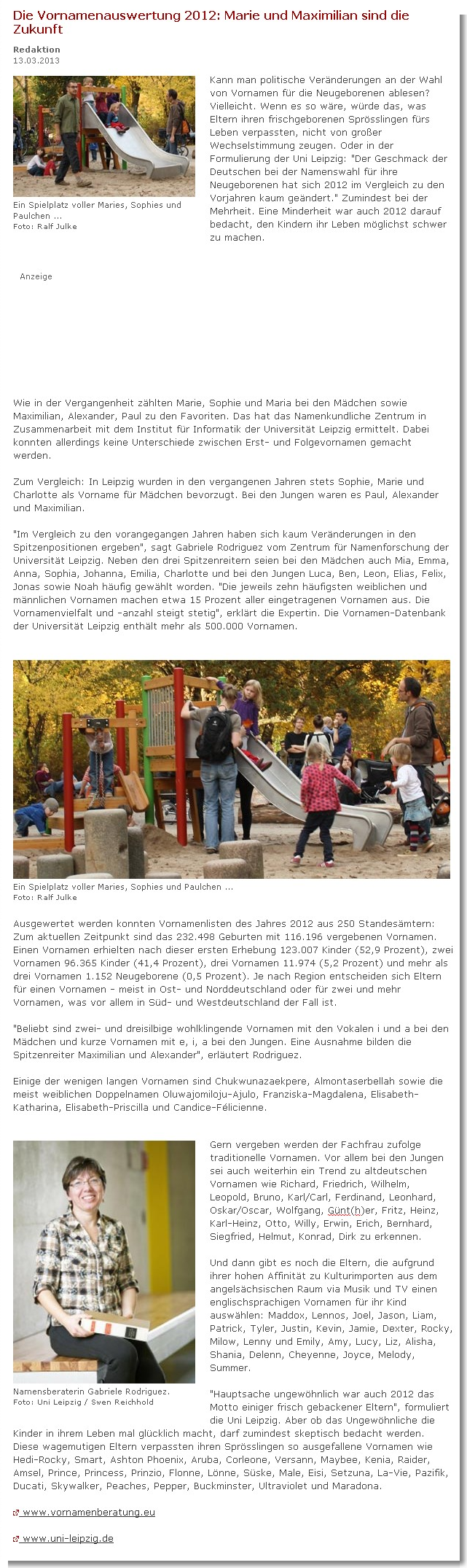 Quellen: 1, 2 & 3 http://www.l-iz.de/Leben/Familie%20und%20Kinder/2013/03/Kindervornamen-2012-Marie-und-Maximilian-46975.html Siehe unten