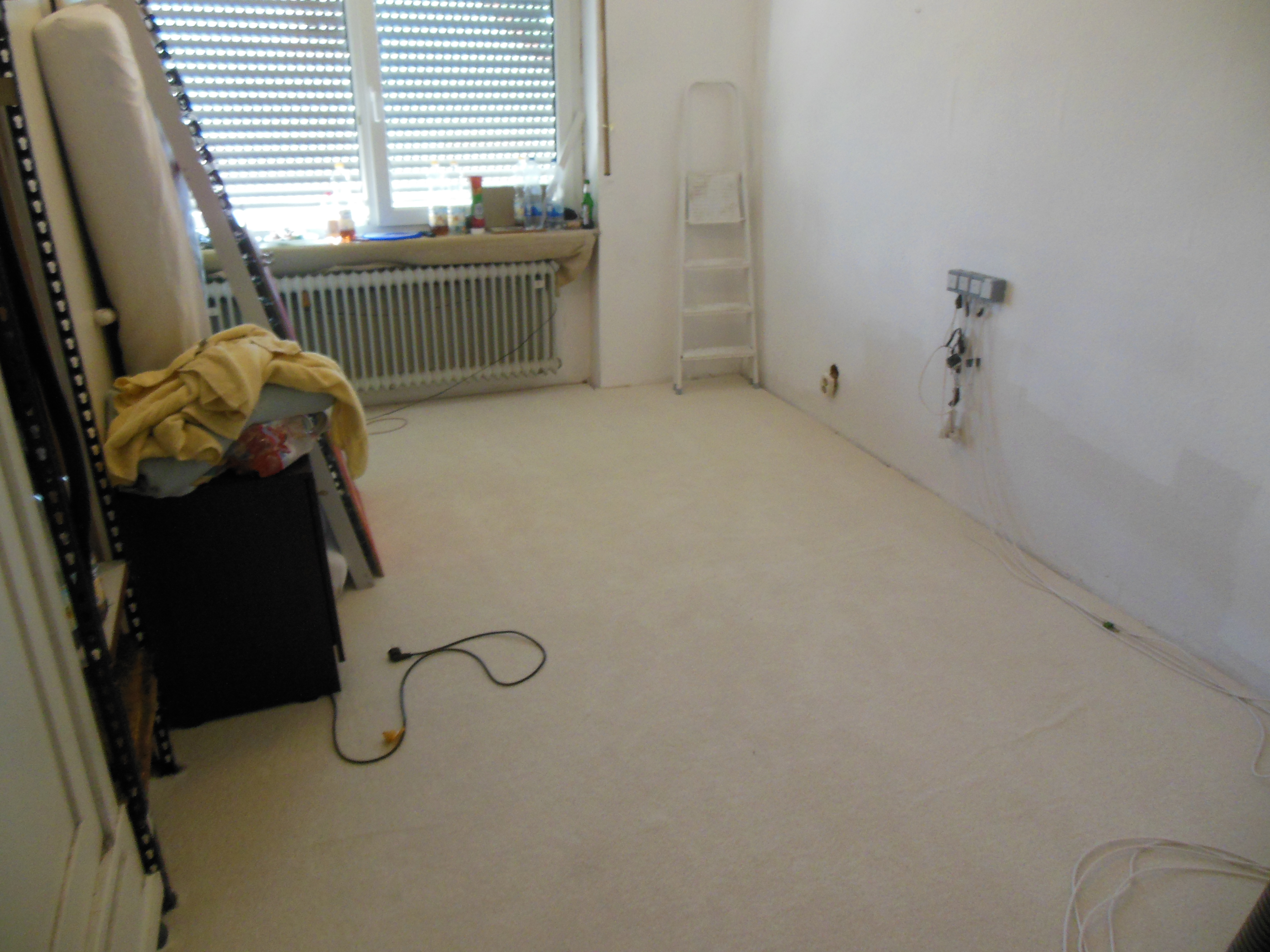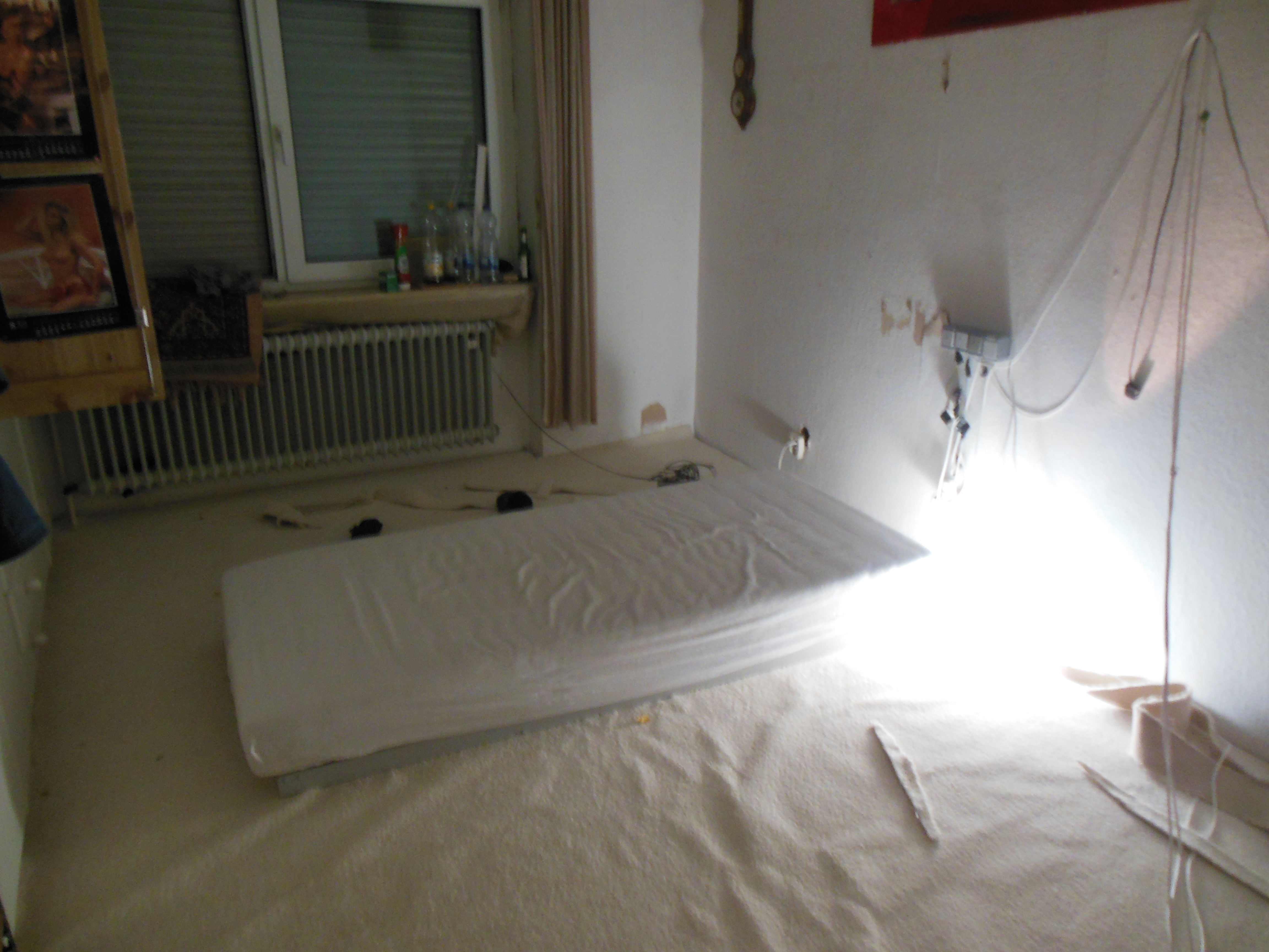 Leider habe Ich den Teppichboden vorher schon ausgelegt. Naja Ich hatte ja Abdeckplane. Nach dem streichen musste Ich mein Nachtlager mangels Ausweichmöglichkeit für 2 Nächte etwas provisorisch aufschlagen.