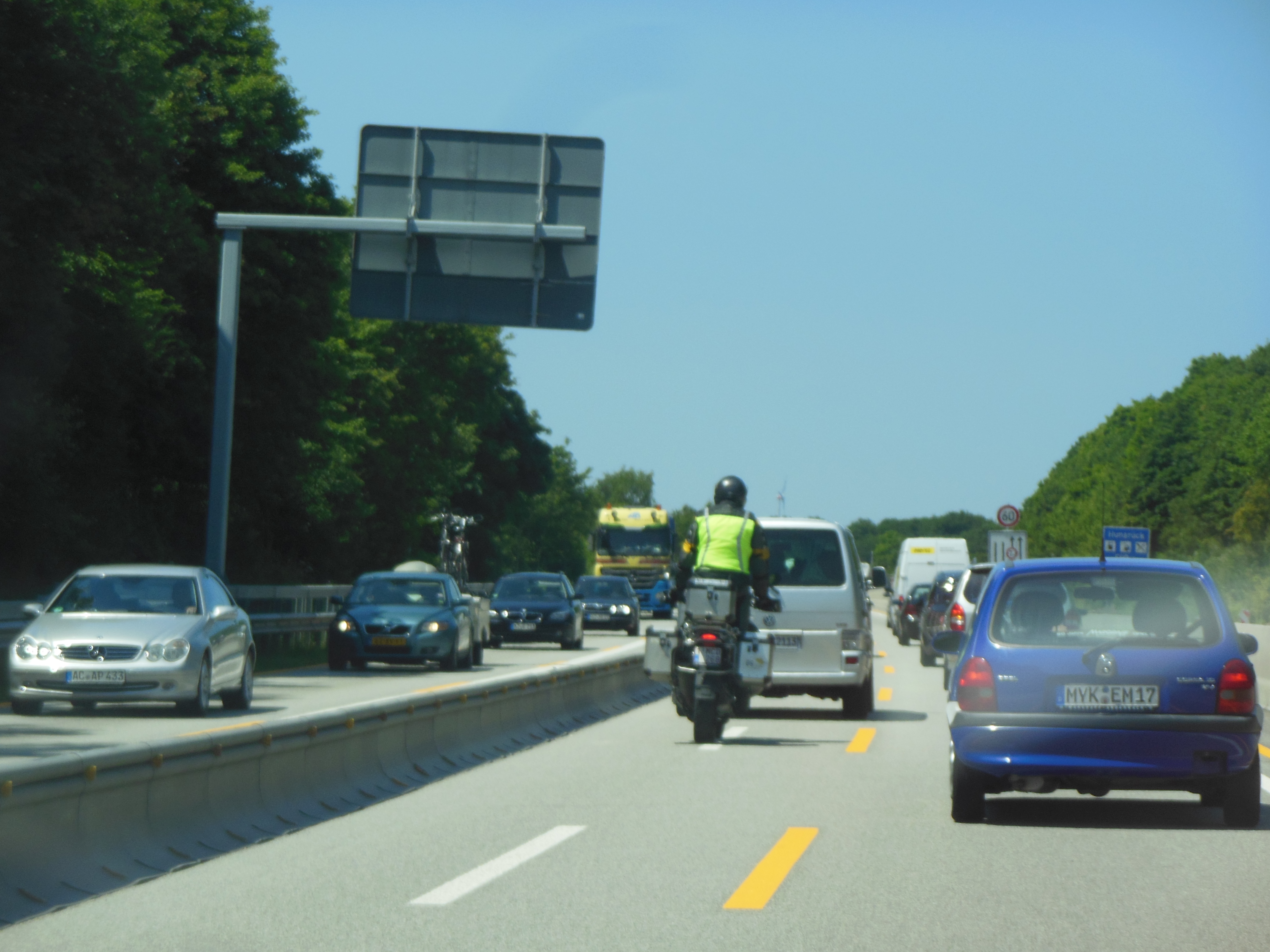 Unterwegs hatten wir ein wenig stockenden Verkehr wo Ich unter anderem diesen Motorradfahrer fand der sich ein wenig Überblick verschaffen wollte.