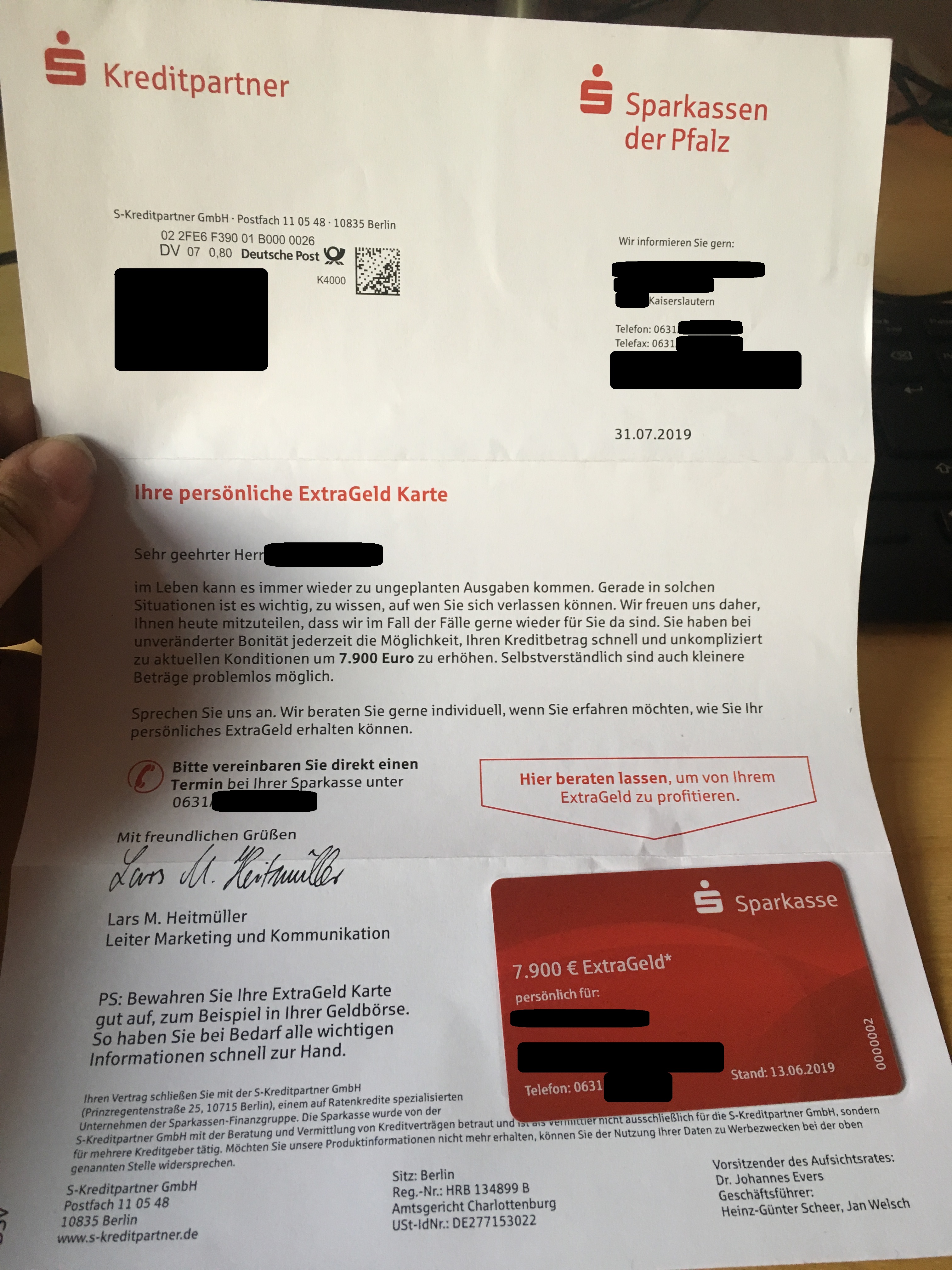Ja, da beantragt man ein einziges mal in seinem Leben einen Kredit um seine Autoreparatur zu bezahlen und kurze Zeit später bekommt man schon Werbung für die nächste Finanzspritze mit der Post zugeschickt.