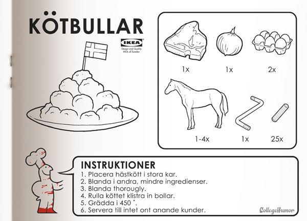 Aufgrund dieser Urkomik der Anleitungen des Kötbullarlieferanten und der meist sehr ironischen Werbung sowie der für deutsche Ohren manchmal ziemlich absurd klingenden Produktnamen hat sich anscheinend eine ganze Witzeindustrie an dem Thema abgearbeitet.