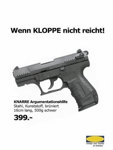 Wem das noch nicht ausreicht, für den ist vielleicht KNARRE das richtige Produkt. Man sagt ein Verkaufsschhlager in den USA!