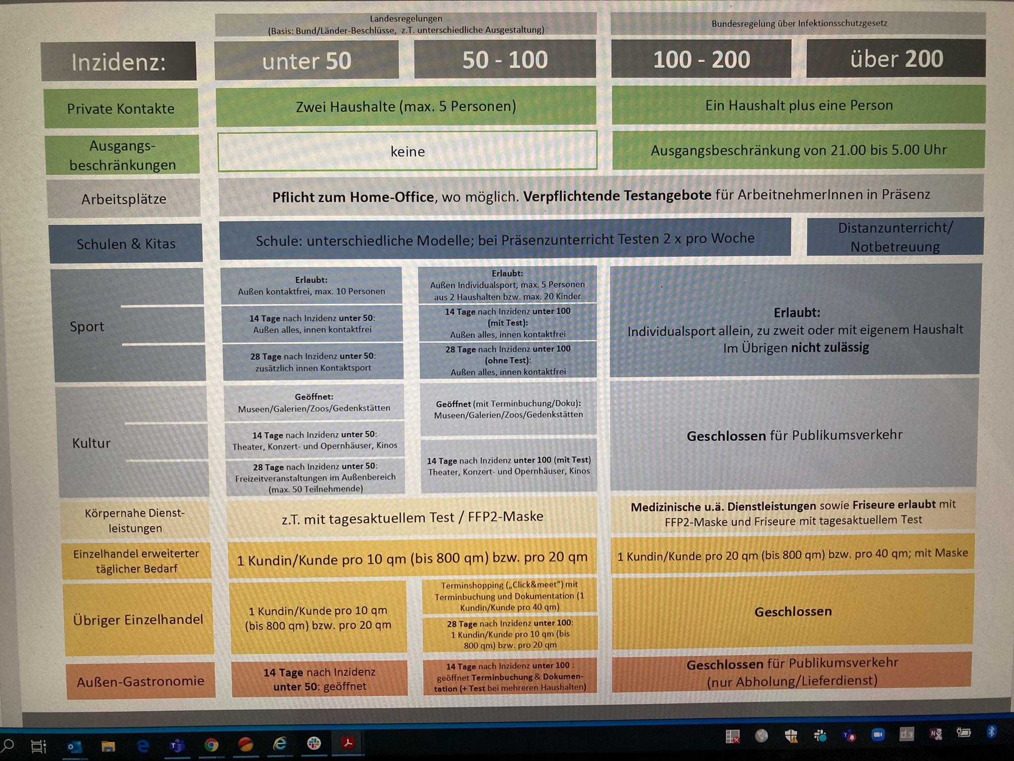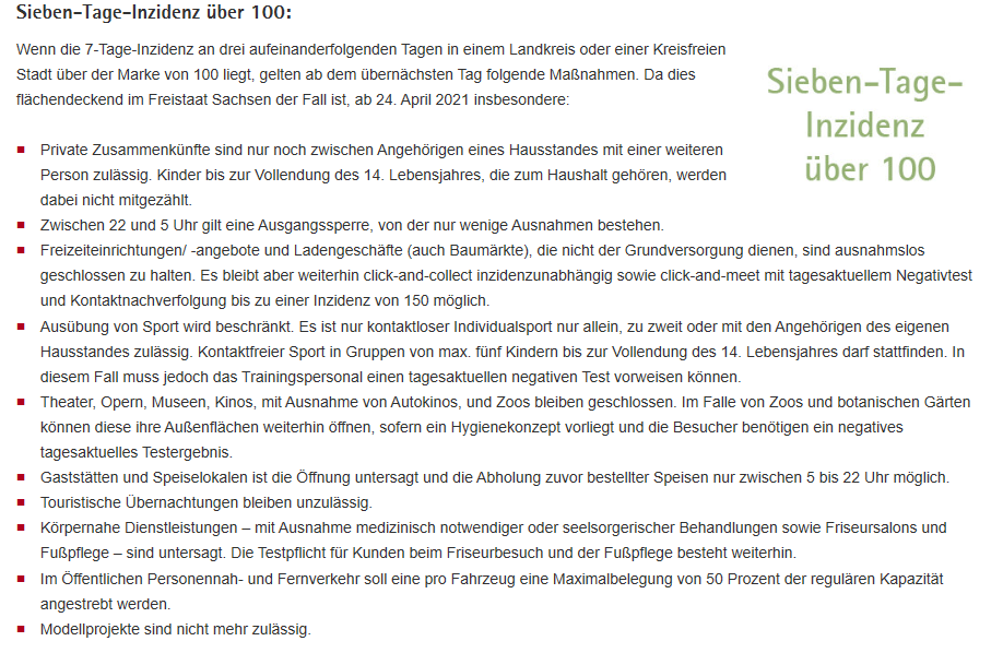 Dorst stehen kaum und knapp ein paar hingeworfene Sätze was denn so bei einer Inzidenz von soundso erlaubt sein soll und was nicht. Mit erheblichen Lücken!
