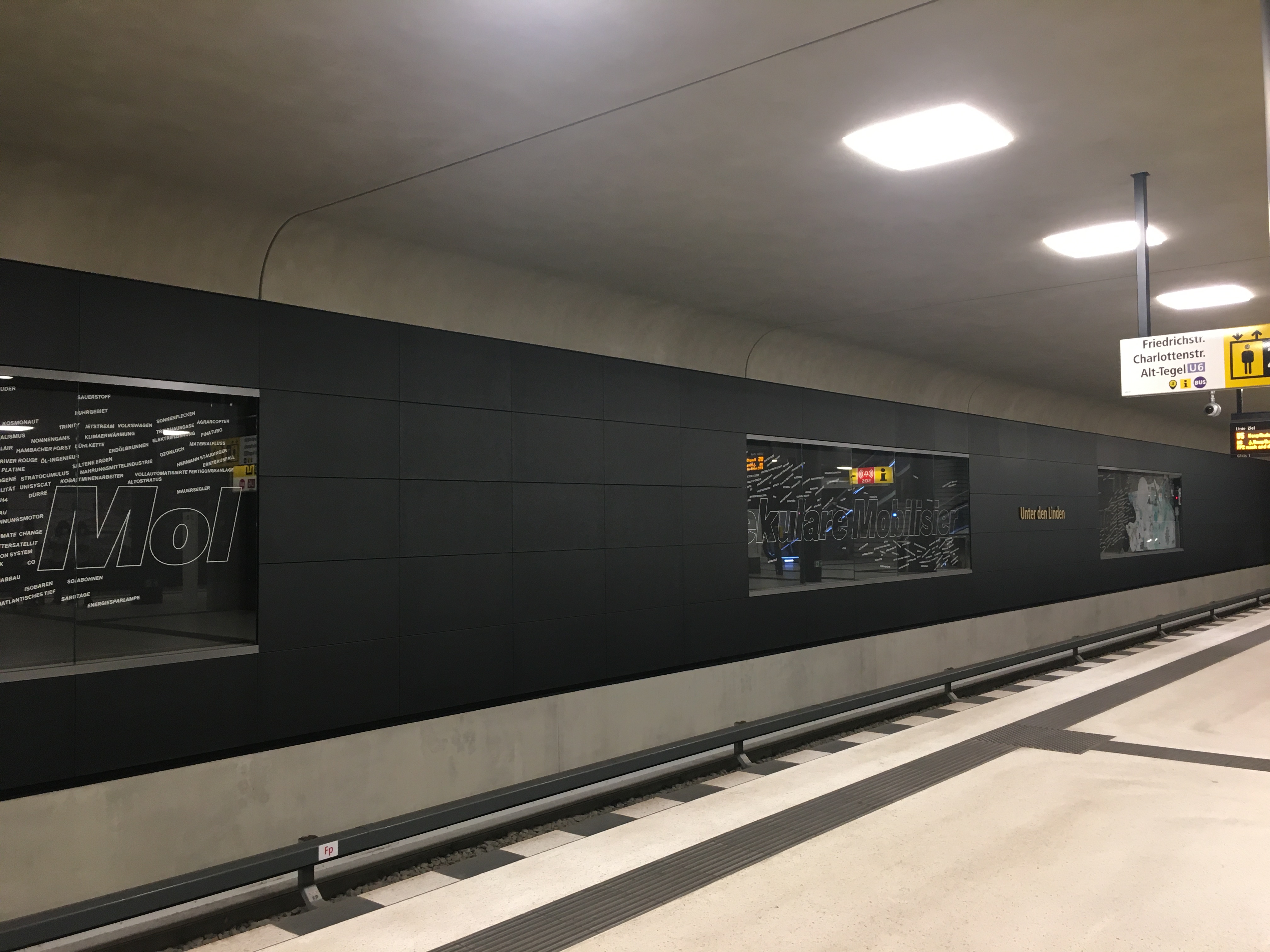 Wunderbar gemacht finde Ich den. Klassische moderne Sachlichkeit. Das mag Ich überhaupt so an der U-Bahn in Berlin: Jede Station ist eine kleine Konserve Ihrer Entstehungszeit. Ganz schlimm schrill bunte Stationen aus dem 70ern neben der Moderne von heute!