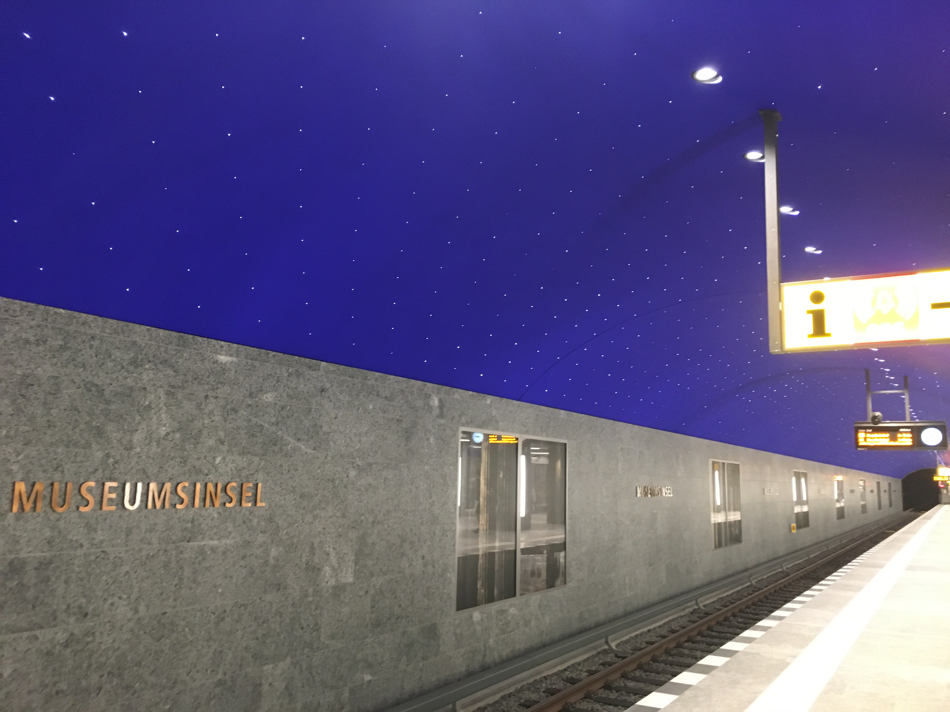 Danach also der ganz neue U-Bahnhof Museumsinsel! WOW! Wirklich ein wunderschönes Kleinod im Untergrund! Diese ganz klaren eckigen Strukturen gemixt mit diesem Sternenhimmel sind einfach nur klasse. Ich mag ja diese ganz sachliche Architektur.