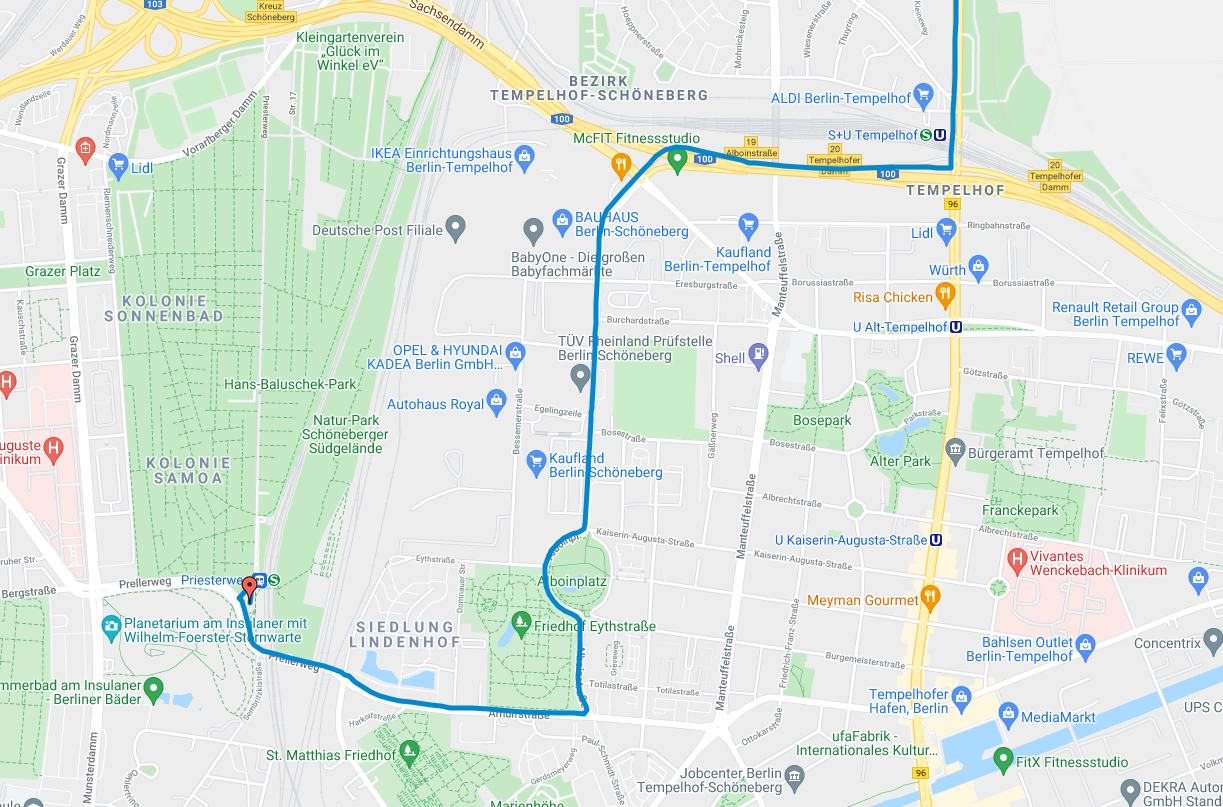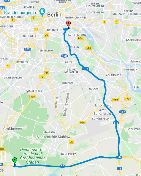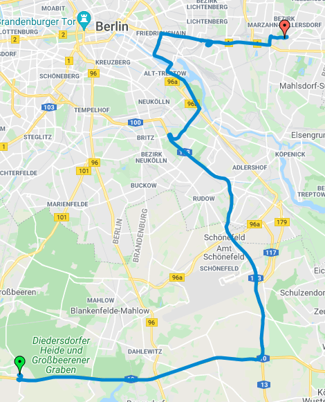 Über die A10 und die A13 ging es wieder gen Norden an einen P+R Parkplatz in Kaulsdorf an S und U Bahnhof Wuhletal.