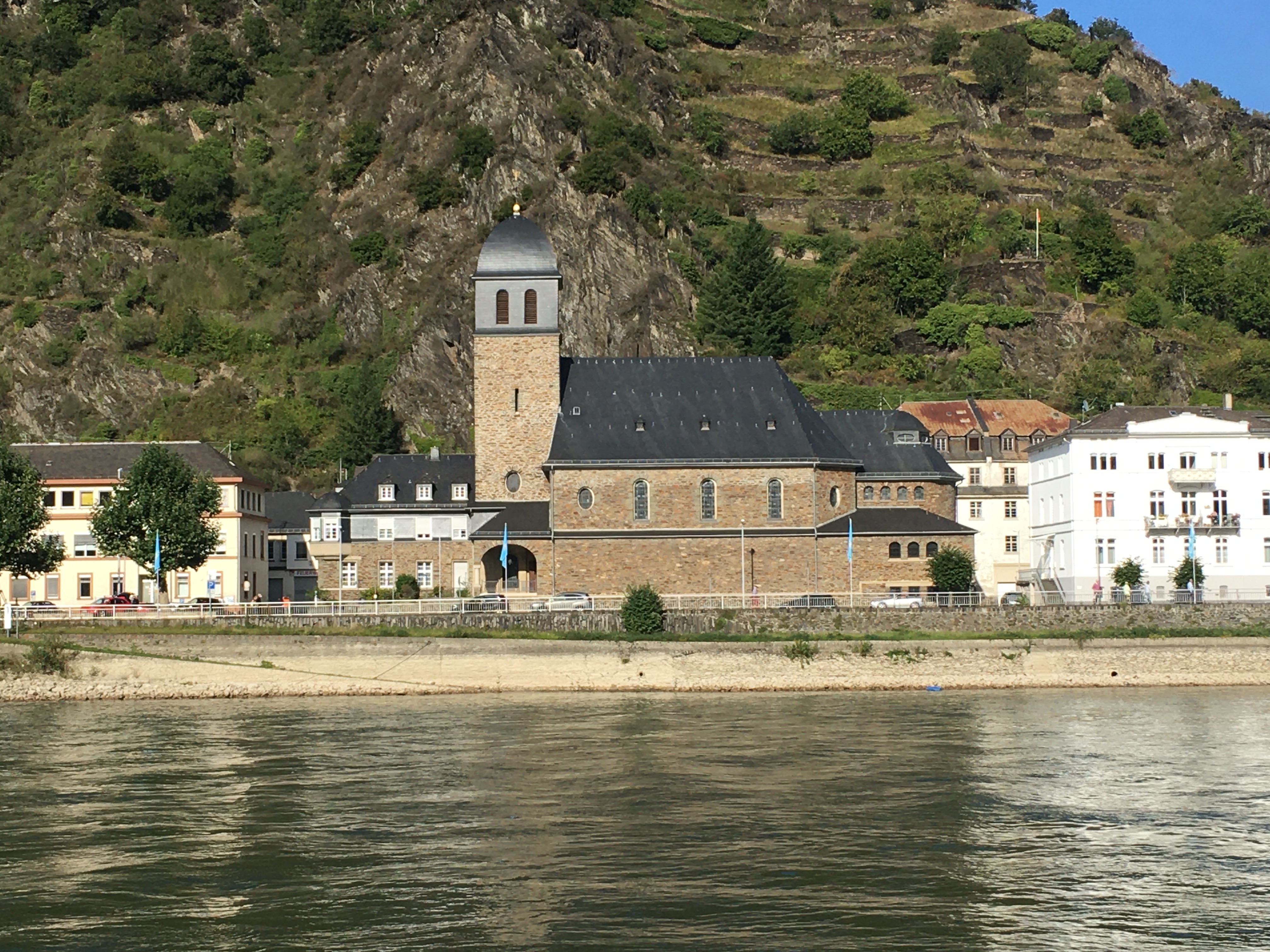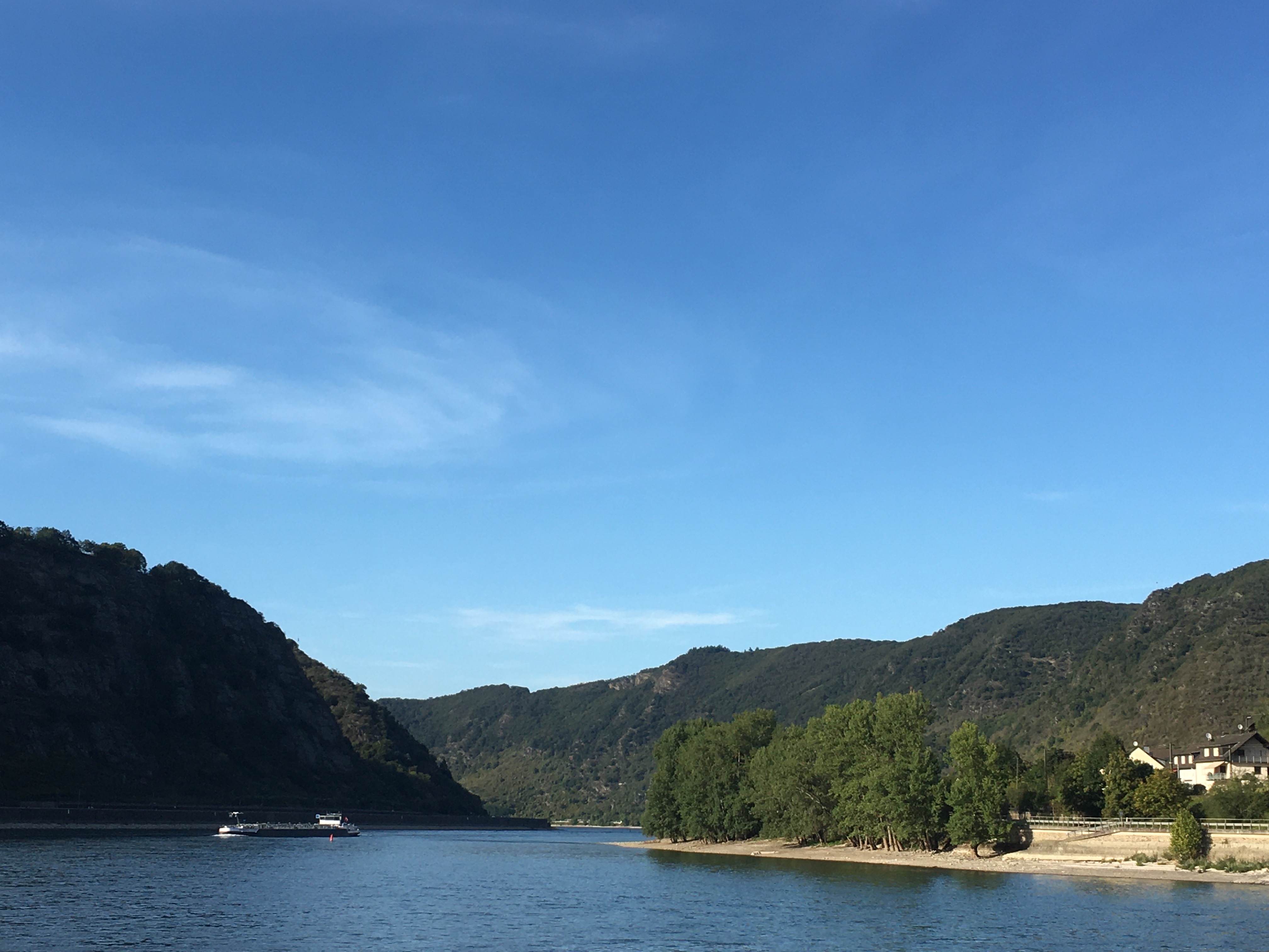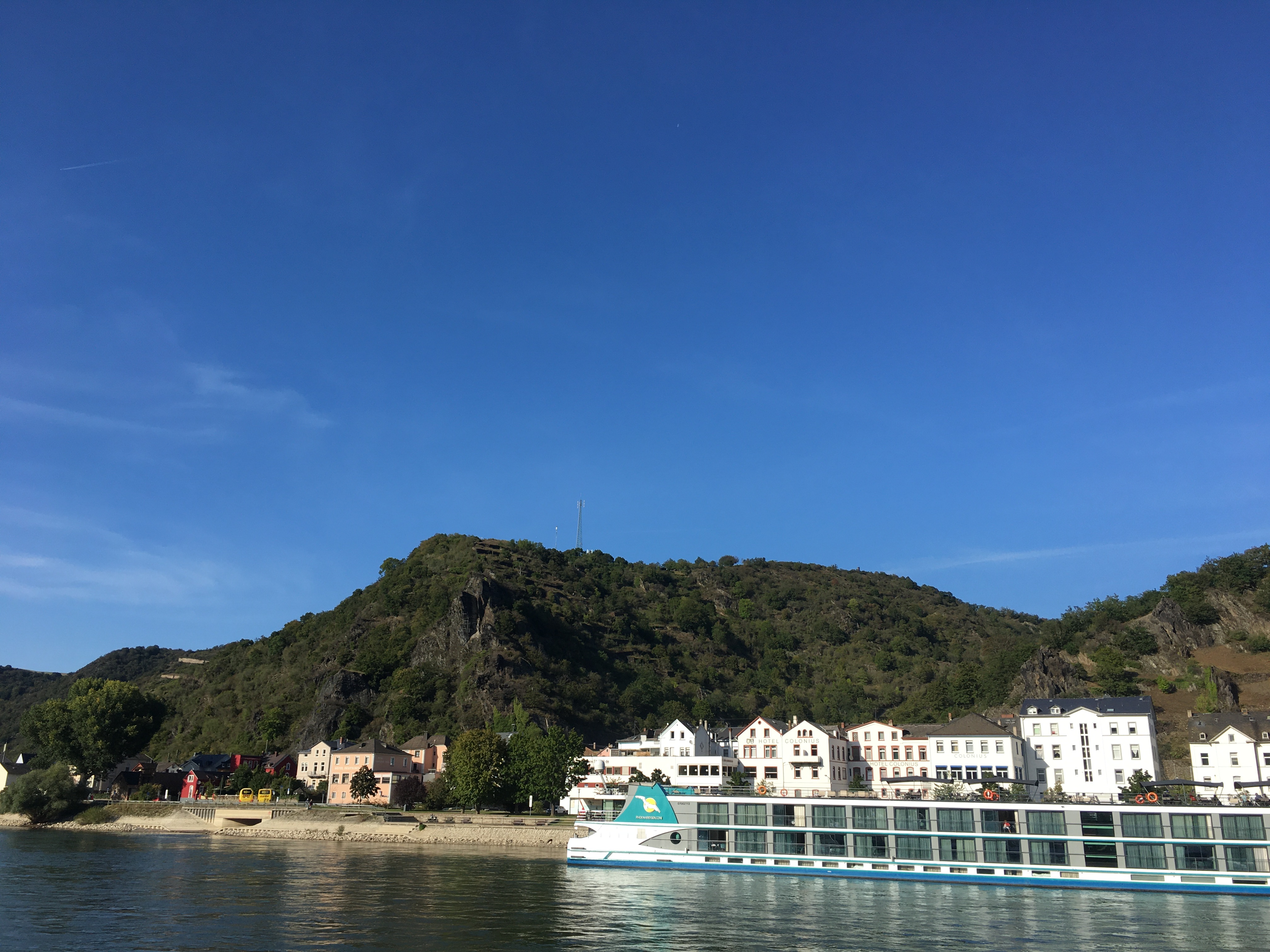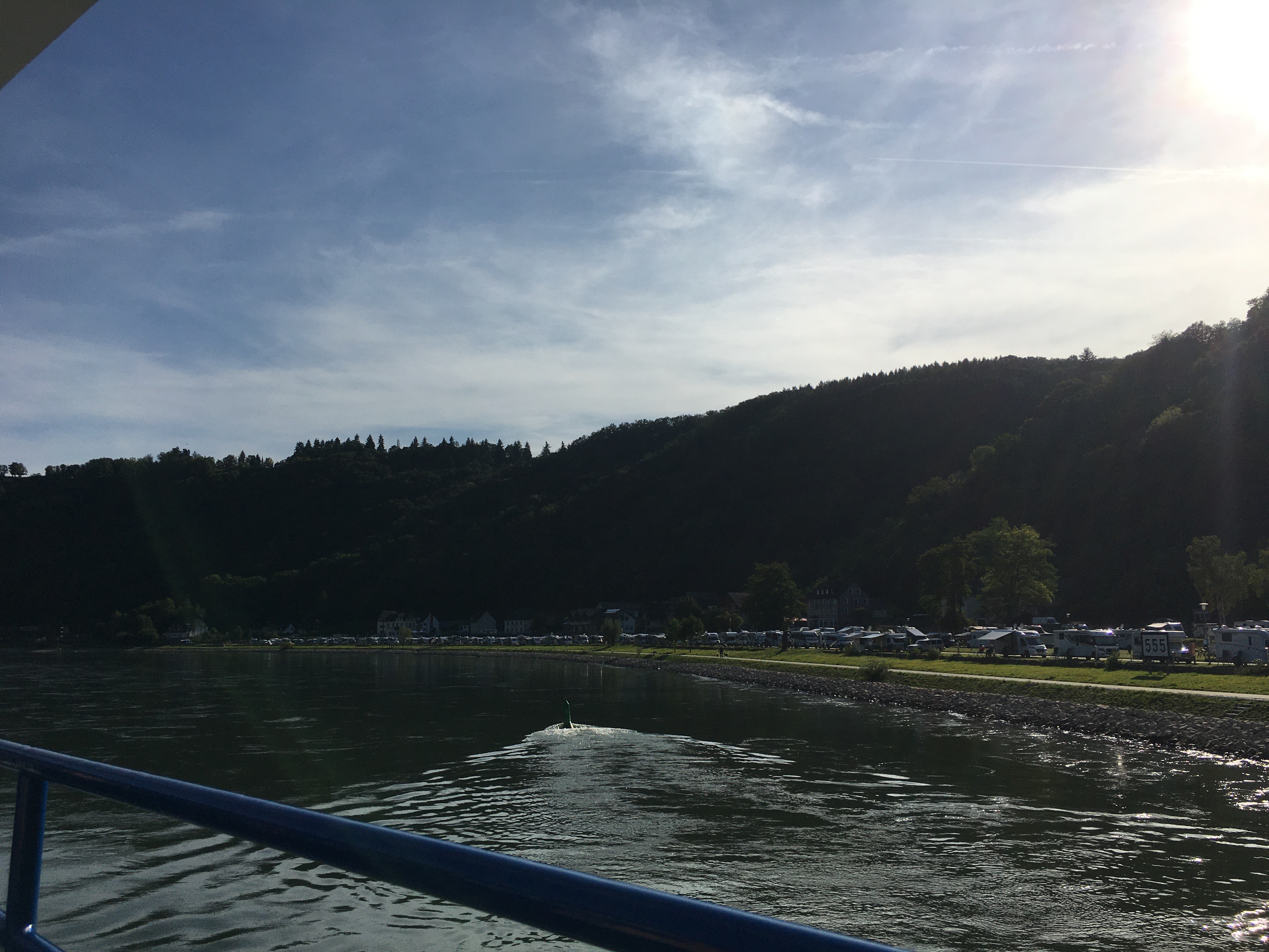 Boppard ist eine sehr schöne, kleine, und vorallem gemütliche Stadt. Ich stand seit Jahr(zehnt)en das erste mal wieder direkt am Rhein und war schon beeindruckt von diesen Dimensionen. Die Elbe hat hier in Dresden ungefähr eine Breite von 160 m (ca. Angabe aus Google Maps am Terrassenufer). In Boppard sind das mal locker 400 m an mancher Stelle. Das beeindruckt schon, wenn man da den “alten Gevatter Rhein” so vor sich fließen sieht und dann links und rechts unmittelbar in Ufernähe diese rieseigen Felsen in den Himmel aufsteigen sieht. Der Fluss hat sich ja da viel tiefer in die Landschaft gegraben als die Elbe hier in Dresden.