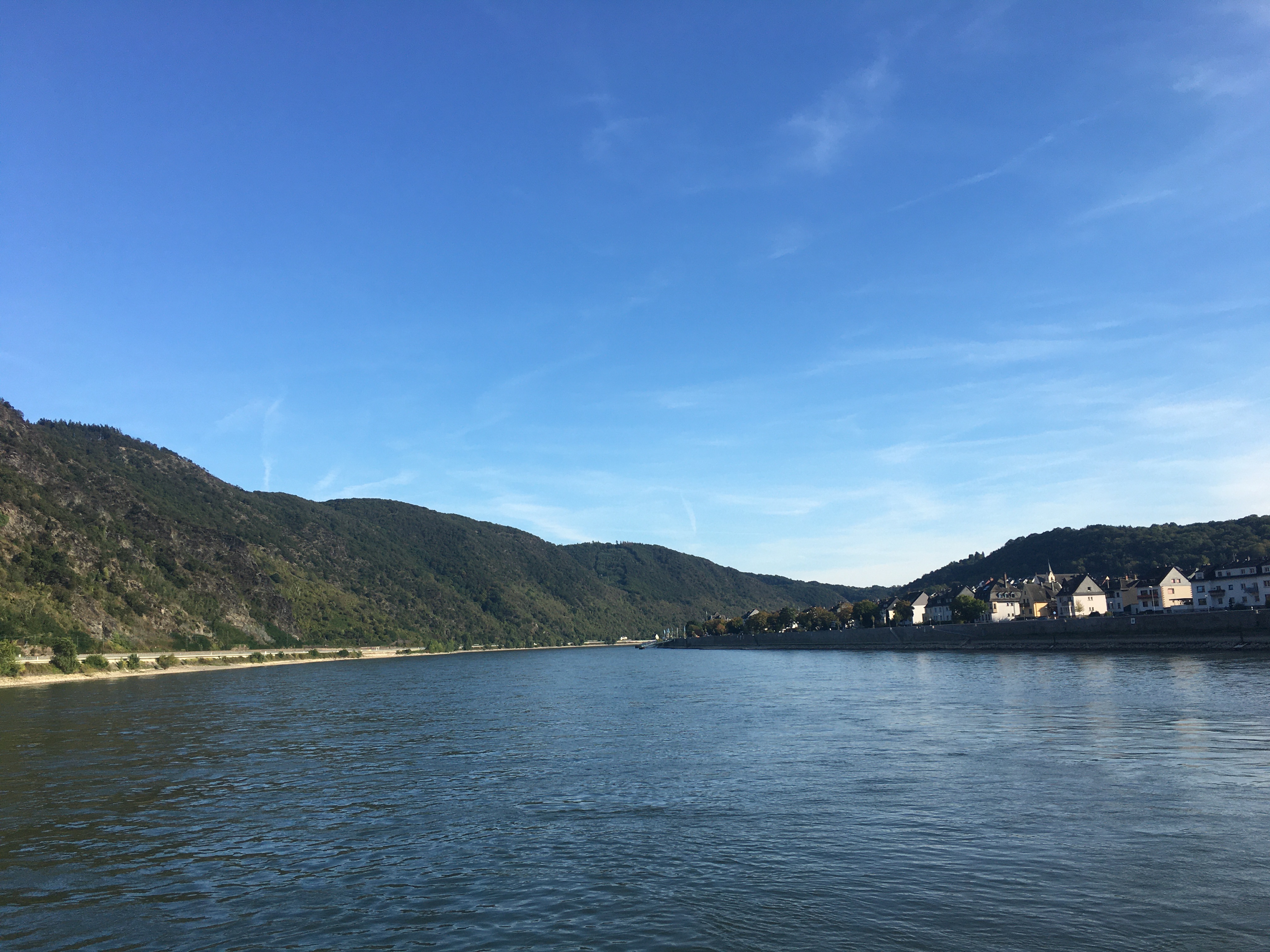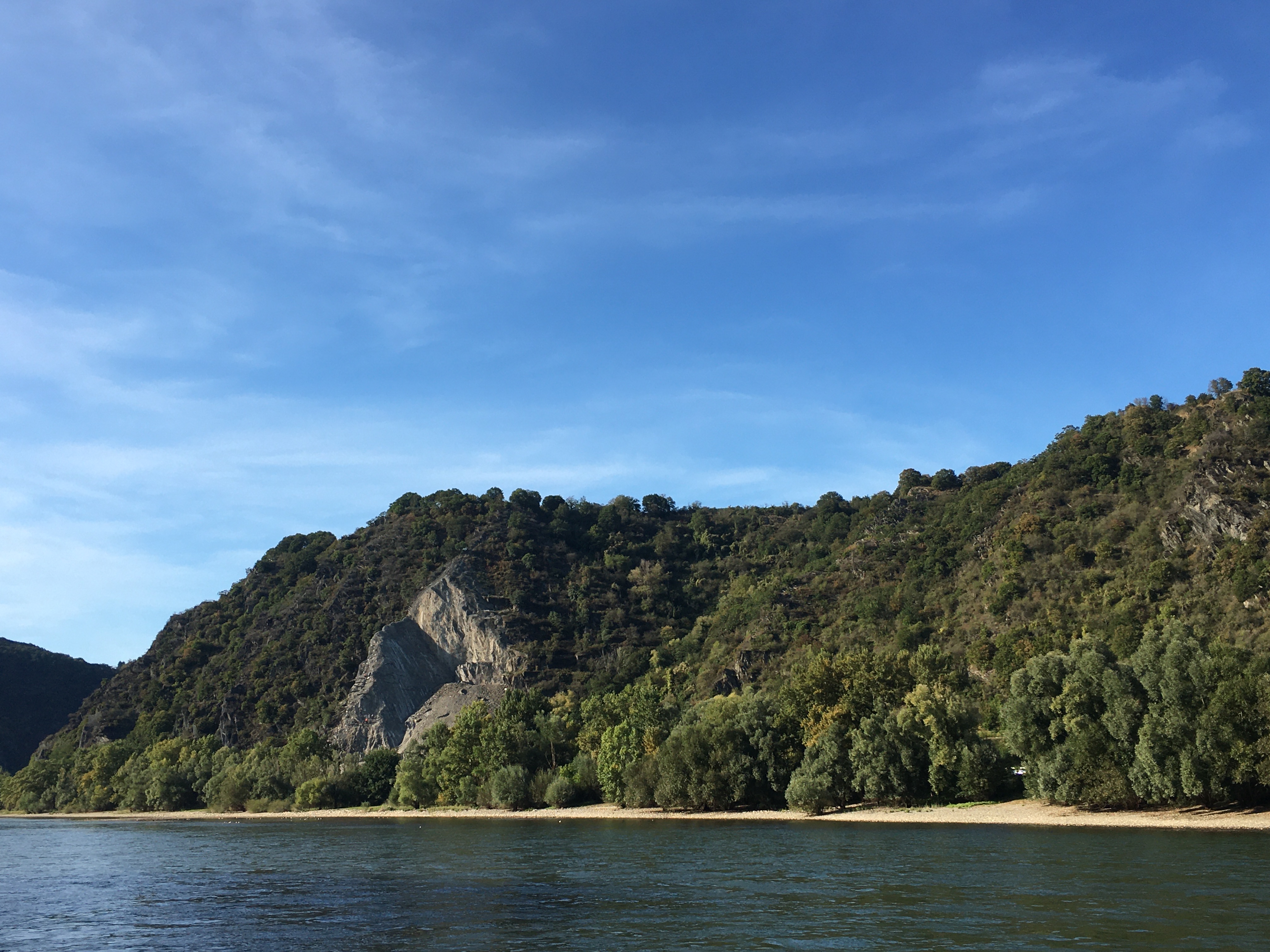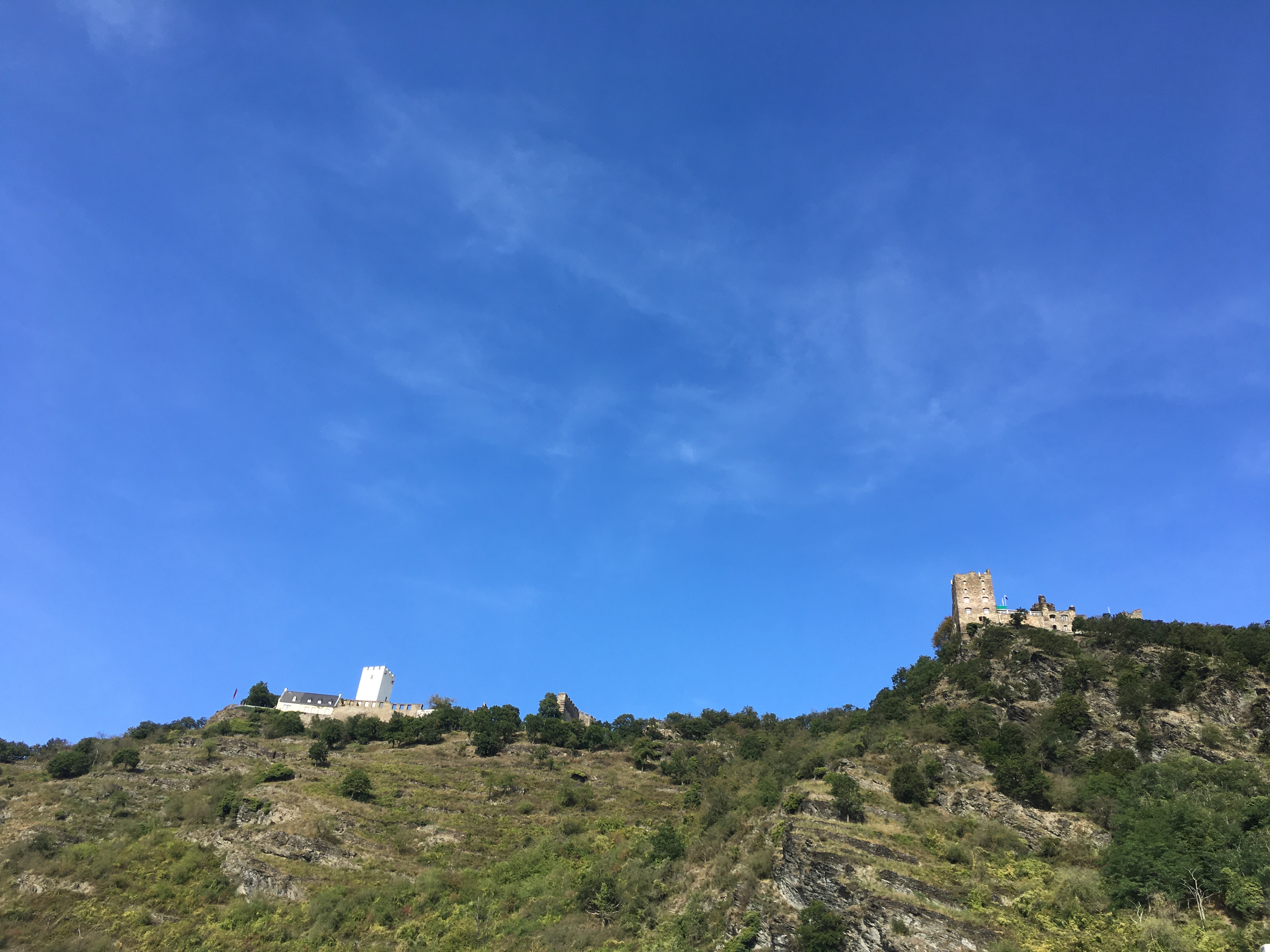 Boppard ist eine sehr schöne, kleine, und vorallem gemütliche Stadt. Ich stand seit Jahr(zehnt)en das erste mal wieder direkt am Rhein und war schon beeindruckt von diesen Dimensionen. Die Elbe hat hier in Dresden ungefähr eine Breite von 160 m (ca. Angabe aus Google Maps am Terrassenufer). In Boppard sind das mal locker 400 m an mancher Stelle. Das beeindruckt schon, wenn man da den “alten Gevatter Rhein” so vor sich fließen sieht und dann links und rechts unmittelbar in Ufernähe diese rieseigen Felsen in den Himmel aufsteigen sieht. Der Fluss hat sich ja da viel tiefer in die Landschaft gegraben als die Elbe hier in Dresden.