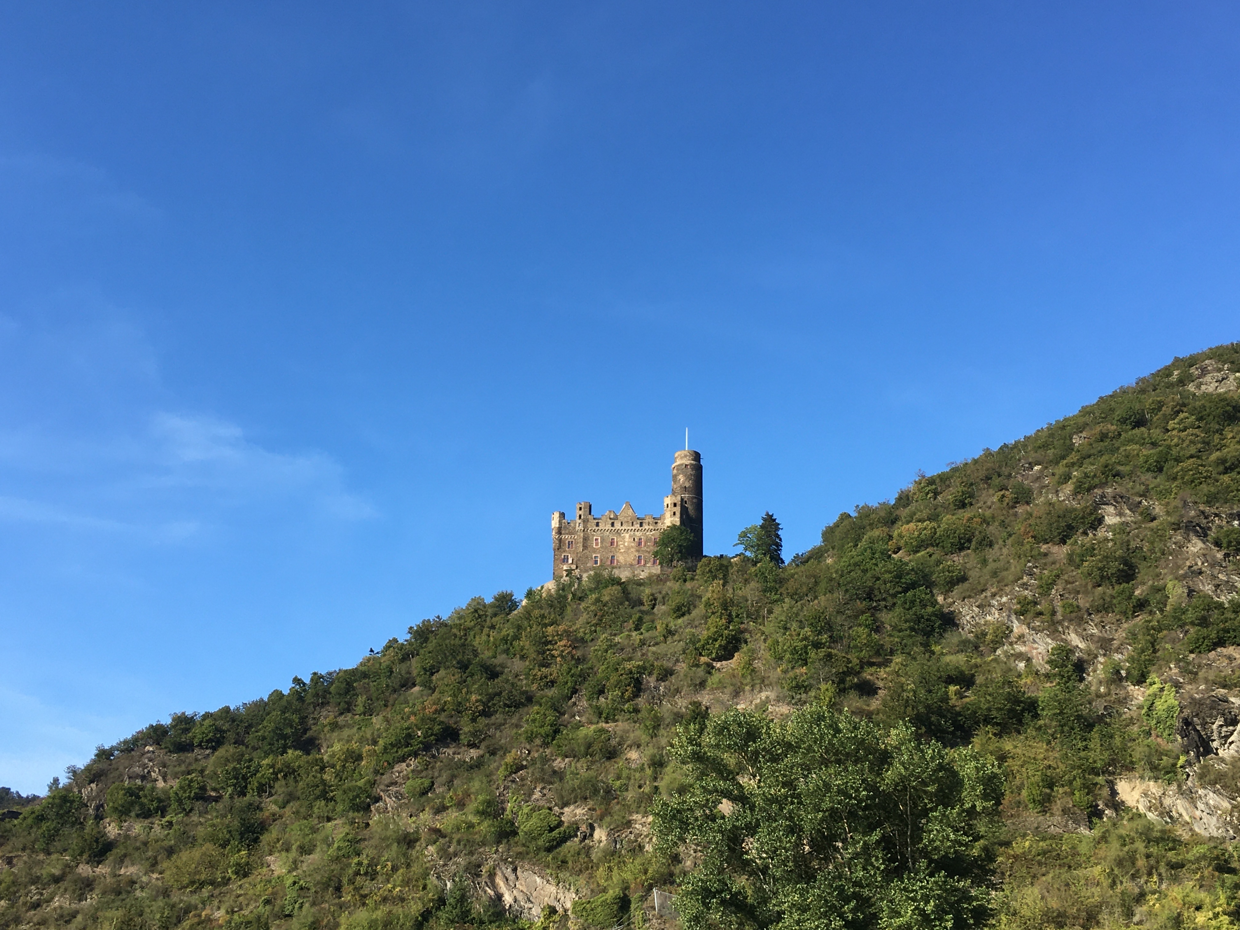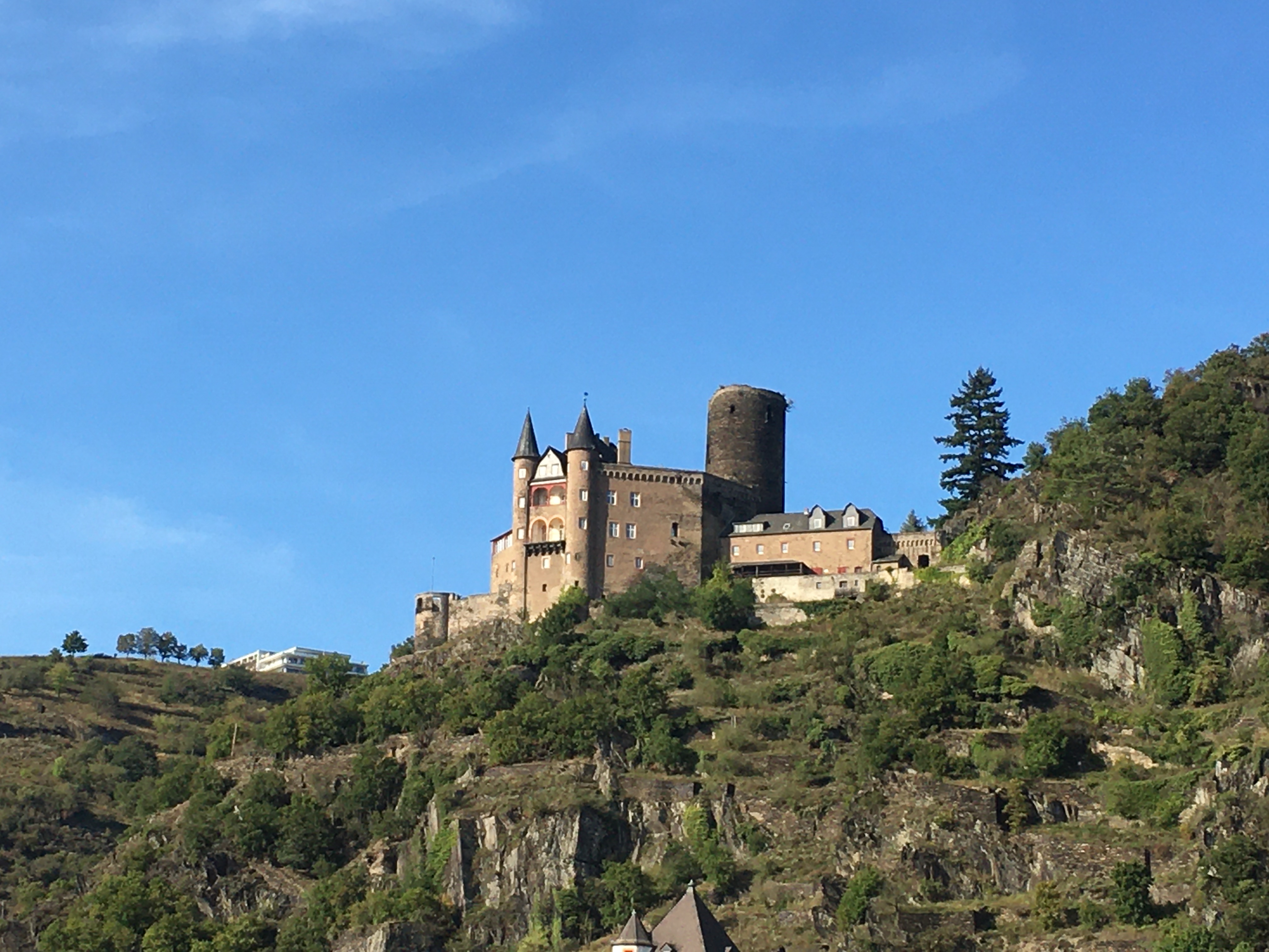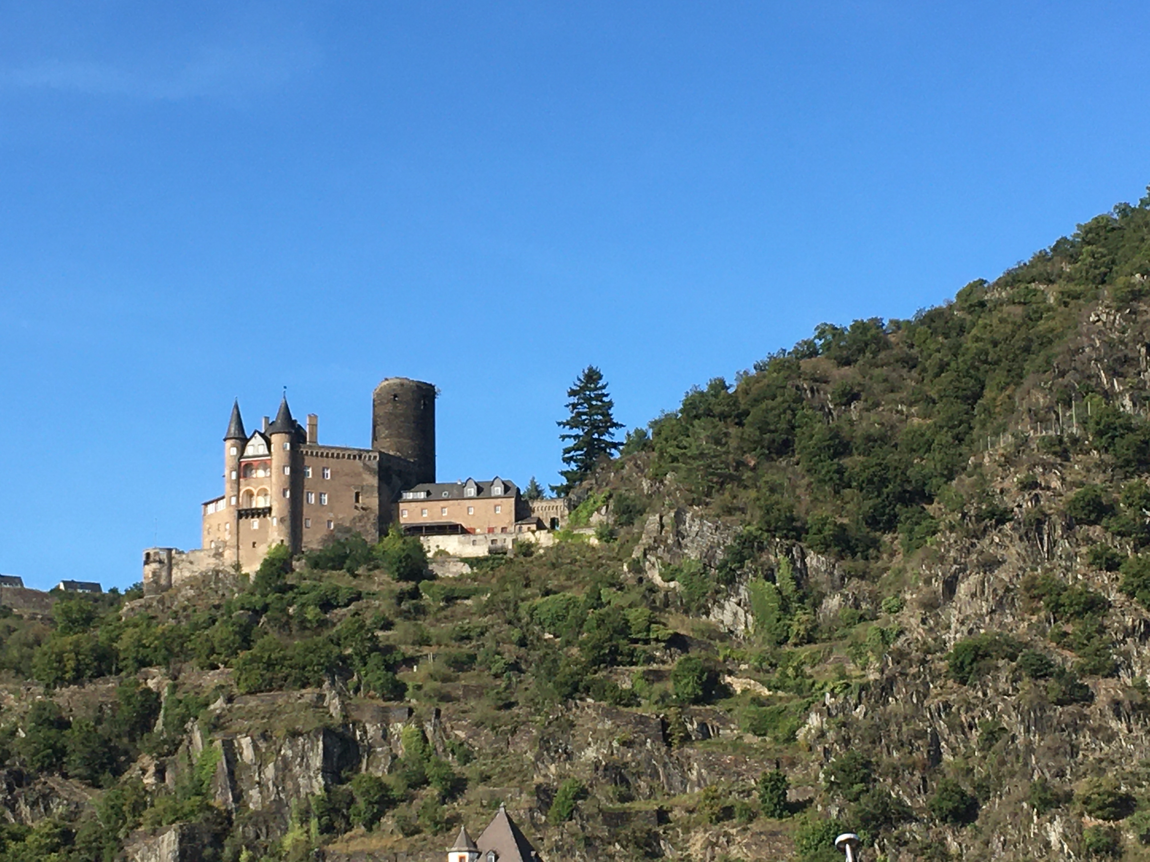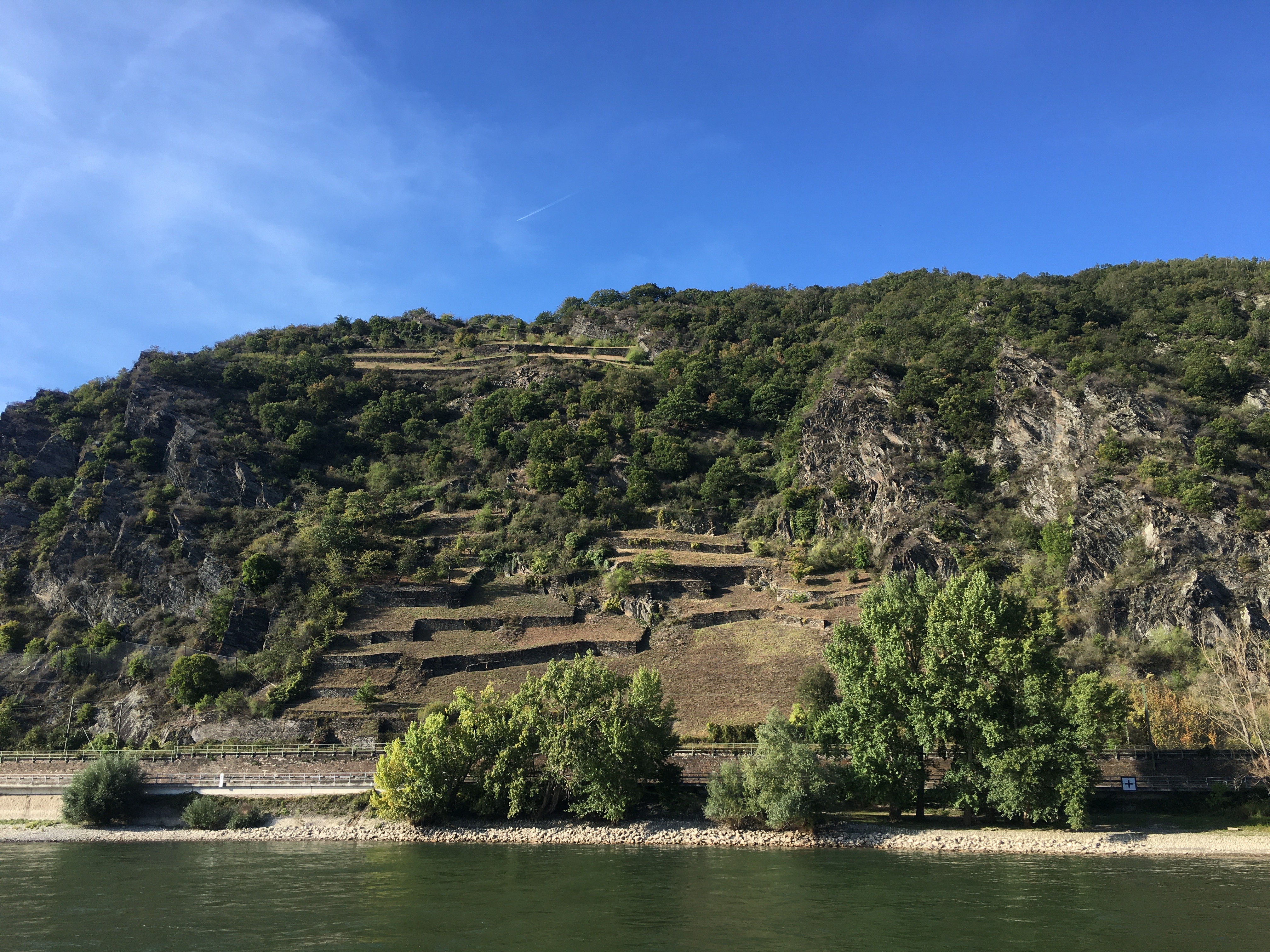 Boppard ist eine sehr schöne, kleine, und vorallem gemütliche Stadt. Ich stand seit Jahr(zehnt)en das erste mal wieder direkt am Rhein und war schon beeindruckt von diesen Dimensionen. Die Elbe hat hier in Dresden ungefähr eine Breite von 160 m (ca. Angabe aus Google Maps am Terrassenufer). In Boppard sind das mal locker 400 m an mancher Stelle. Das beeindruckt schon, wenn man da den “alten Gevatter Rhein” so vor sich fließen sieht und dann links und rechts unmittelbar in Ufernähe diese rieseigen Felsen in den Himmel aufsteigen sieht. Der Fluss hat sich ja da viel tiefer in die Landschaft gegraben als die Elbe hier in Dresden.