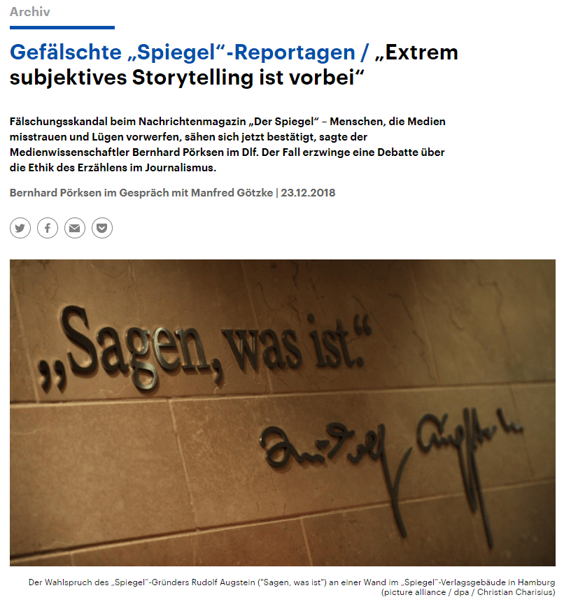 In der Hamburger Zentrale des SPIEGEL hängt in der Eingangshalle ein Zitat des Spiegelgründers Rudolf Augstein: “Sagen was ist”.