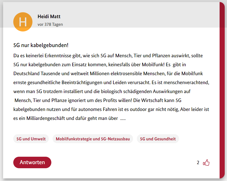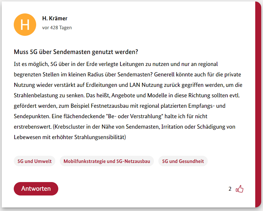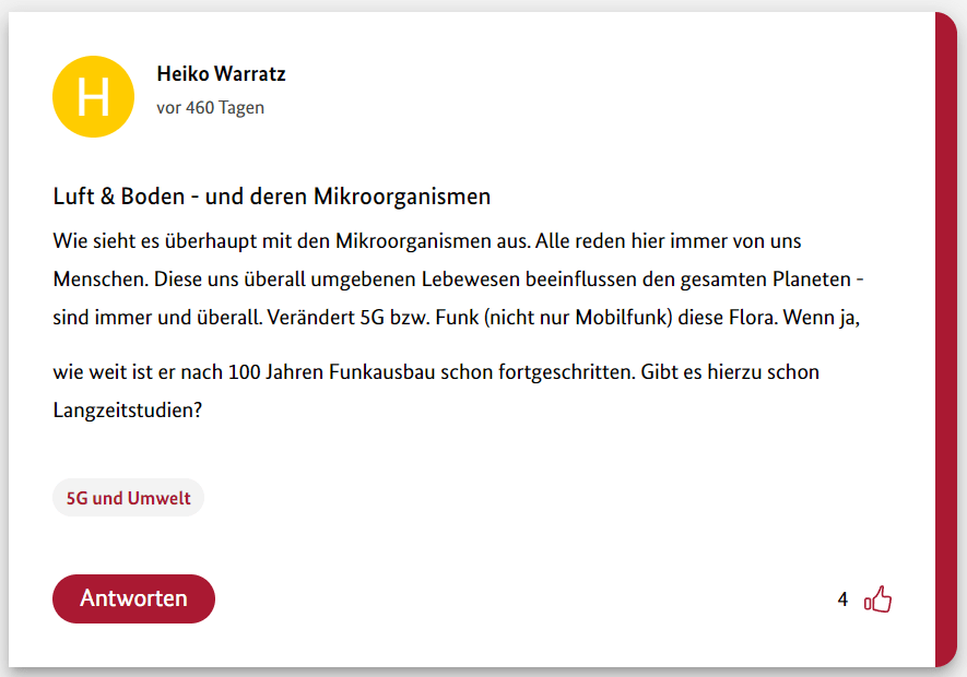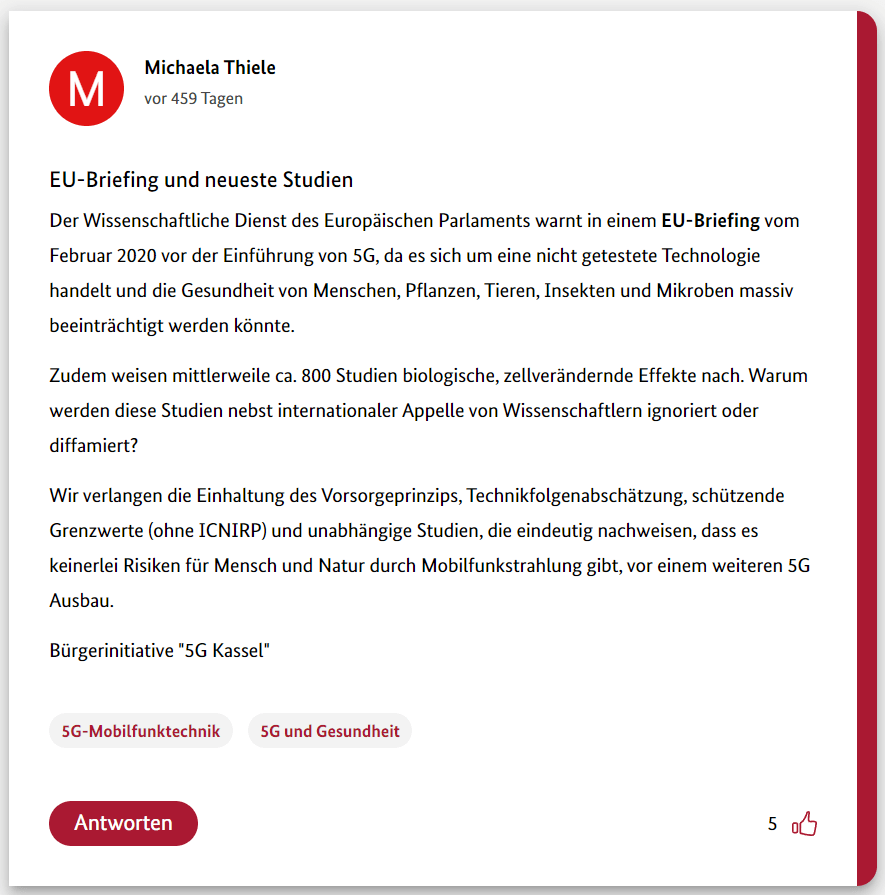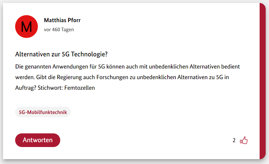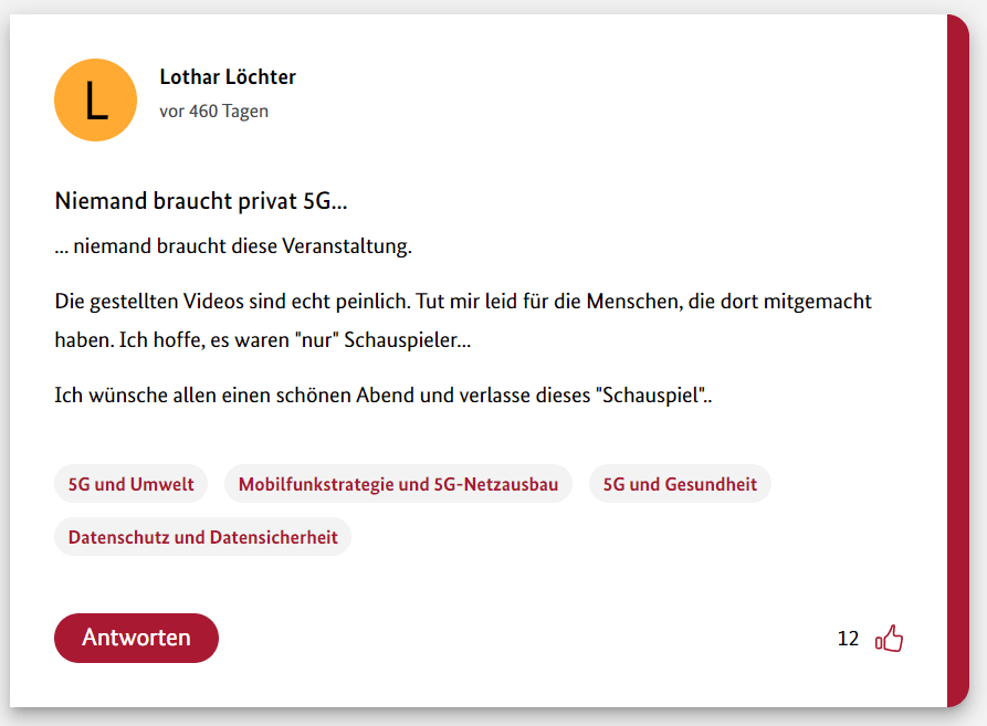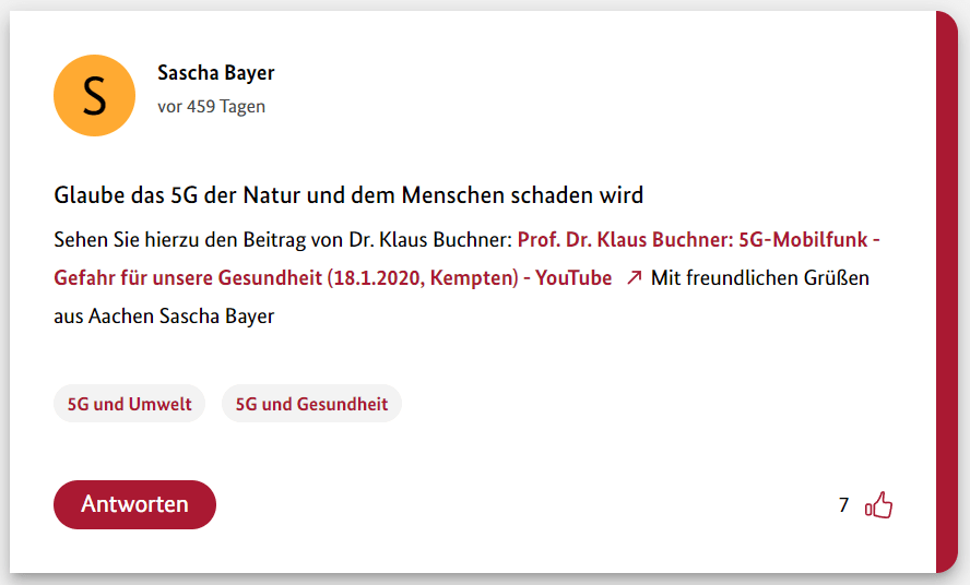 Hier also der erste Teil meiner 12-teiligen Reihe über die Schwurbler im 5G-Forum der Bundesregierung.