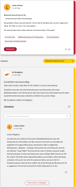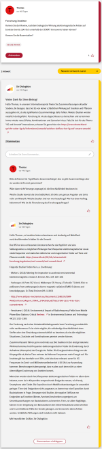 Die an das Forum gestellte Frage ist immer oben groß dargestellt, die Antworten sieht man wenn man auf das kleinere Bild darunter klickt.