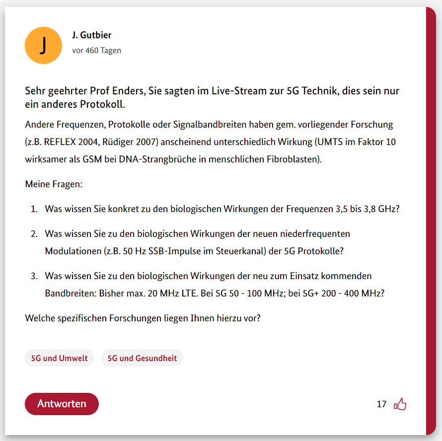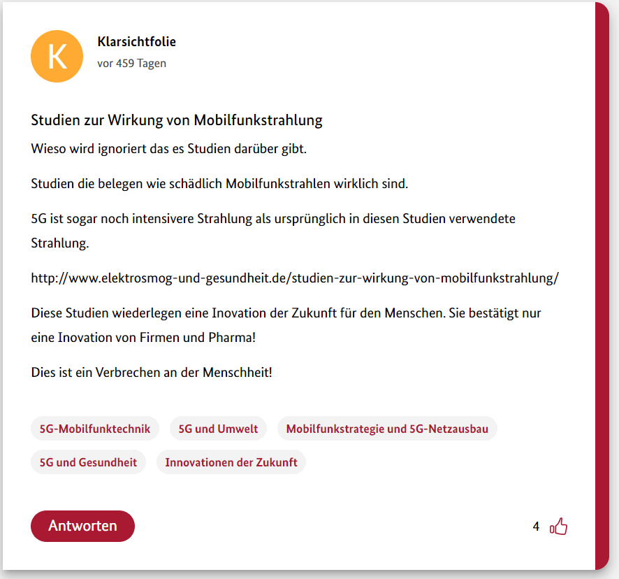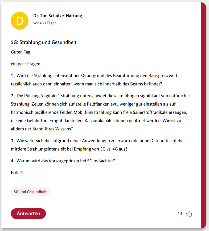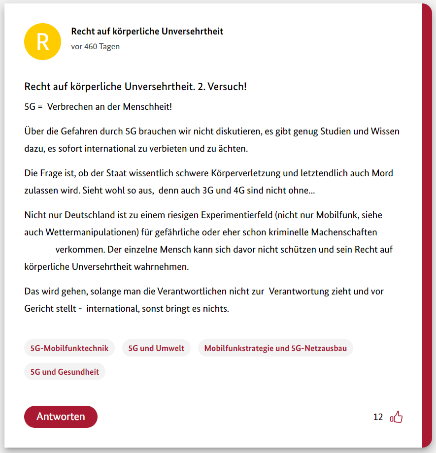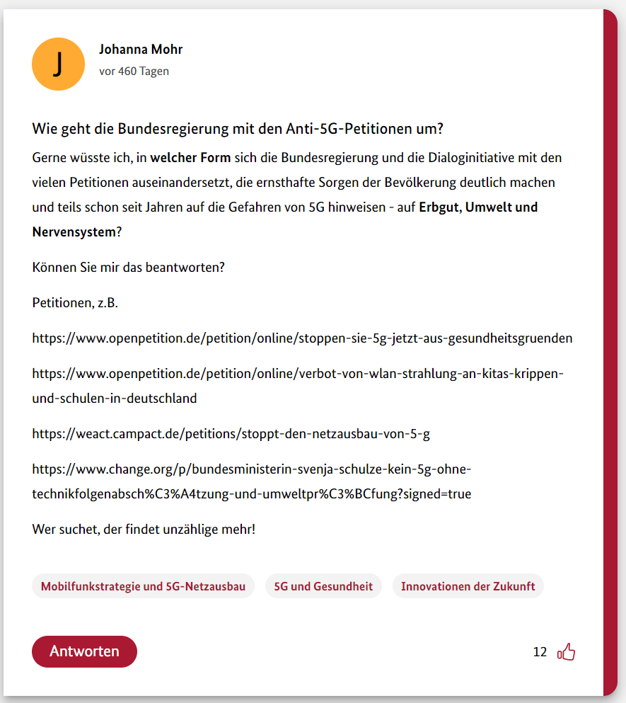 Hier also der dritte Teil meiner 12-teiligen Reihe über die Schwurbler im 5G-Forum der Bundesregierung.