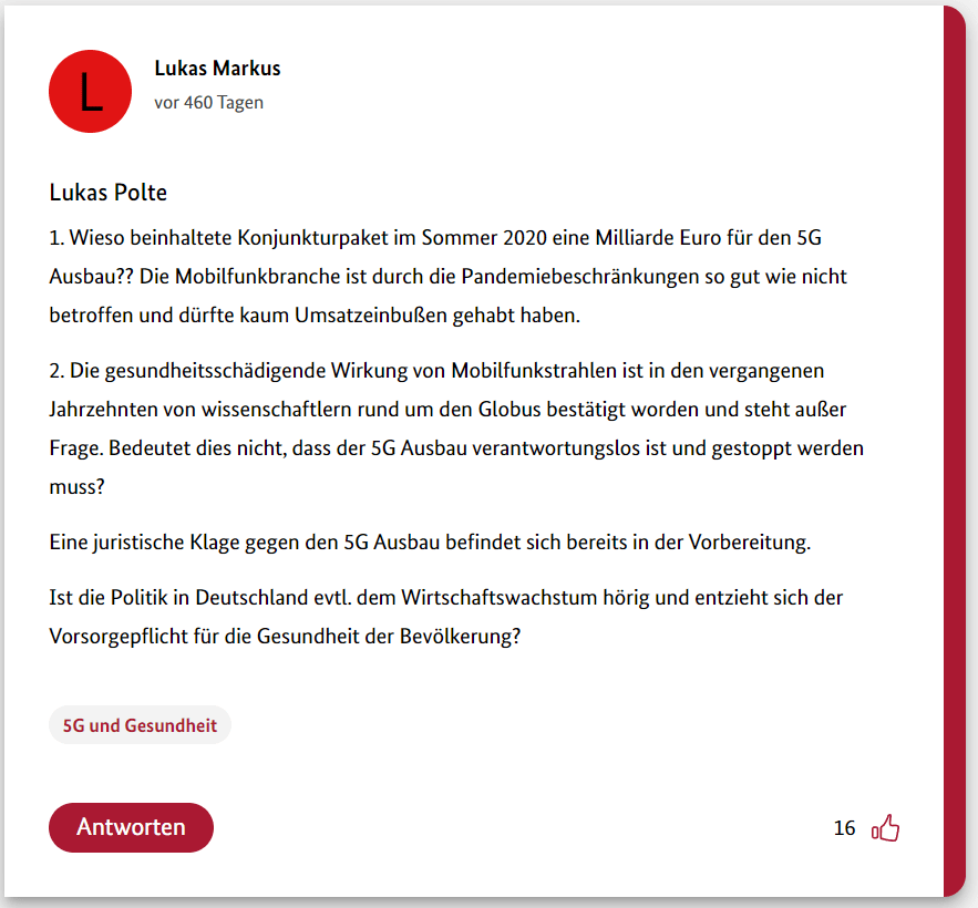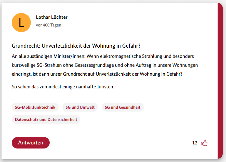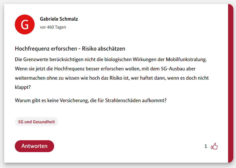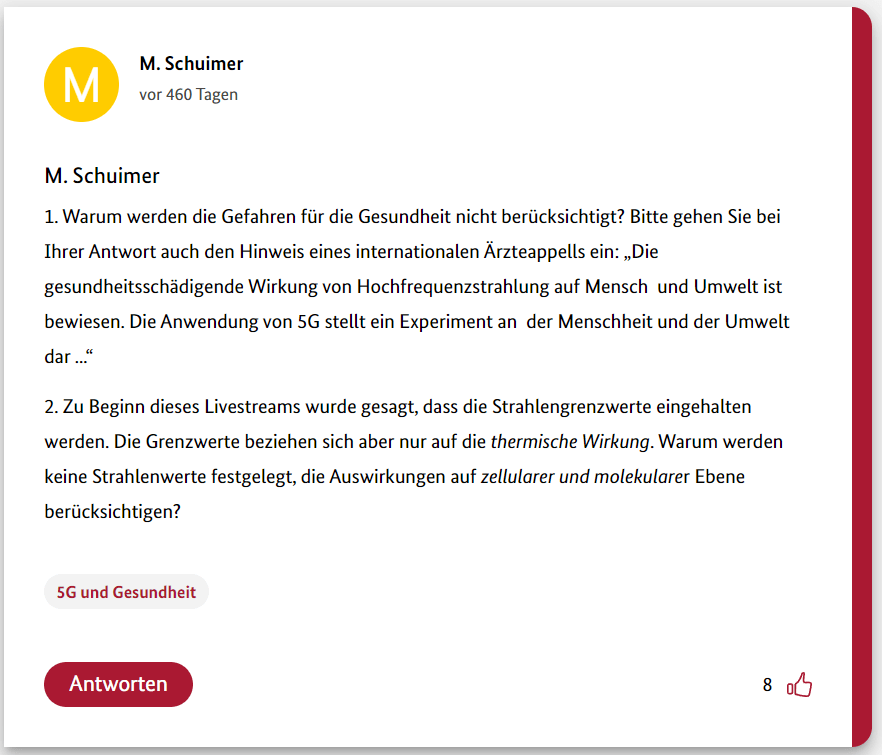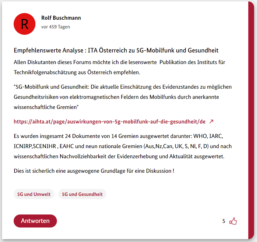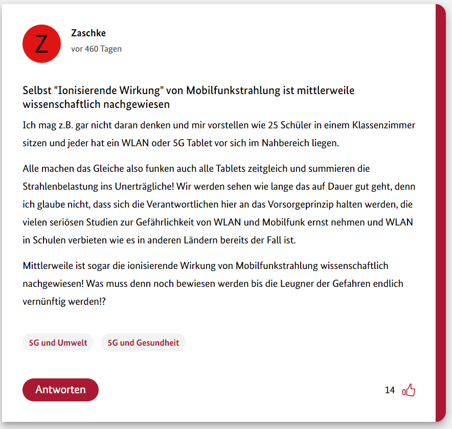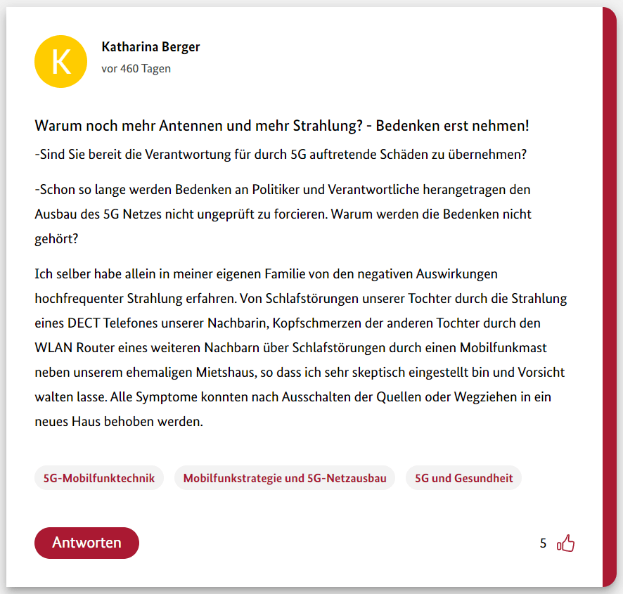 Hier also der dritte Teil meiner 12-teiligen Reihe über die Schwurbler im 5G-Forum der Bundesregierung.