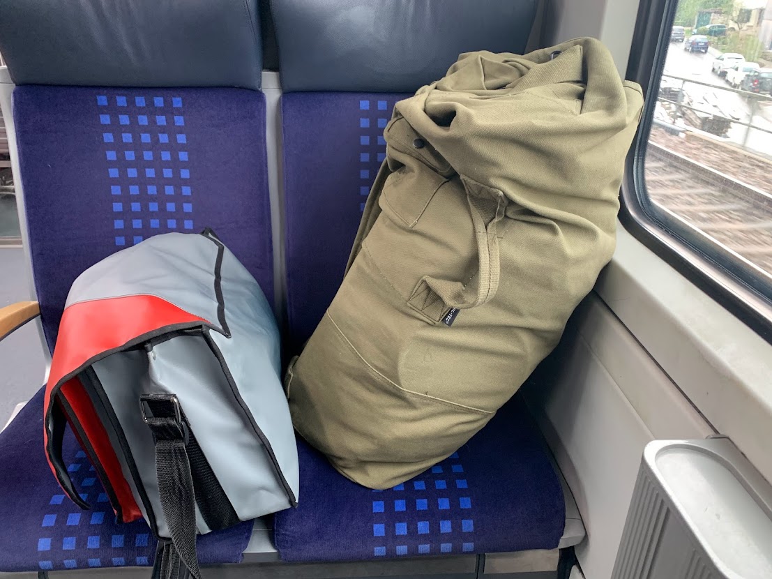 Nachdem Ich mein Gepäck zusammen hatte (Reisen mit kleinem Gepäck und mit freien Händen: Ich hatte nur mein Seesack und eine Umhängetasche dabei) wollte Ich bei Mamas Untermieter klopfen, da Ich mit Ihm ausgemacht hatte dass er mich an den Bahnhof fährt, da meine Mutter von einer Grippe dahingerafft war. Leider haben wir anscheinend aneinander vorbei geredet und er dachte er hätte mir gesagt dass Ich Ihn in einem Nachbarort von Kaiserslautern abholen solle, er mich dann zum Bahnhof fährt und dann mit meinem Auto nach Hause. Wahrscheinlich hab Ich nicht aufgepasst und das falsch verstanden.