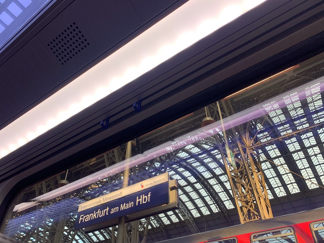 Wir erreichten Frankfurt mit 5 Minuten Verspätung um ca. 19 Uhr. Zum Glück musste Ich beim Umsteigen in den Anschlusszug der schon 19:12 Uhr abfahren sollte nur die Bahnsteigseite wechseln und einsteigen. Mein Zug fuhr direkt gegenüber um 19:12 Uhr ab.