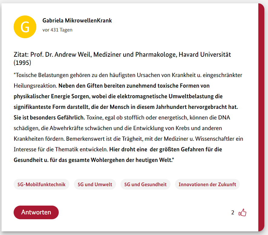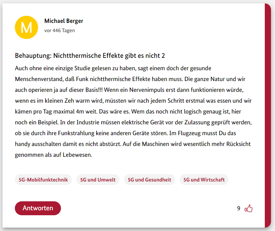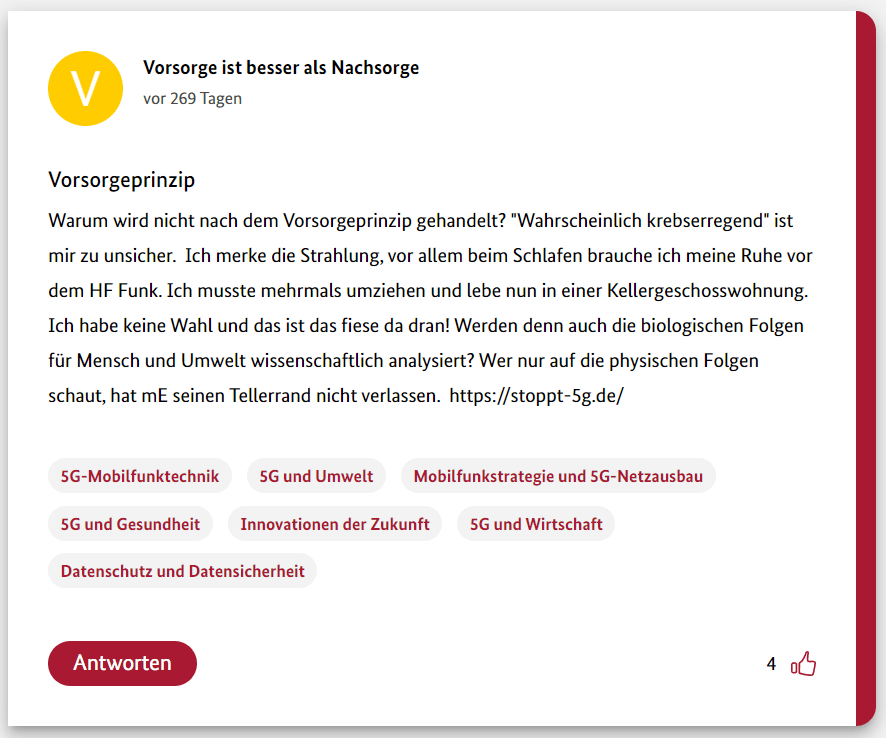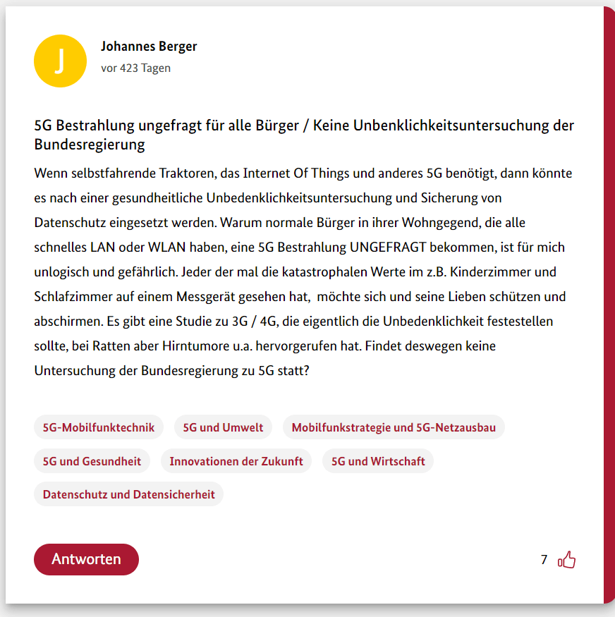 Hier also der vierte Teil meiner 12-teiligen Reihe über die Schwurbler im 5G-Forum der Bundesregierung.