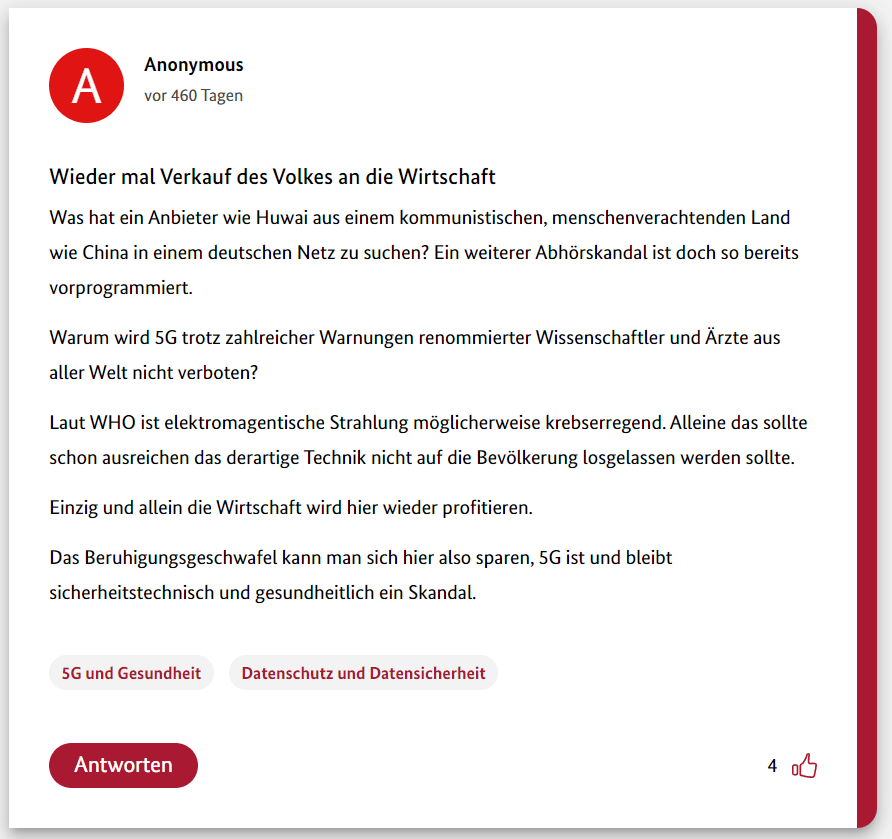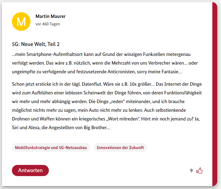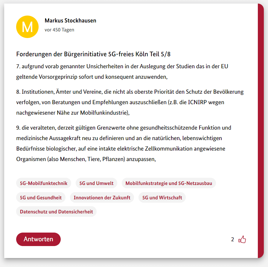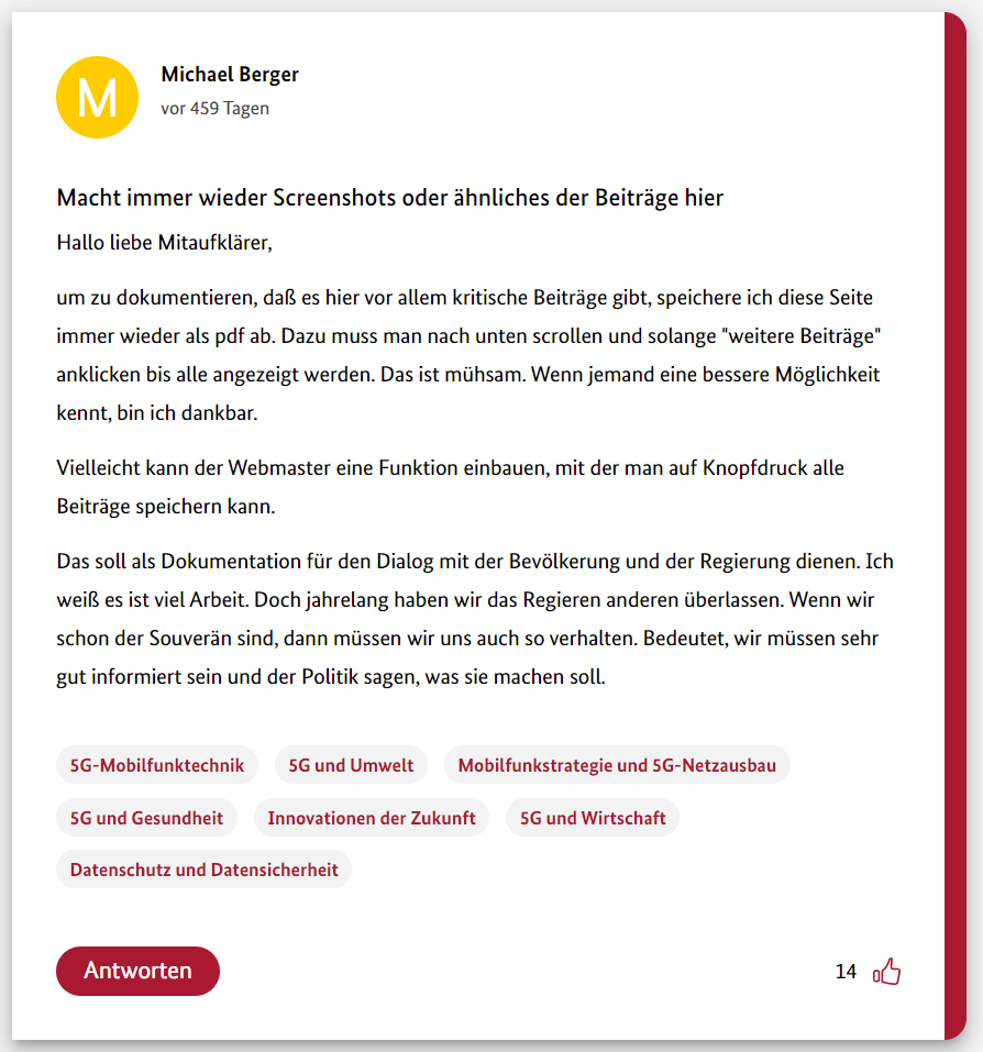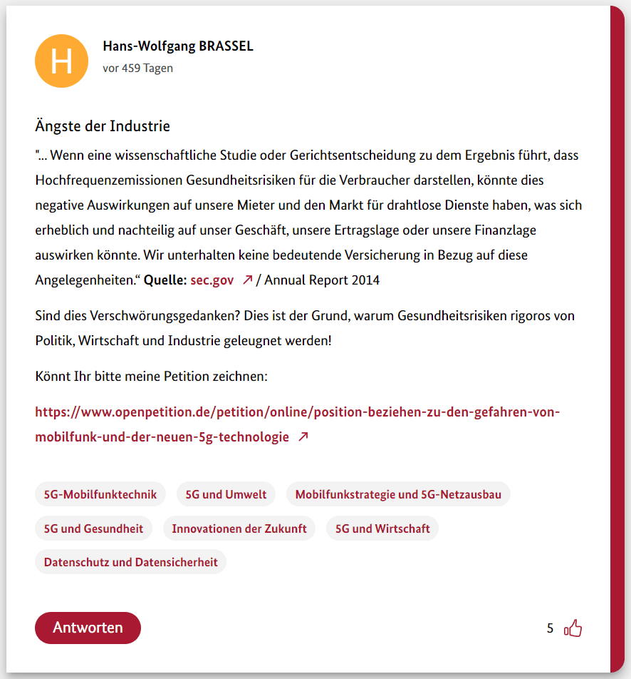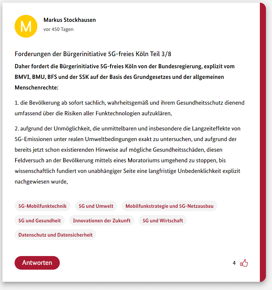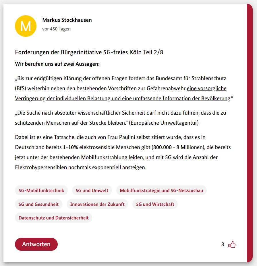 Hier also der sechste Teil meiner 12-teiligen Reihe über die Schwurbler im 5G-Forum der Bundesregierung.