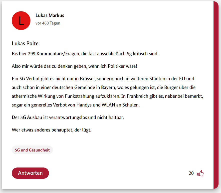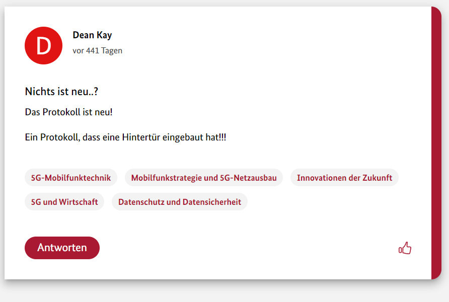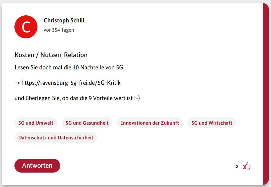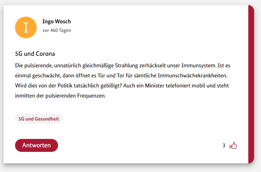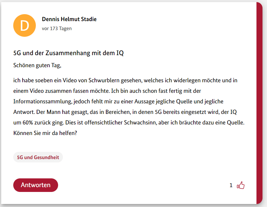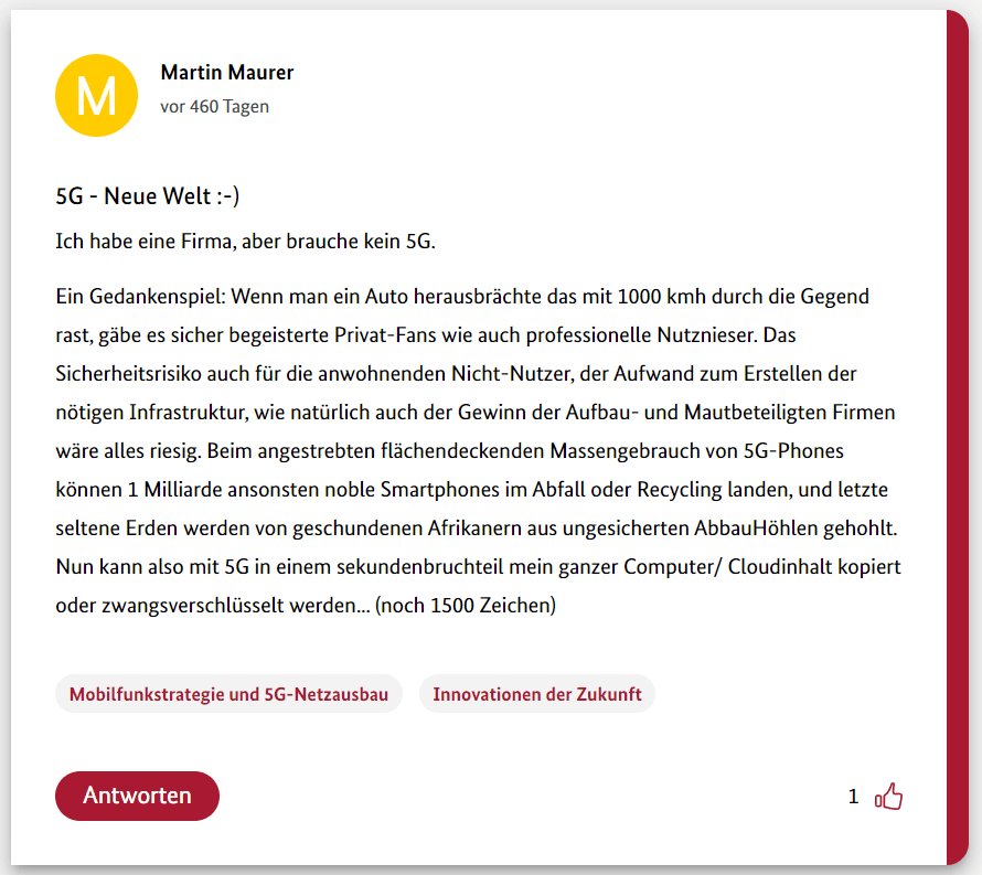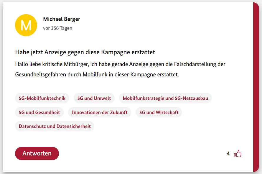 Hier also der achte Teil meiner 12-teiligen Reihe über die Schwurbler im 5G-Forum der Bundesregierung.