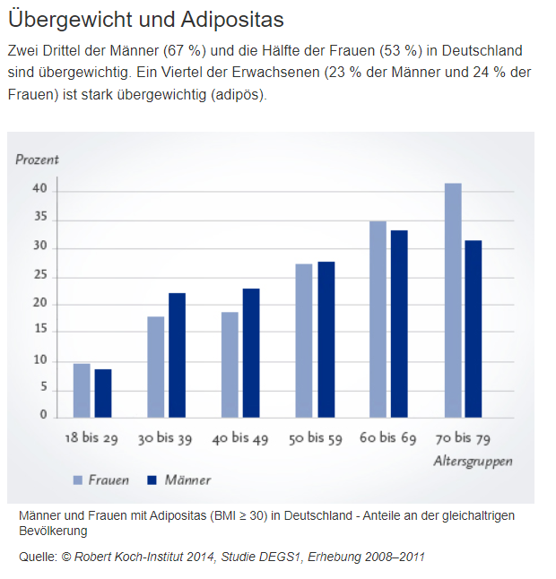 Ein anderes Beispiel das mir einfällt sind übergewichtige Menschen. Hier habe Ich den Eindruck, dass solche Personen auch nicht gezeigt werden ohne dass Ihr Übergewicht nicht zumindest als “Empowerment” dargestellt wird. Niemand ist einfach nur so dick, sondern wenn z. B. eine dicke Frau gezeigt wird, dann ist es eine “Powerfrau”! Was ist das denn bitte für ein Käse? Können dicke Menschen nicht einfach genau so als normal dargestellt werden wie dünne? Immerhin sind laut RKI zwei Drittel der Männer und die Hälfte der Frauen in Deutschland übergewichtig und sogar ein viertel der Erwachsenen stark übergewichtig also adipös!