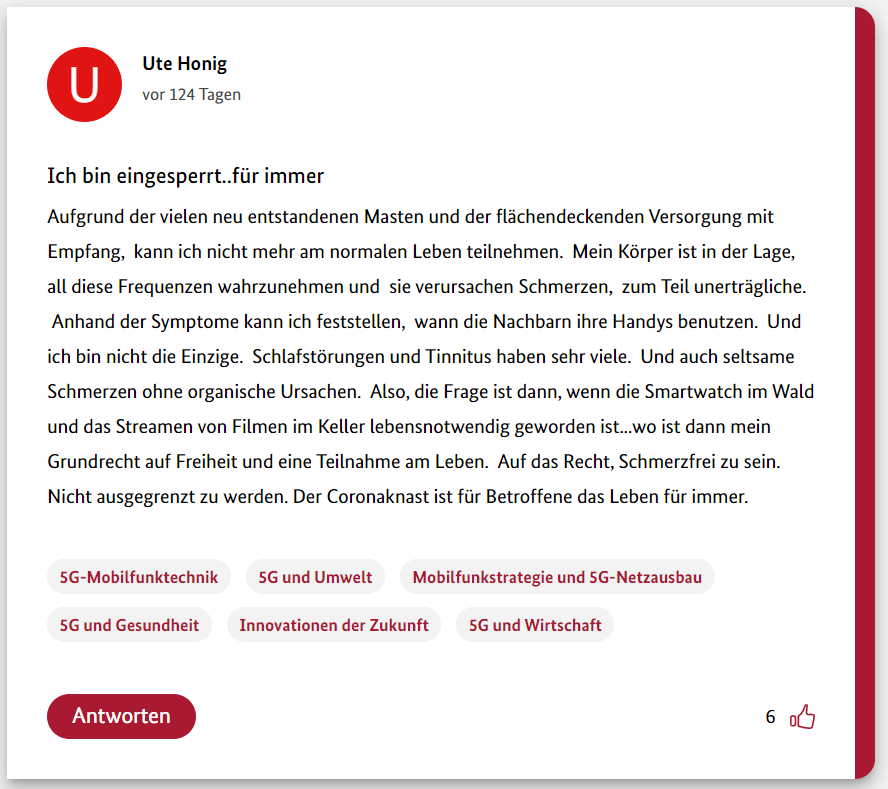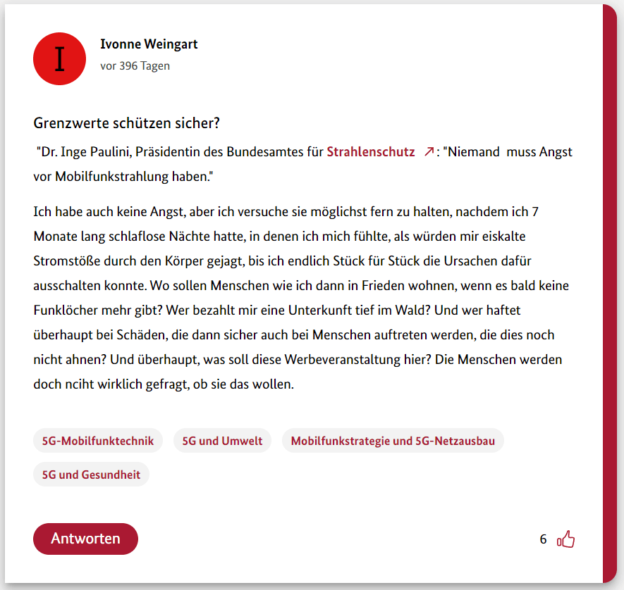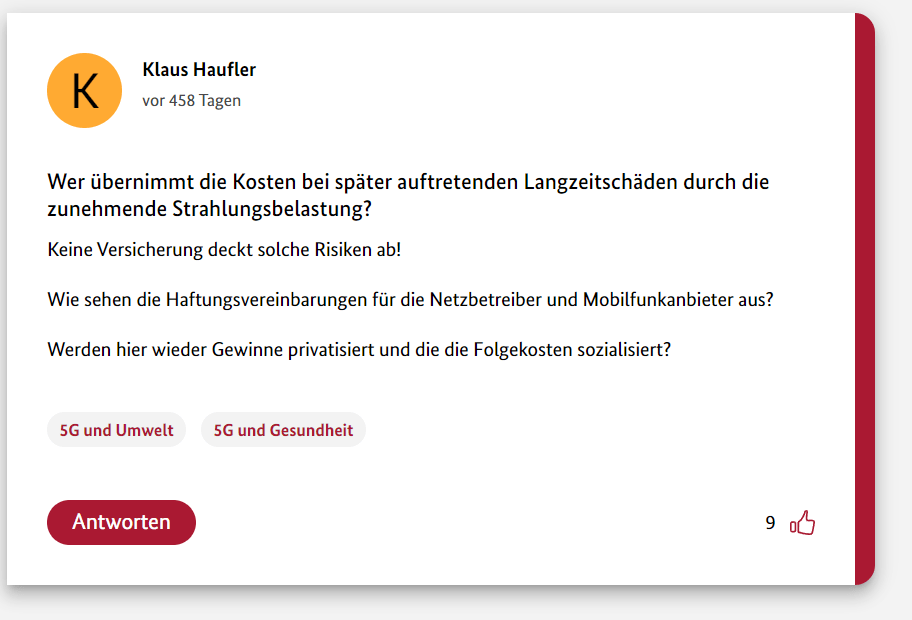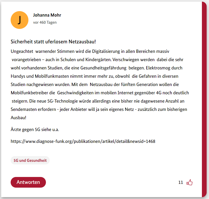 Hier also der zwölfte und letzte Teil meiner 12-teiligen Reihe über die Schwurbler im 5G-Forum der Bundesregierung.