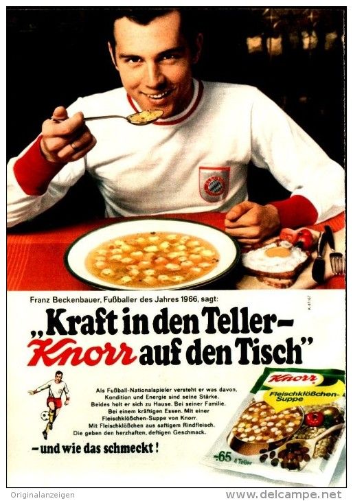 Ich glaube nicht, dass der Beckenbauer je zu Hause so einen Fertigkram gekocht hat, der ging damals, als diese Reklame noch aktuell war, eher zum Herr Witzigmann in die Aubergine oder so und liess sich da ein Süppchen vorsetzen.