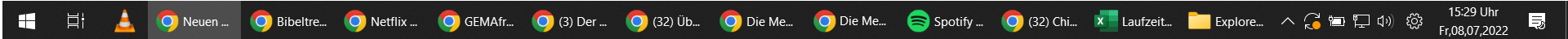 Was mich damals an Windows 10 schon, im Gegensatz zu Windows 7 störte, ist dass wenn man mehrere Fenster ein und desselben Programms offen hat (was bei mir immer der Fall ist, Ich habe gerade 43 Google Chrome Fenster mit insgesamt 1002 Tabs offen) man diese nicht untereinander verschieben kann. Die sind dann auf der Taskleiste so in der Reihenfolge von links nach rechts “zusammengeklebt, so dass man die Reihenfolge untereinander nicht verändern kann.