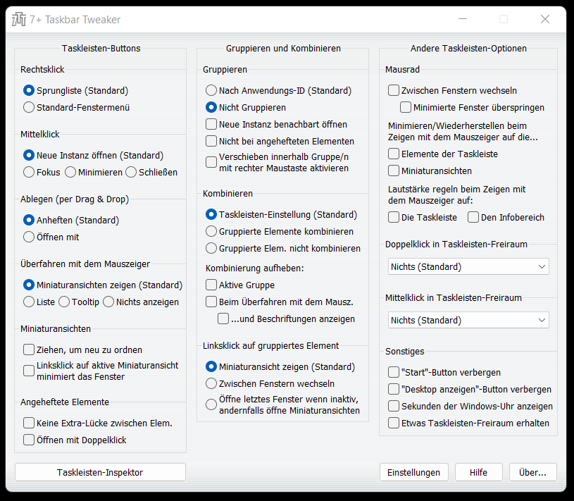 Das Programm “7+ taskbar tweaker” sogt dafür dass genau das oben beschriebene Problem beseitigt wird bei dem Windoof Tasks einer gemeinsamen Anwendung in der Taskleiste gruppiert oder “zusammenklebt. So kann man die Fenster auf der Taskleiste wieder so hin und her verschieben wie man es braucht.