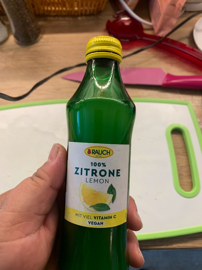 … Zitronensaft, TK-Kräuter, Salz und Pfeffer zugegeben.