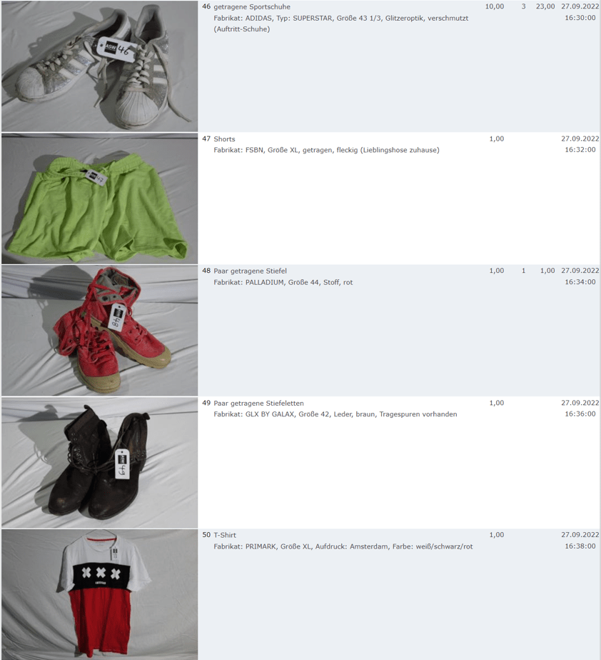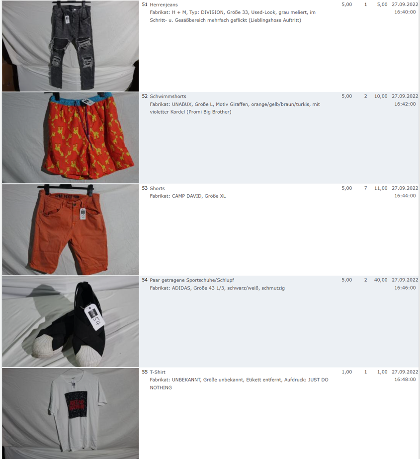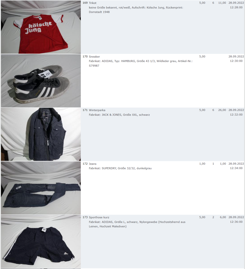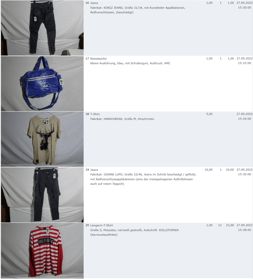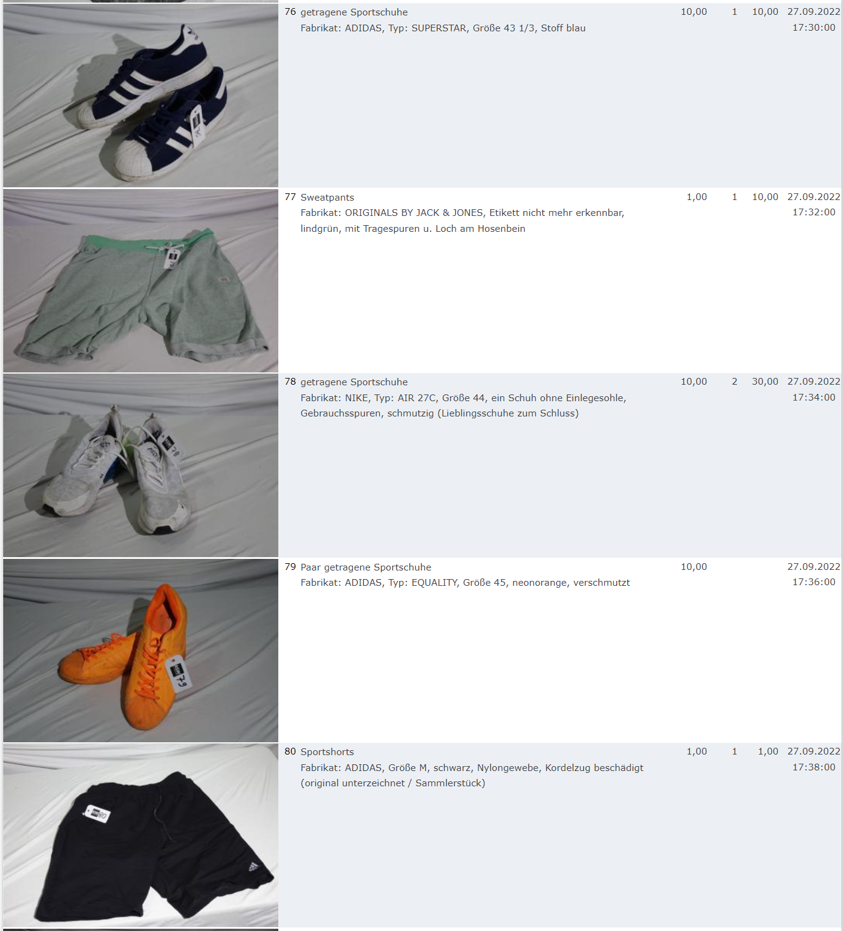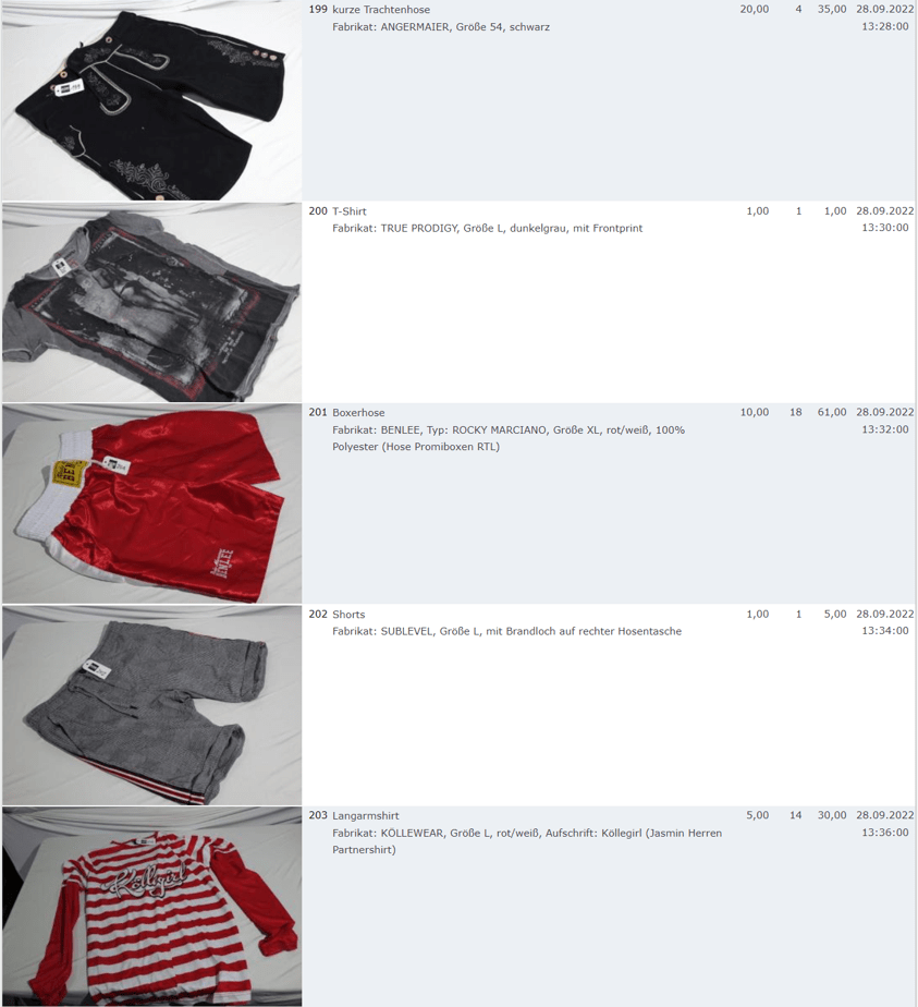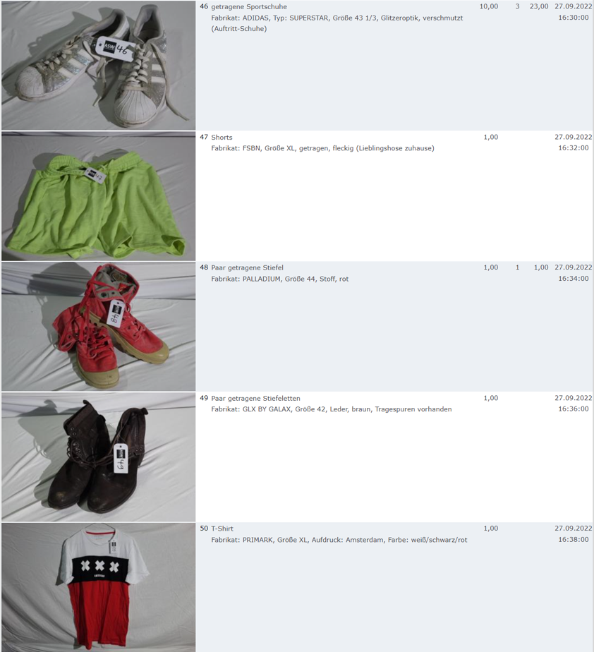 Ich weiss auch nicht aber irgendwie macht mich das alles ein bisschen Fassungslos. Ich meine, verspricht man sich da wirklich so viel Erlös davon dass es den Aufwand lohnt einen Mitarbeiter von einem Auktionshaus da hin zu setzen um Fotos von alten Klamotten zu machen? Glaubt man wirklich dass jemand Boxershorts mit Flecken von Willi Herren kauft?