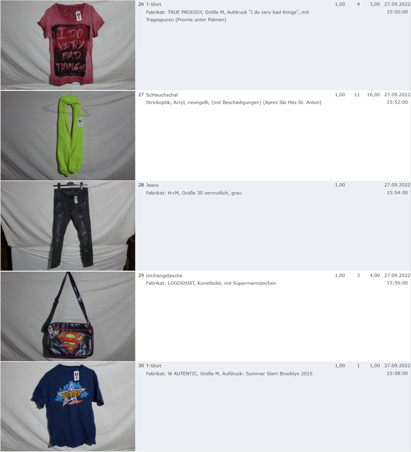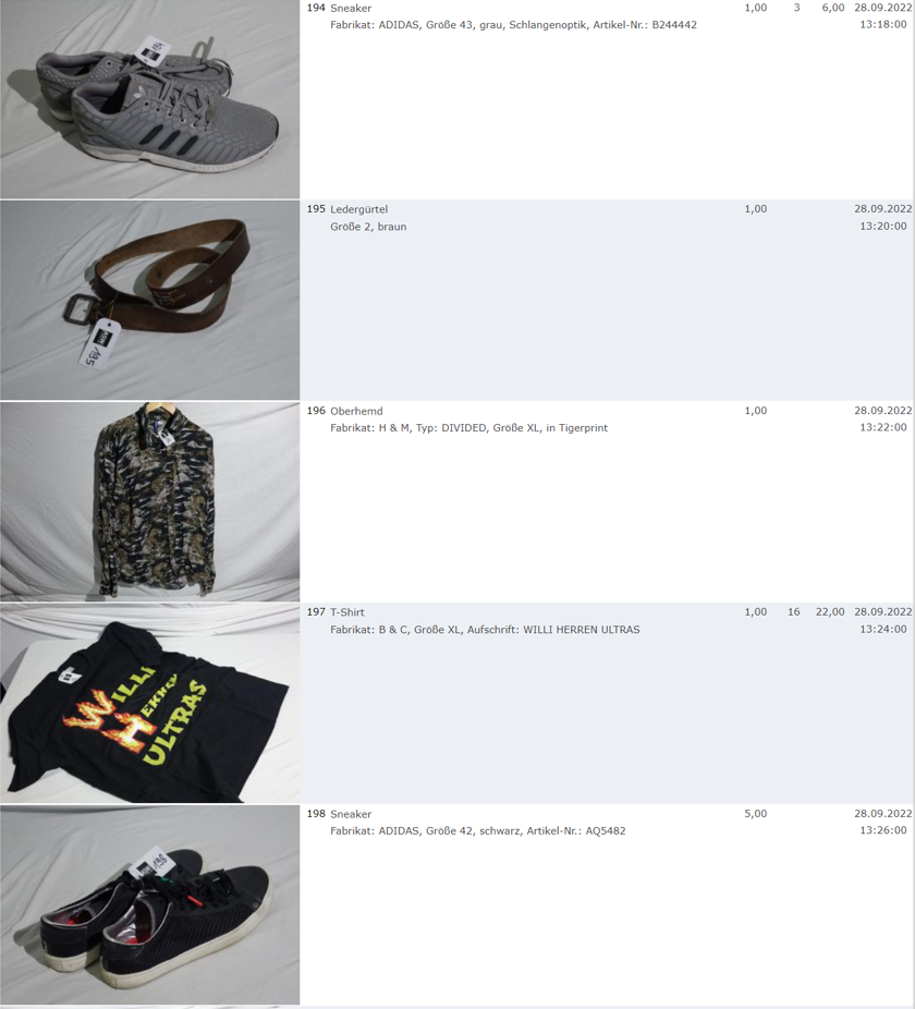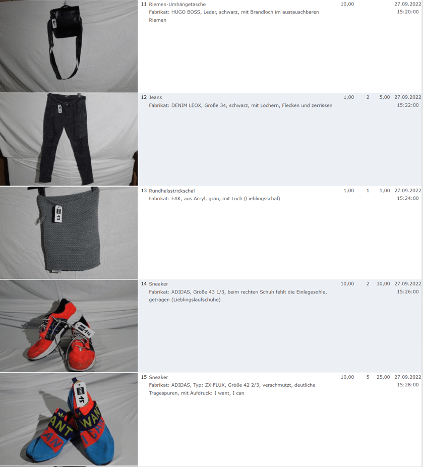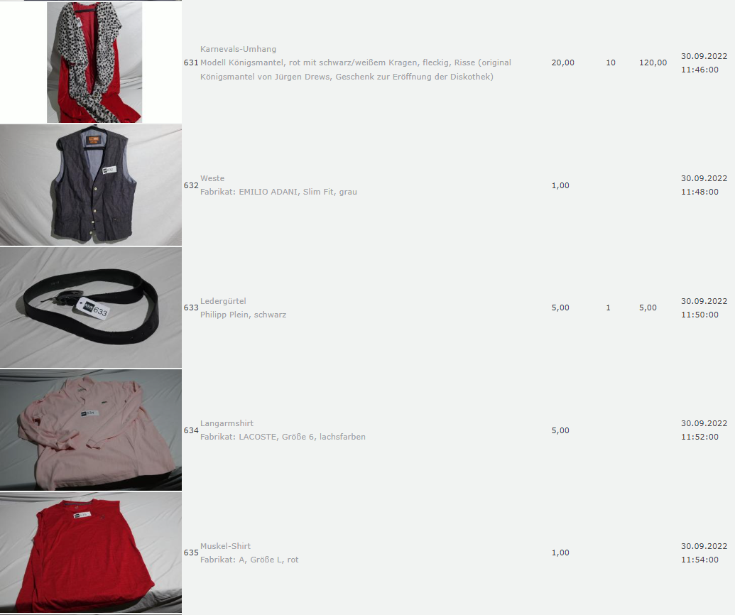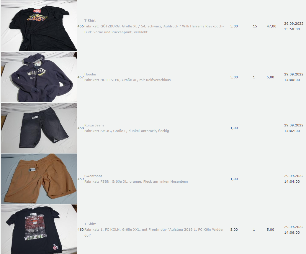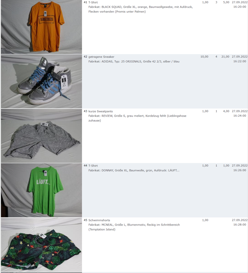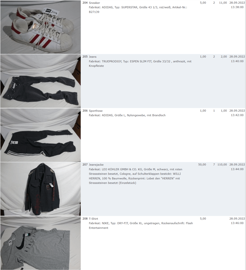 Ich weiss auch nicht aber irgendwie macht mich das alles ein bisschen Fassungslos. Ich meine, verspricht man sich da wirklich so viel Erlös davon dass es den Aufwand lohnt einen Mitarbeiter von einem Auktionshaus da hin zu setzen um Fotos von alten Klamotten zu machen? Glaubt man wirklich dass jemand Boxershorts mit Flecken von Willi Herren kauft?