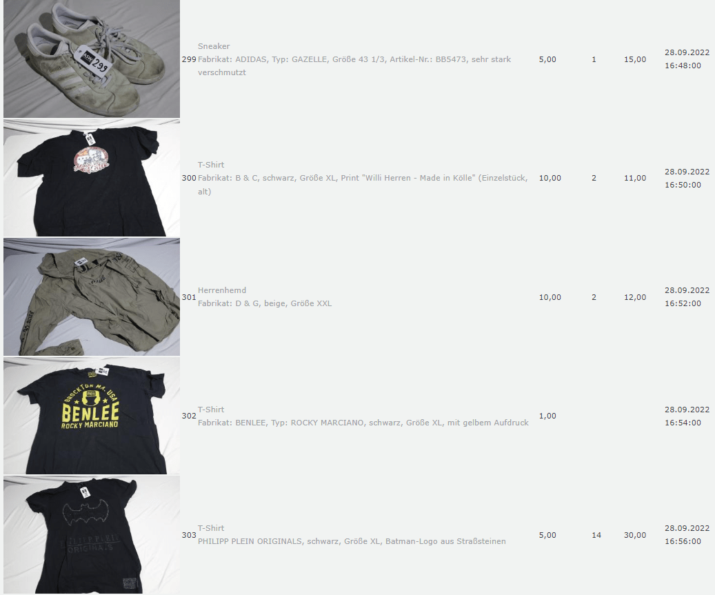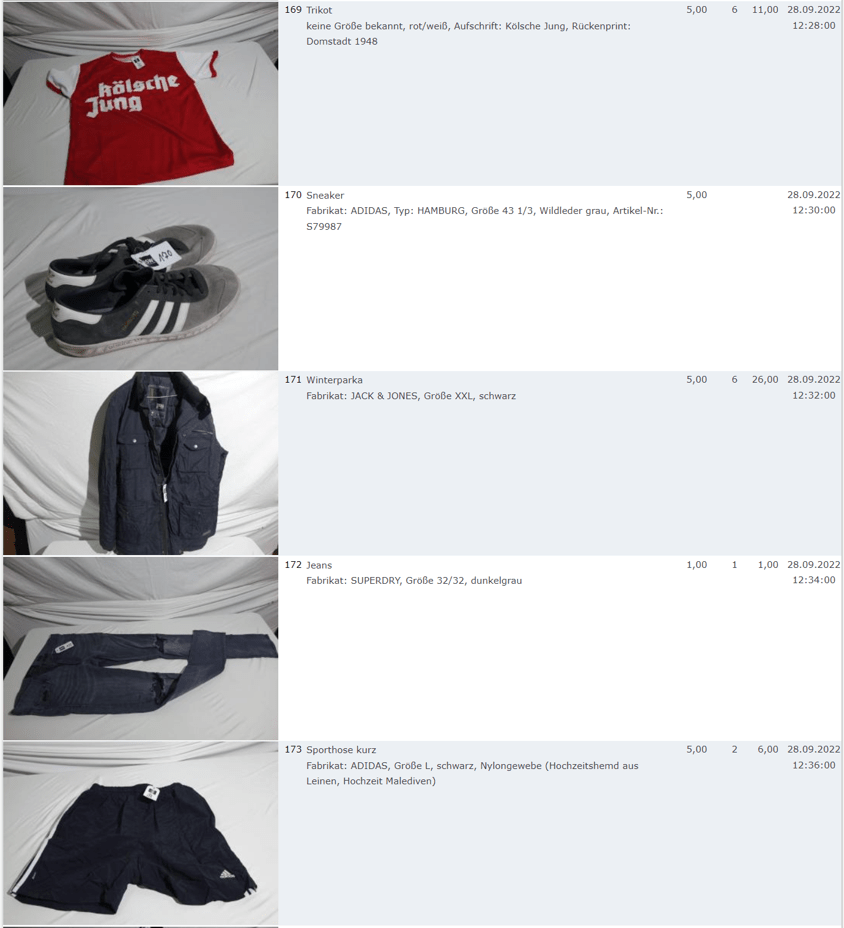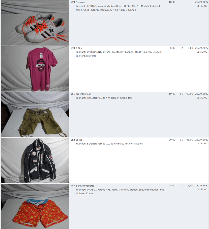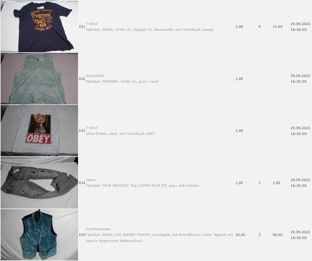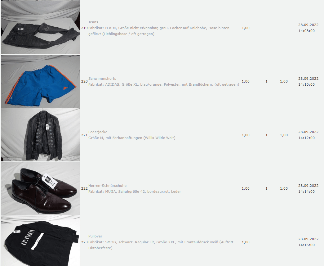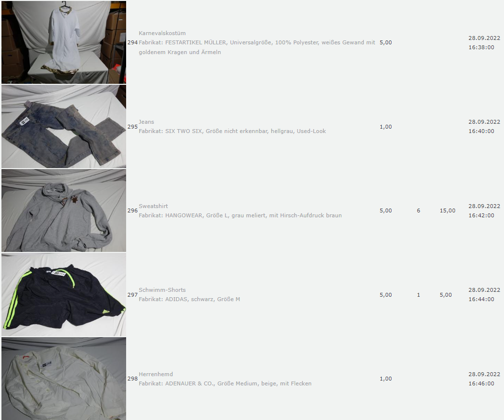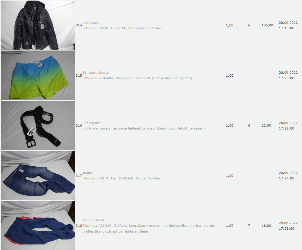 Ich weiss auch nicht aber irgendwie macht mich das alles ein bisschen Fassungslos. Ich meine, verspricht man sich da wirklich so viel Erlös davon dass es den Aufwand lohnt einen Mitarbeiter von einem Auktionshaus da hin zu setzen um Fotos von alten Klamotten zu machen? Glaubt man wirklich dass jemand Boxershorts mit Flecken von Willi Herren kauft?