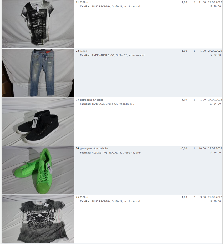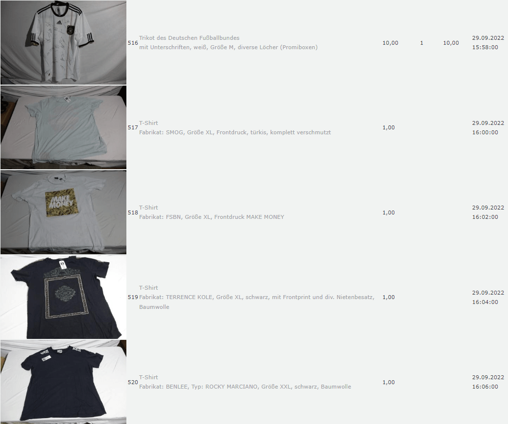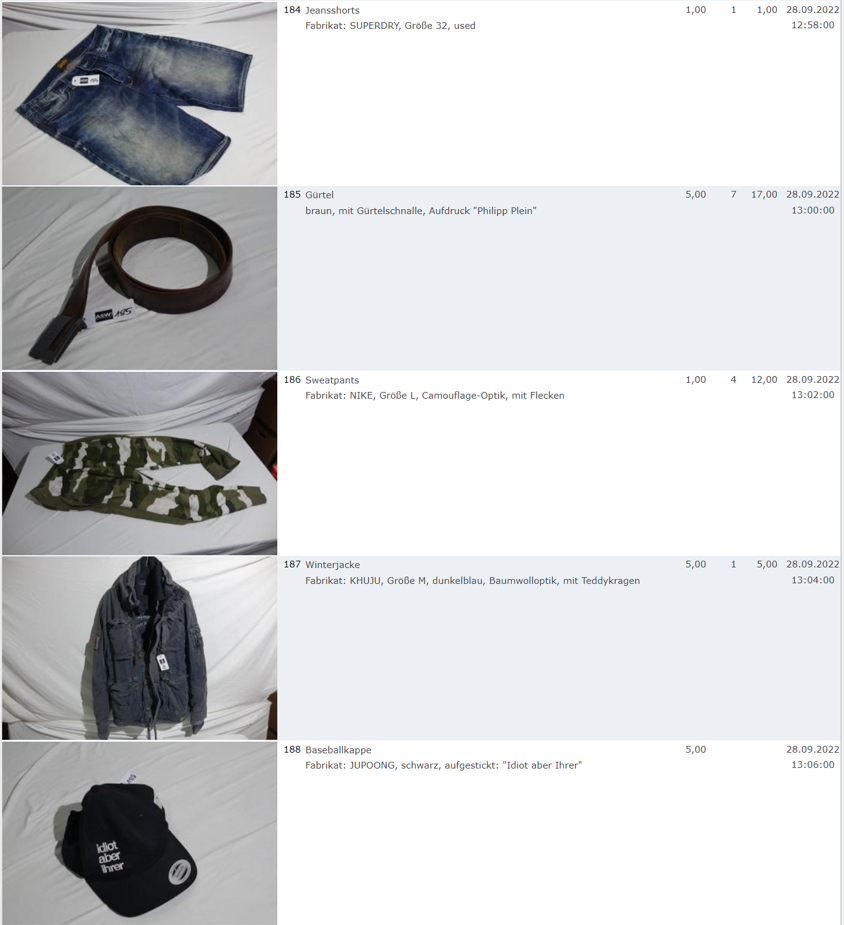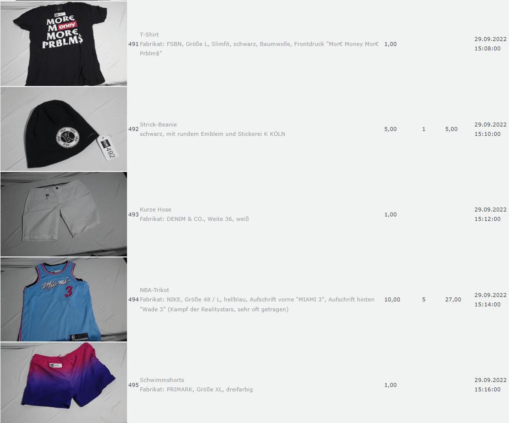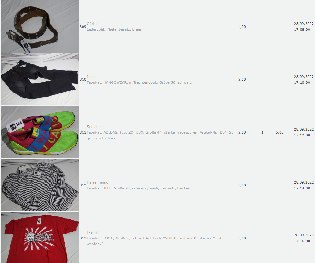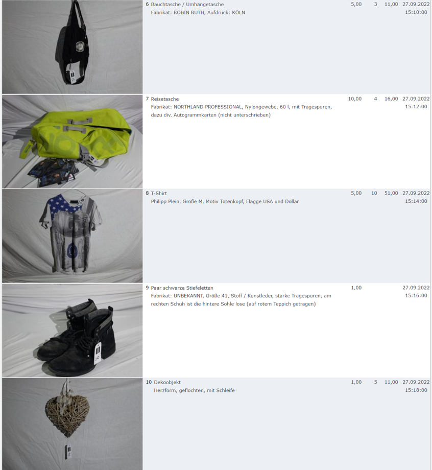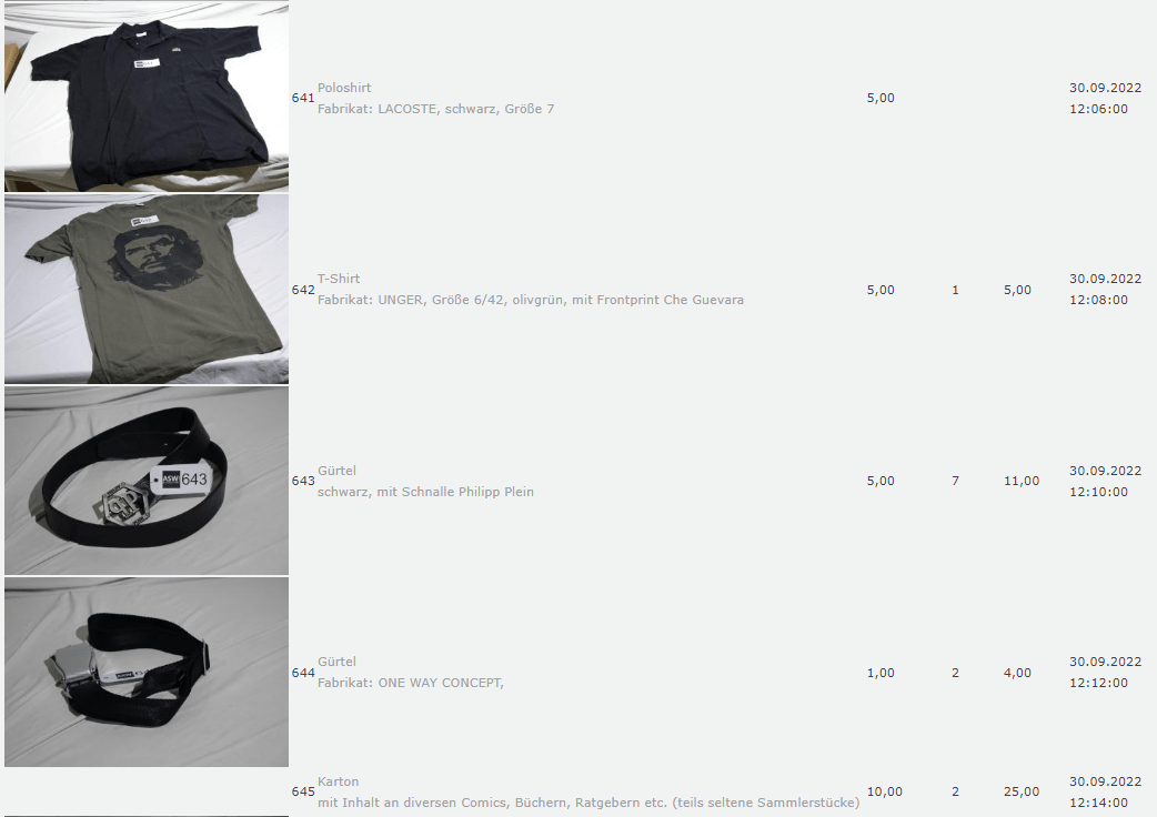 Ich weiss auch nicht aber irgendwie macht mich das alles ein bisschen Fassungslos. Ich meine, verspricht man sich da wirklich so viel Erlös davon dass es den Aufwand lohnt einen Mitarbeiter von einem Auktionshaus da hin zu setzen um Fotos von alten Klamotten zu machen? Glaubt man wirklich dass jemand Boxershorts mit Flecken von Willi Herren kauft?