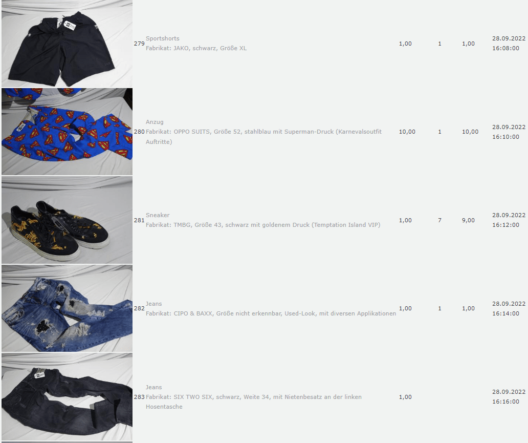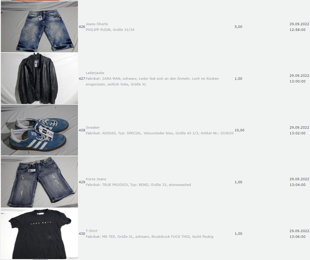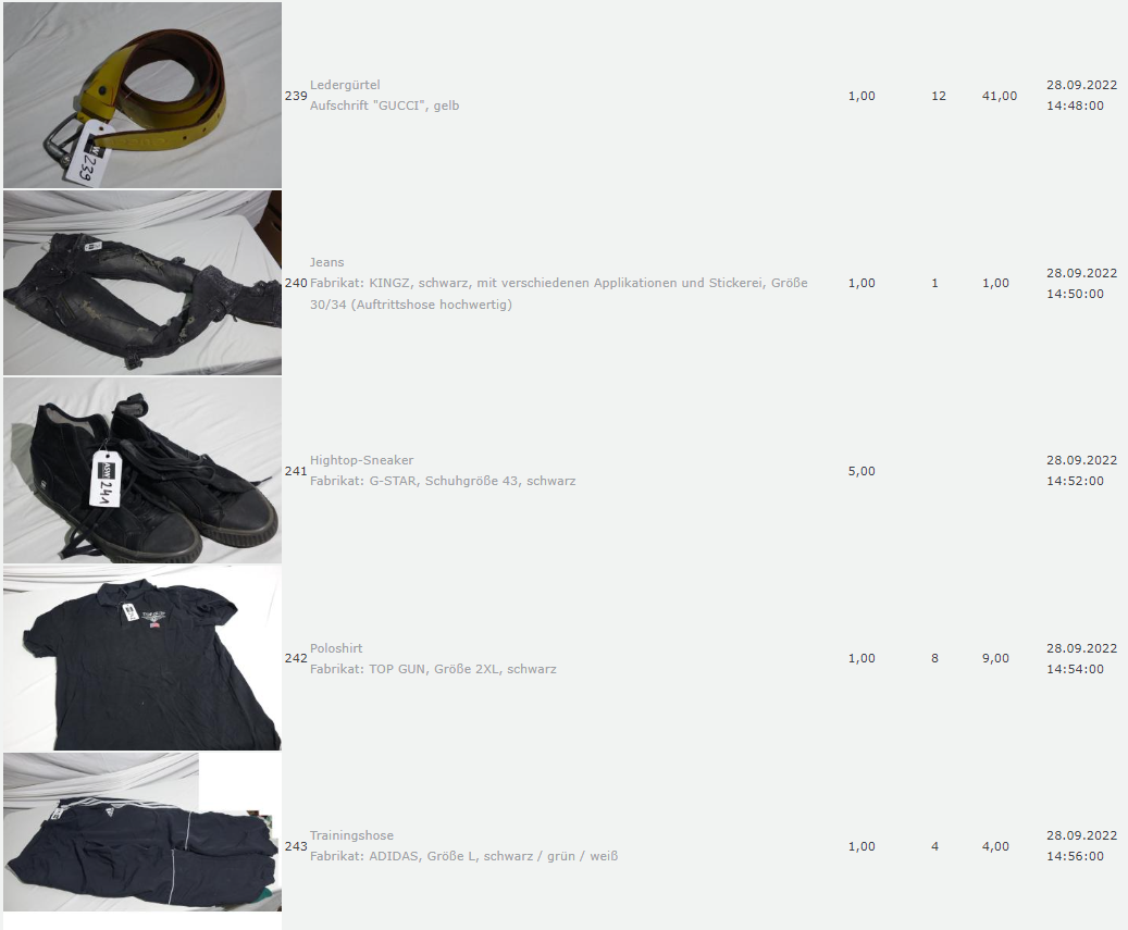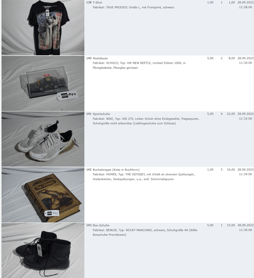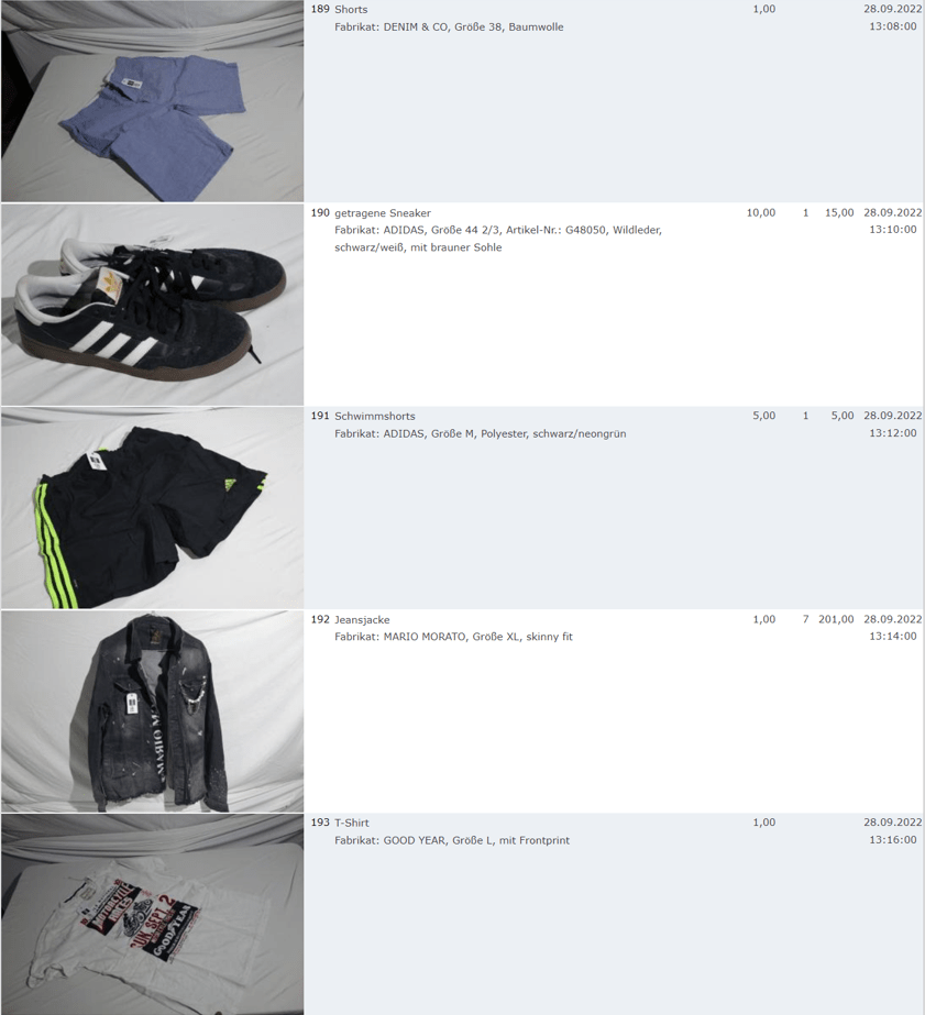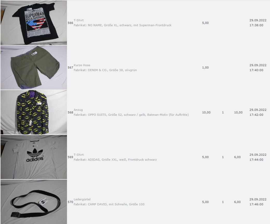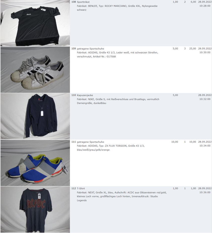 Ich weiss auch nicht aber irgendwie macht mich das alles ein bisschen Fassungslos. Ich meine, verspricht man sich da wirklich so viel Erlös davon dass es den Aufwand lohnt einen Mitarbeiter von einem Auktionshaus da hin zu setzen um Fotos von alten Klamotten zu machen? Glaubt man wirklich dass jemand Boxershorts mit Flecken von Willi Herren kauft?