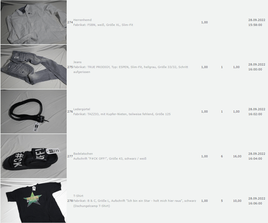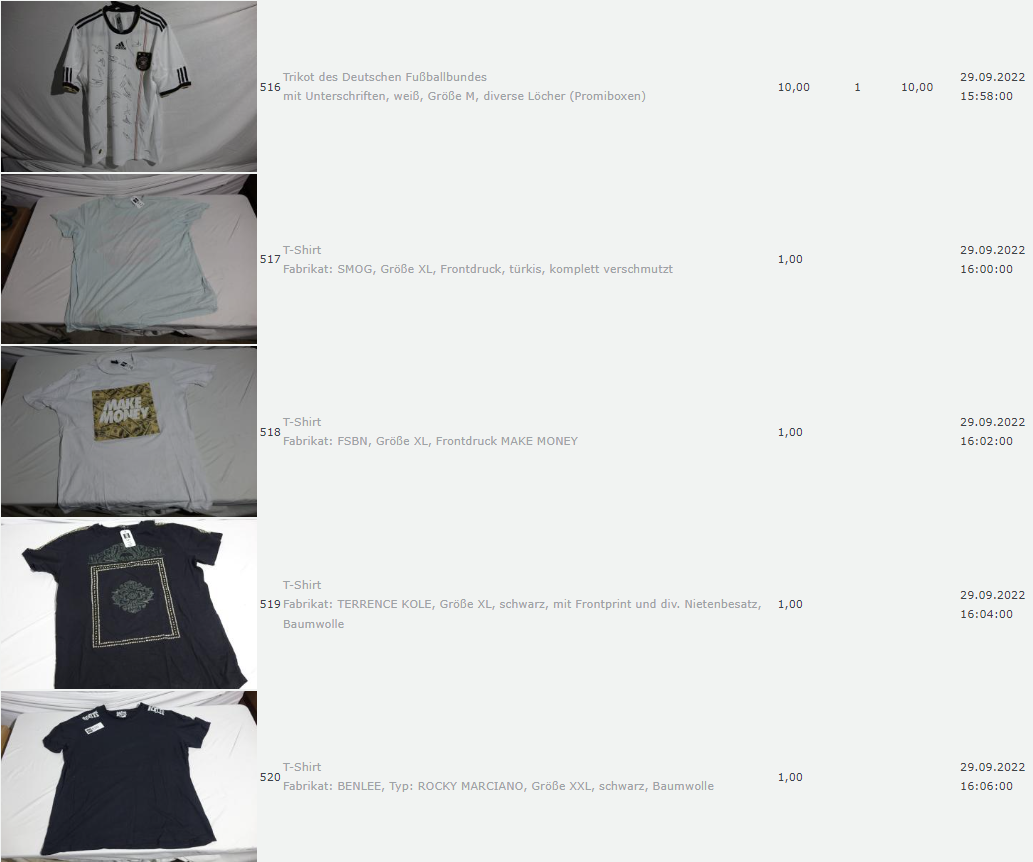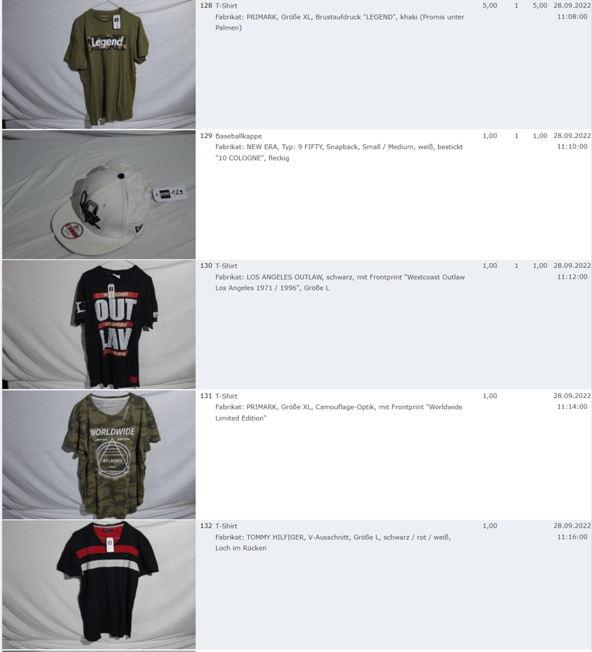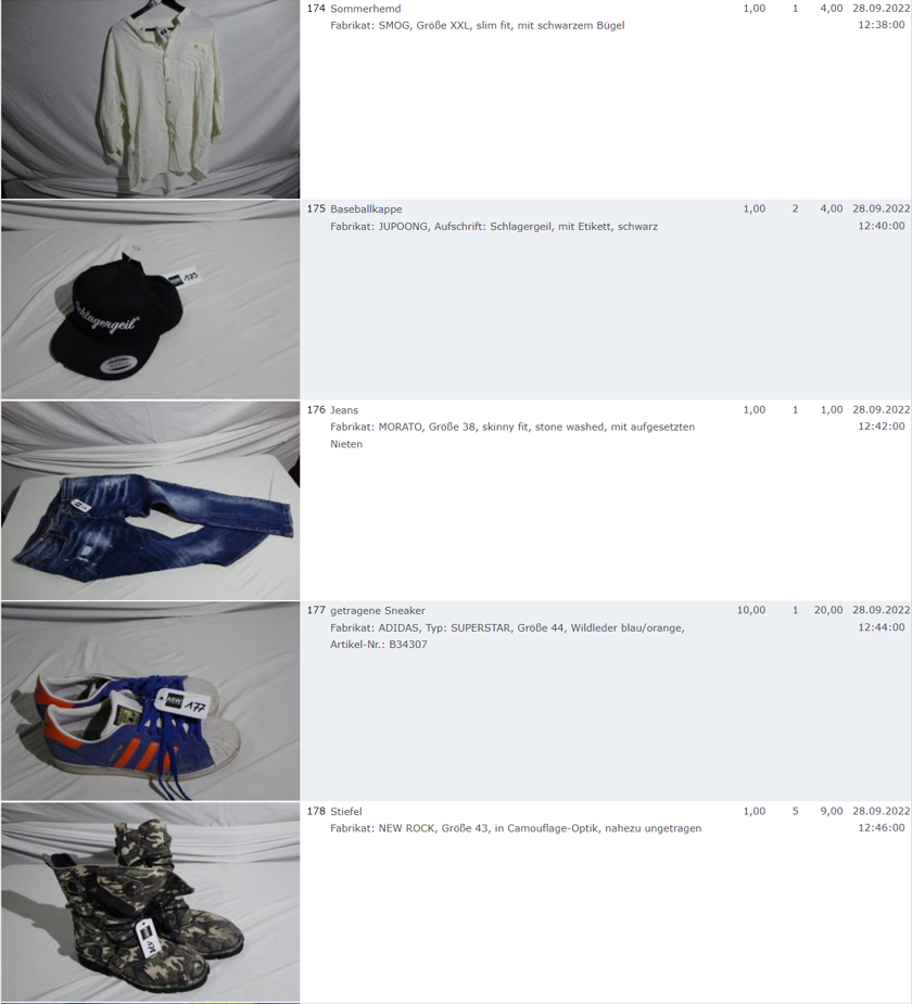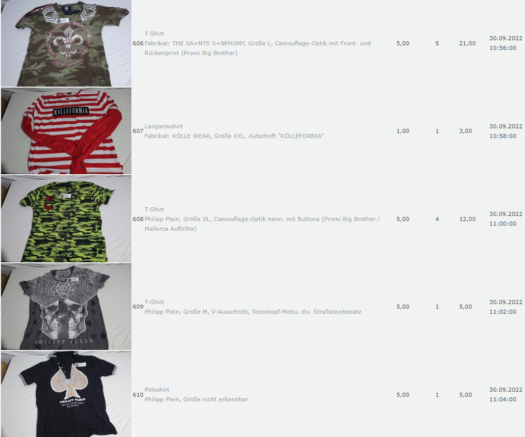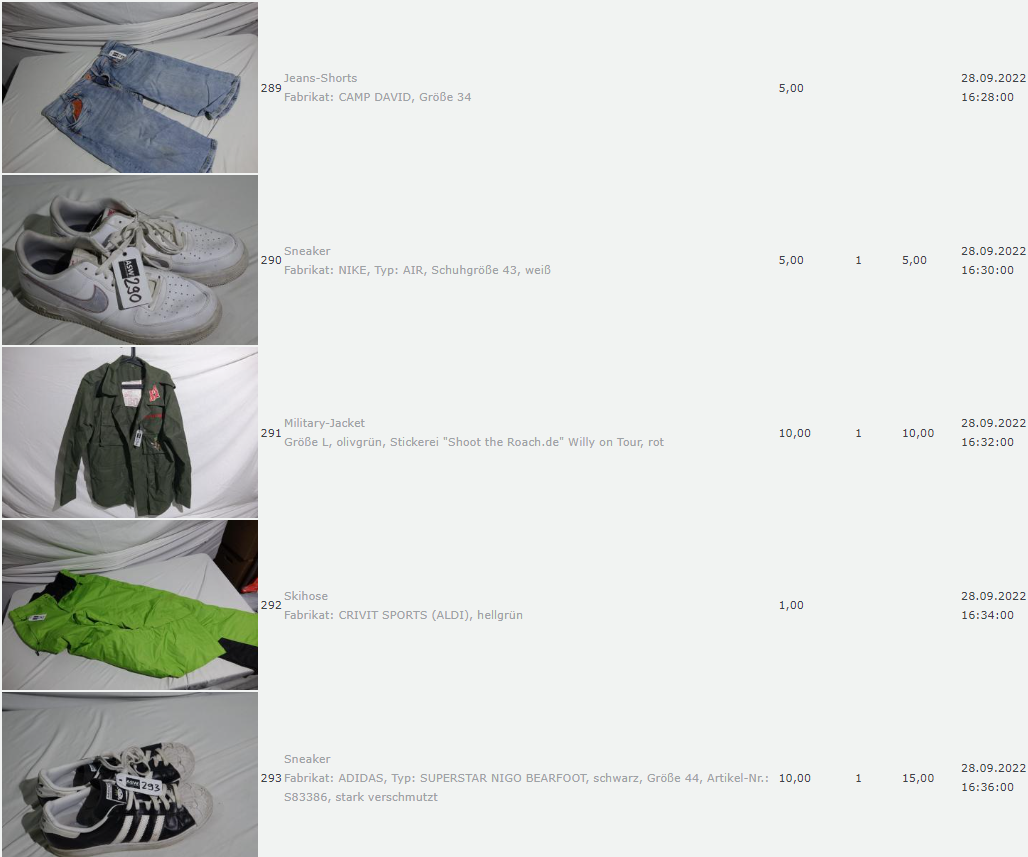 Ich weiss auch nicht aber irgendwie macht mich das alles ein bisschen Fassungslos. Ich meine, verspricht man sich da wirklich so viel Erlös davon dass es den Aufwand lohnt einen Mitarbeiter von einem Auktionshaus da hin zu setzen um Fotos von alten Klamotten zu machen? Glaubt man wirklich dass jemand Boxershorts mit Flecken von Willi Herren kauft?