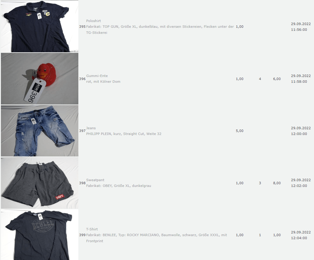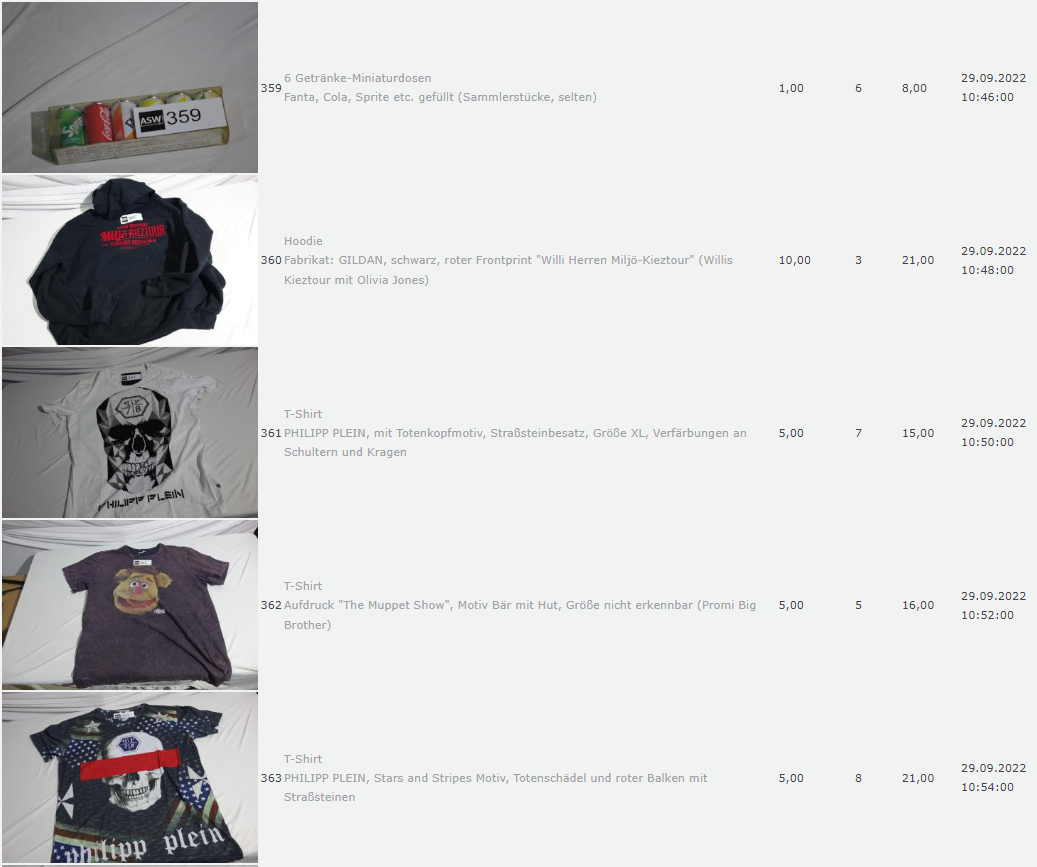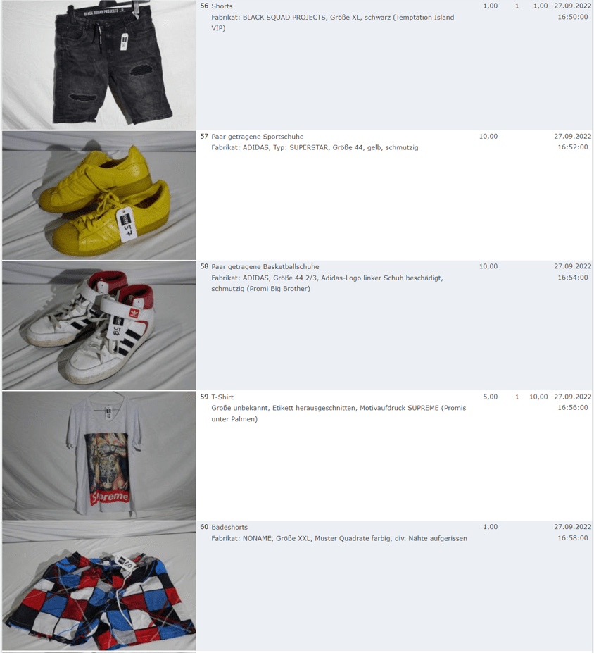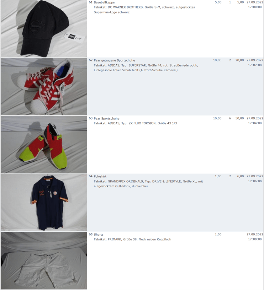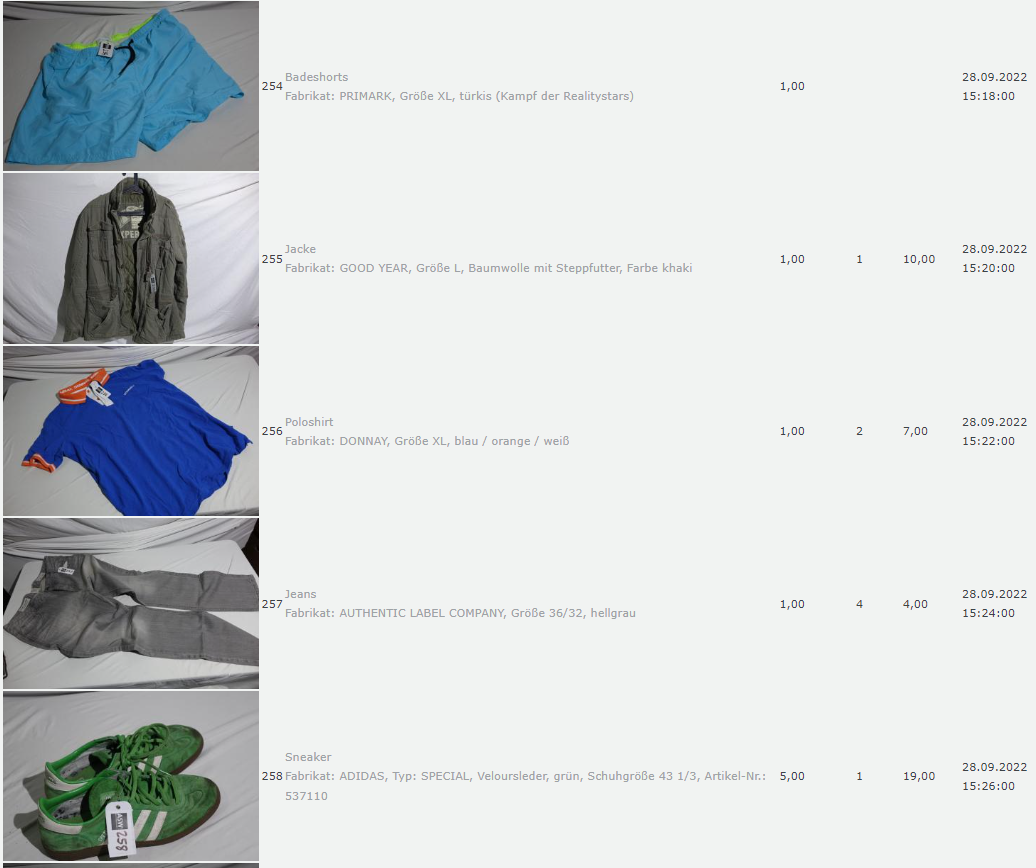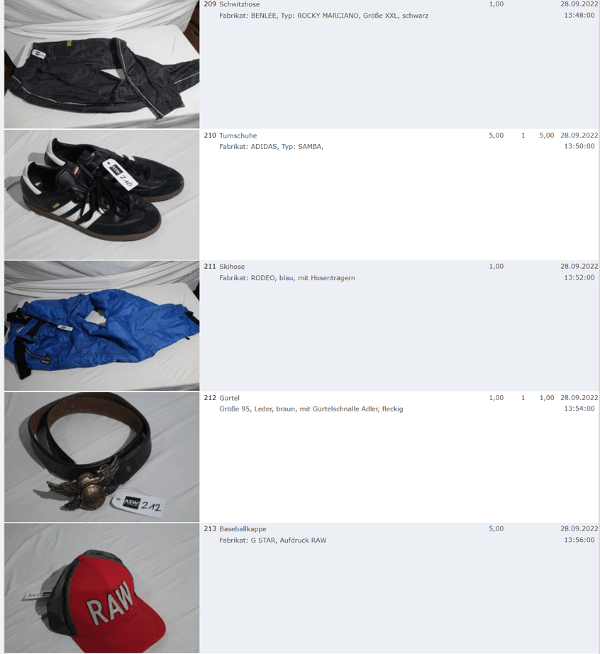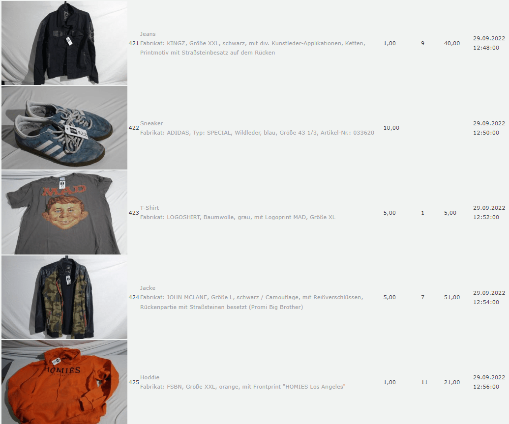 Ich weiss auch nicht aber irgendwie macht mich das alles ein bisschen Fassungslos. Ich meine, verspricht man sich da wirklich so viel Erlös davon dass es den Aufwand lohnt einen Mitarbeiter von einem Auktionshaus da hin zu setzen um Fotos von alten Klamotten zu machen? Glaubt man wirklich dass jemand Boxershorts mit Flecken von Willi Herren kauft?