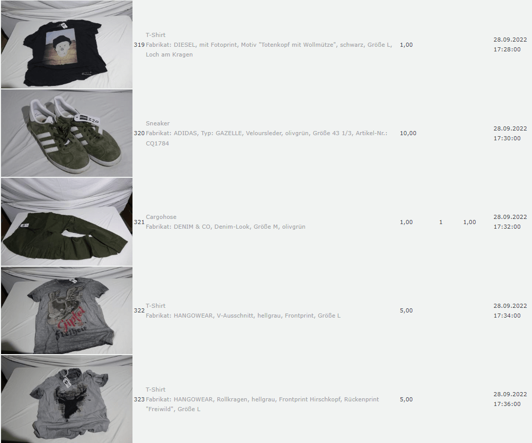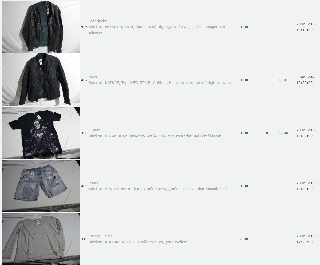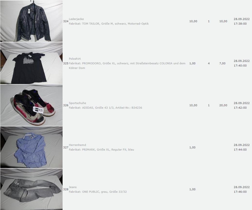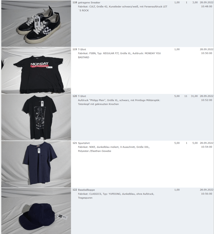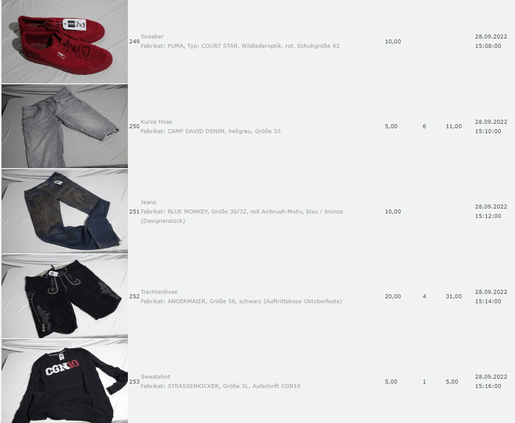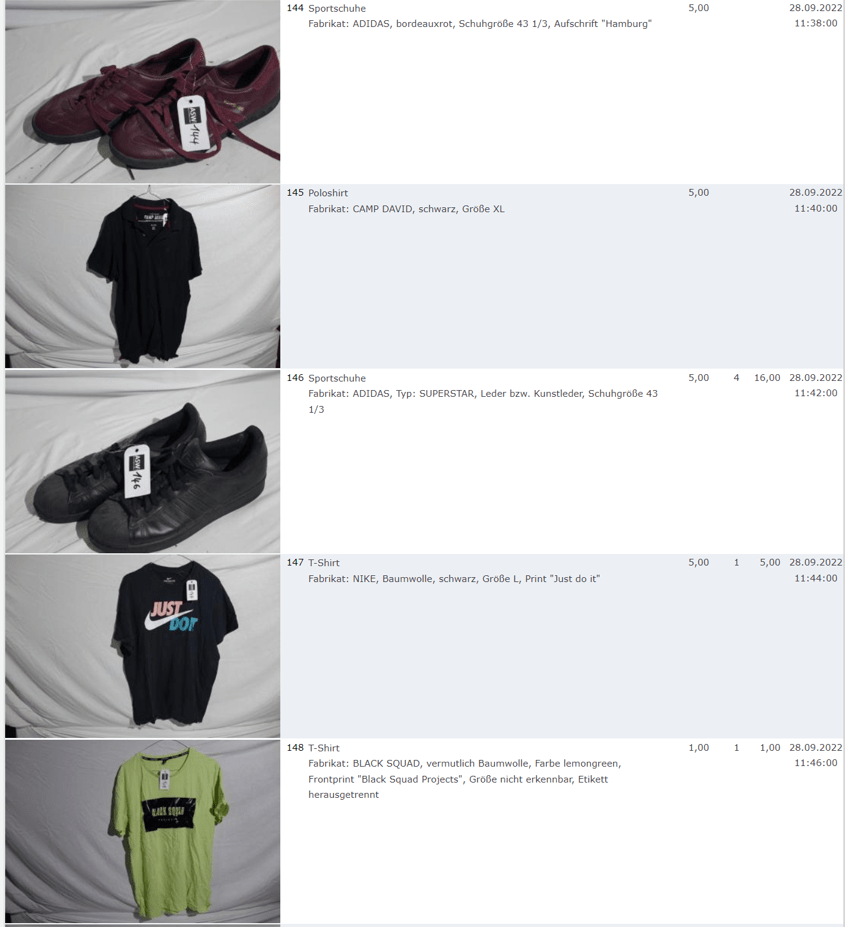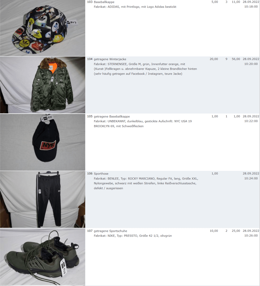 Ich weiss auch nicht aber irgendwie macht mich das alles ein bisschen Fassungslos. Ich meine, verspricht man sich da wirklich so viel Erlös davon dass es den Aufwand lohnt einen Mitarbeiter von einem Auktionshaus da hin zu setzen um Fotos von alten Klamotten zu machen? Glaubt man wirklich dass jemand Boxershorts mit Flecken von Willi Herren kauft?