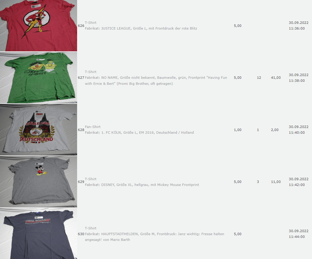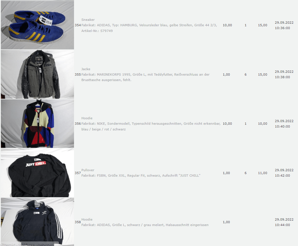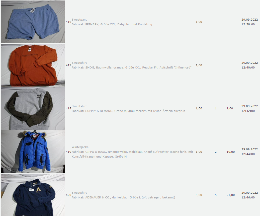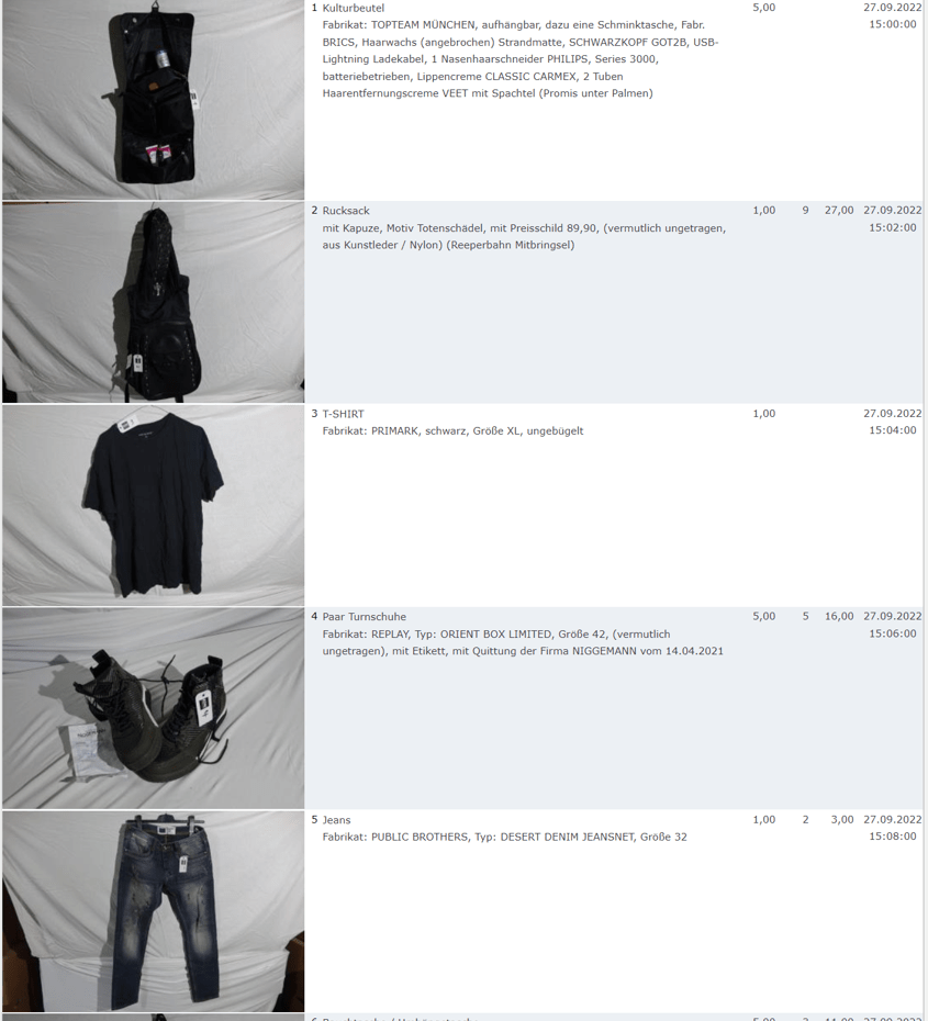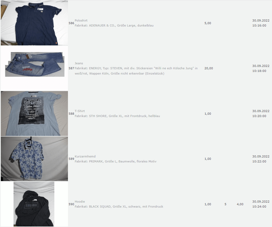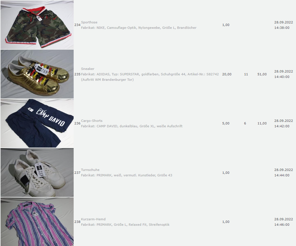 Ich weiss auch nicht aber irgendwie macht mich das alles ein bisschen Fassungslos. Ich meine, verspricht man sich da wirklich so viel Erlös davon dass es den Aufwand lohnt einen Mitarbeiter von einem Auktionshaus da hin zu setzen um Fotos von alten Klamotten zu machen? Glaubt man wirklich dass jemand Boxershorts mit Flecken von Willi Herren kauft?