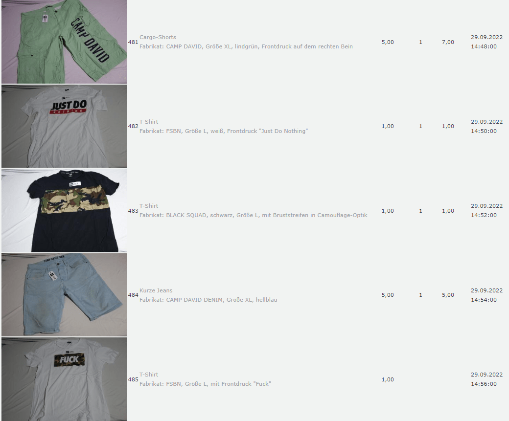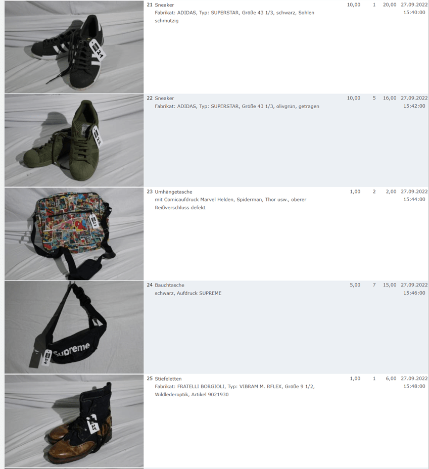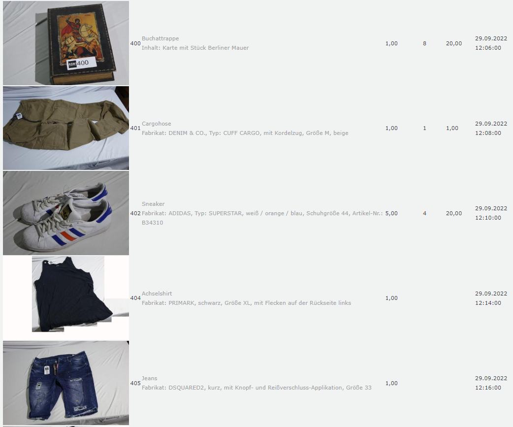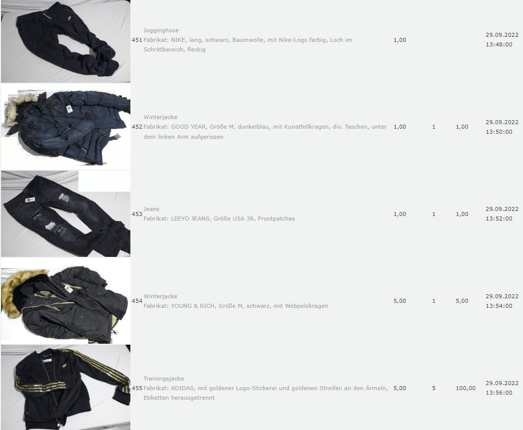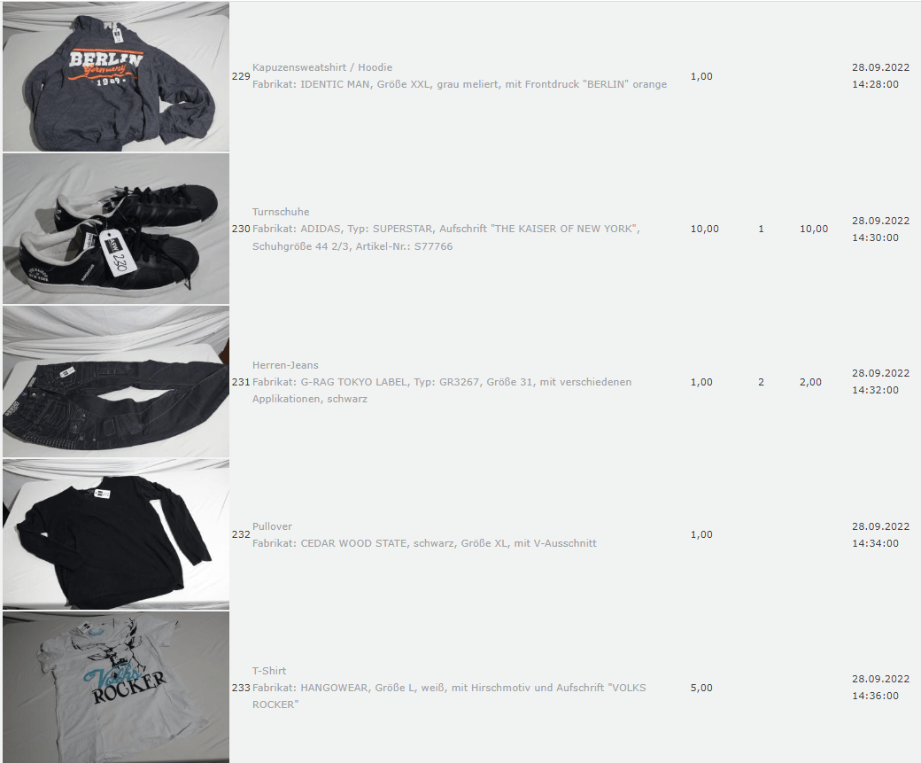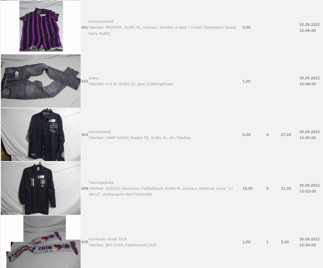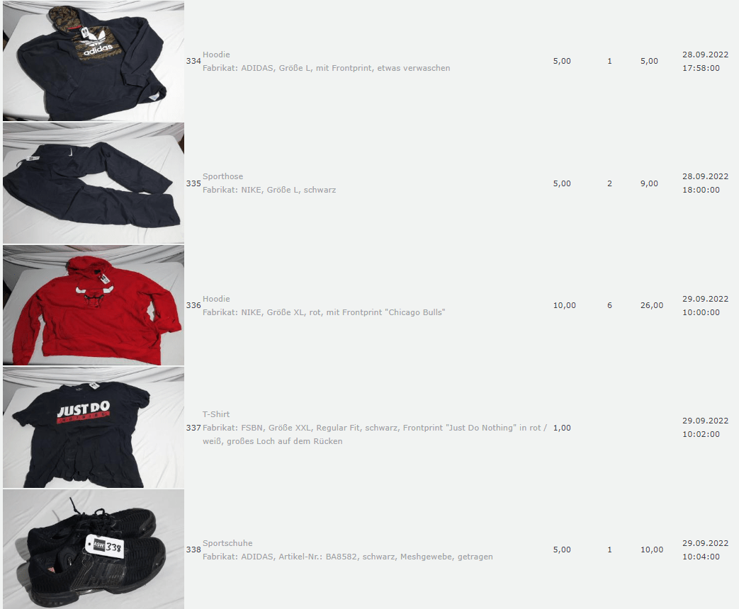 Ich weiss auch nicht aber irgendwie macht mich das alles ein bisschen Fassungslos. Ich meine, verspricht man sich da wirklich so viel Erlös davon dass es den Aufwand lohnt einen Mitarbeiter von einem Auktionshaus da hin zu setzen um Fotos von alten Klamotten zu machen? Glaubt man wirklich dass jemand Boxershorts mit Flecken von Willi Herren kauft?