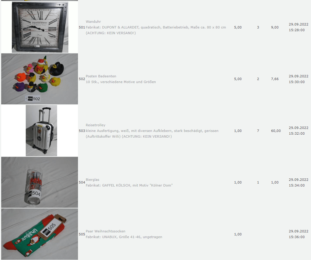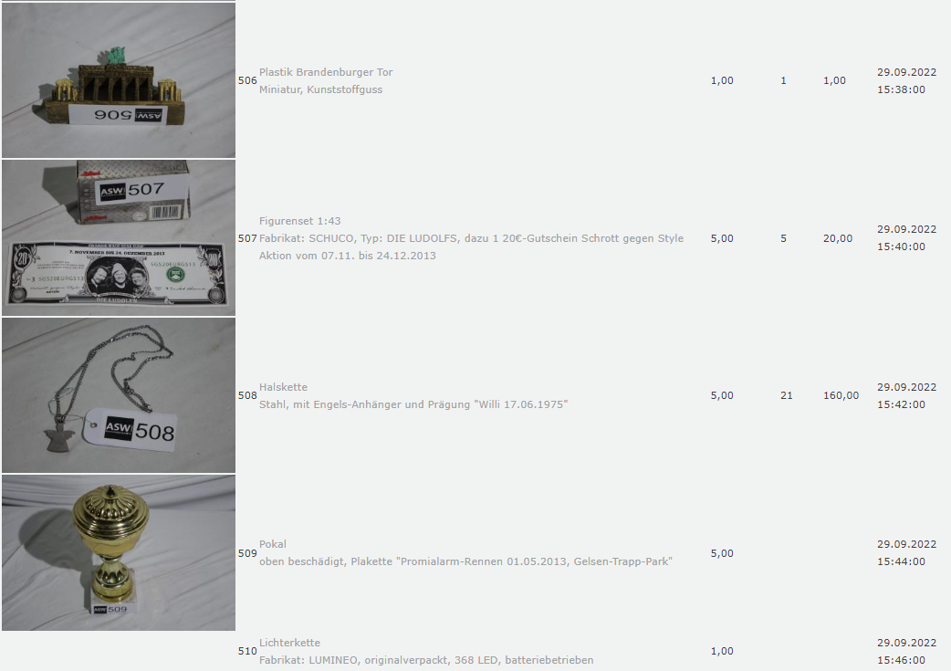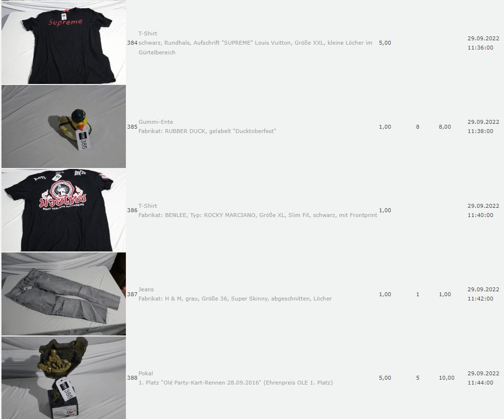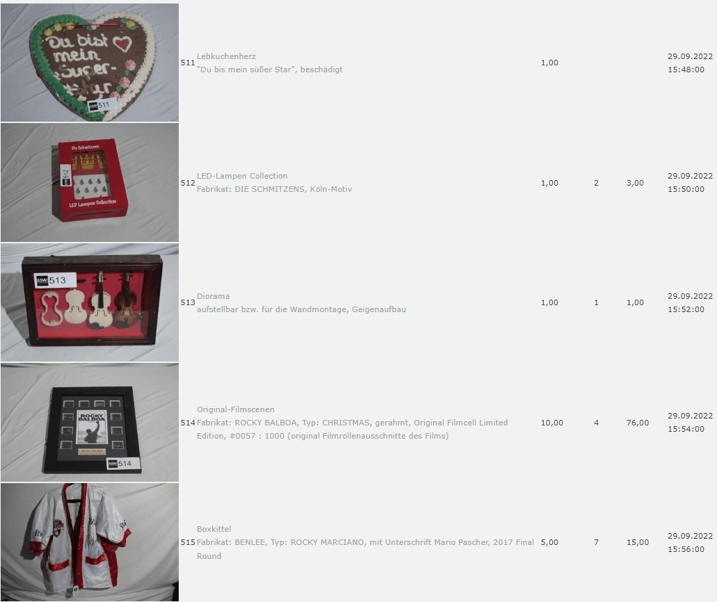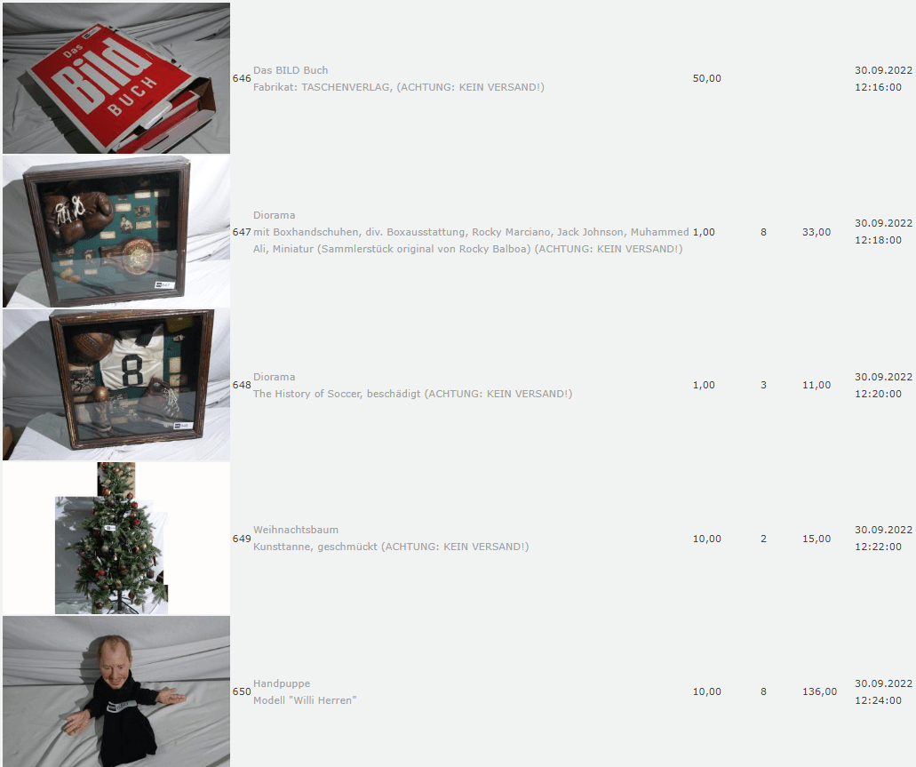 Die Dinge die da versteigert wurden fand Ich allerdings so skurril, so dass Ich mir dachte, das muss für die Nachwelt dokumentiert werden.