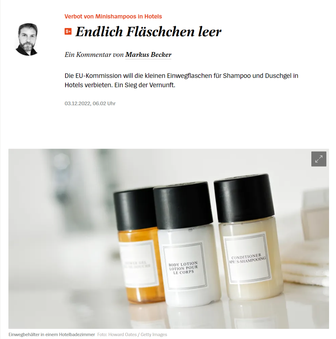 Dieser Tage bin Ich auf Spiegel Online über die Headline eines Spiegel+ Artikels gestolpert in dem darüber berichtet wurde, dass die EU solche Mini-Shampoos und Mini-Duschgel verbieten, die man in manchen Hotels kostenlos zur Verfügung gestellt bekommt.
