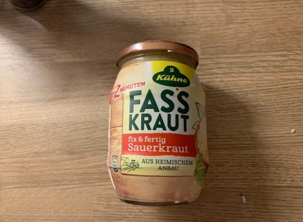 … alles gut vermengen, den Deckel auf die Pfanne geben und so lange dünsten bis das Sauerkraut Temperatur hat.