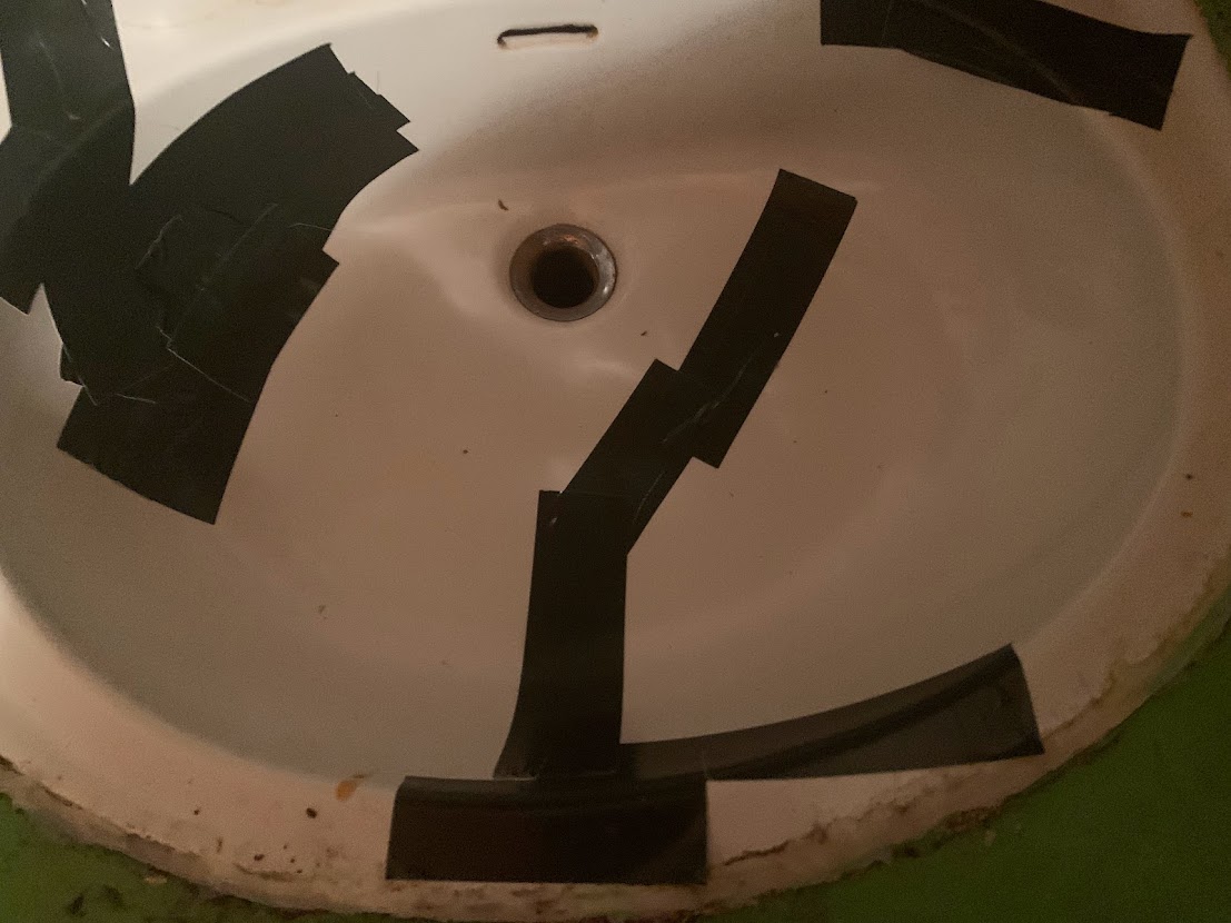 Ich hab bei mir im Homeoffice / Schlafzimmer im Haus meiner Mutter noch ein altes Bad, das Ich so als kleine „Teeküche“ nutze. Das heisst da steht ein Kühlschrank drin für Getränke und Snacks, ein Wasserkocher zum Tee kochen und eine Kaffeemaschine. Leider ist da auch ein sehr altes Waschbecken drin, dessen Porzellan schon viele Sprünge hatte.