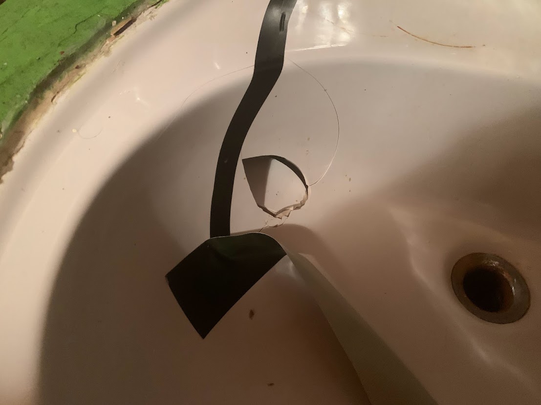 Da sah Ich dann, günstig ist das nach den „Technischen Lieferbedingungen der Bundeswehr“ unter der Nummer 7510-0023 hergestellte Band zwar nicht gerade (die kleine 5 m Rolle kostet 4,99 €, 50 m kosten nur noch 17 €) aber da Ich ja nur eine kleine Menge brauchte und ein neues Waschbecken teurer käme (und mit extrem mehr Arbeit verbunden wäre), dachte Ich probier das doch mal aus.