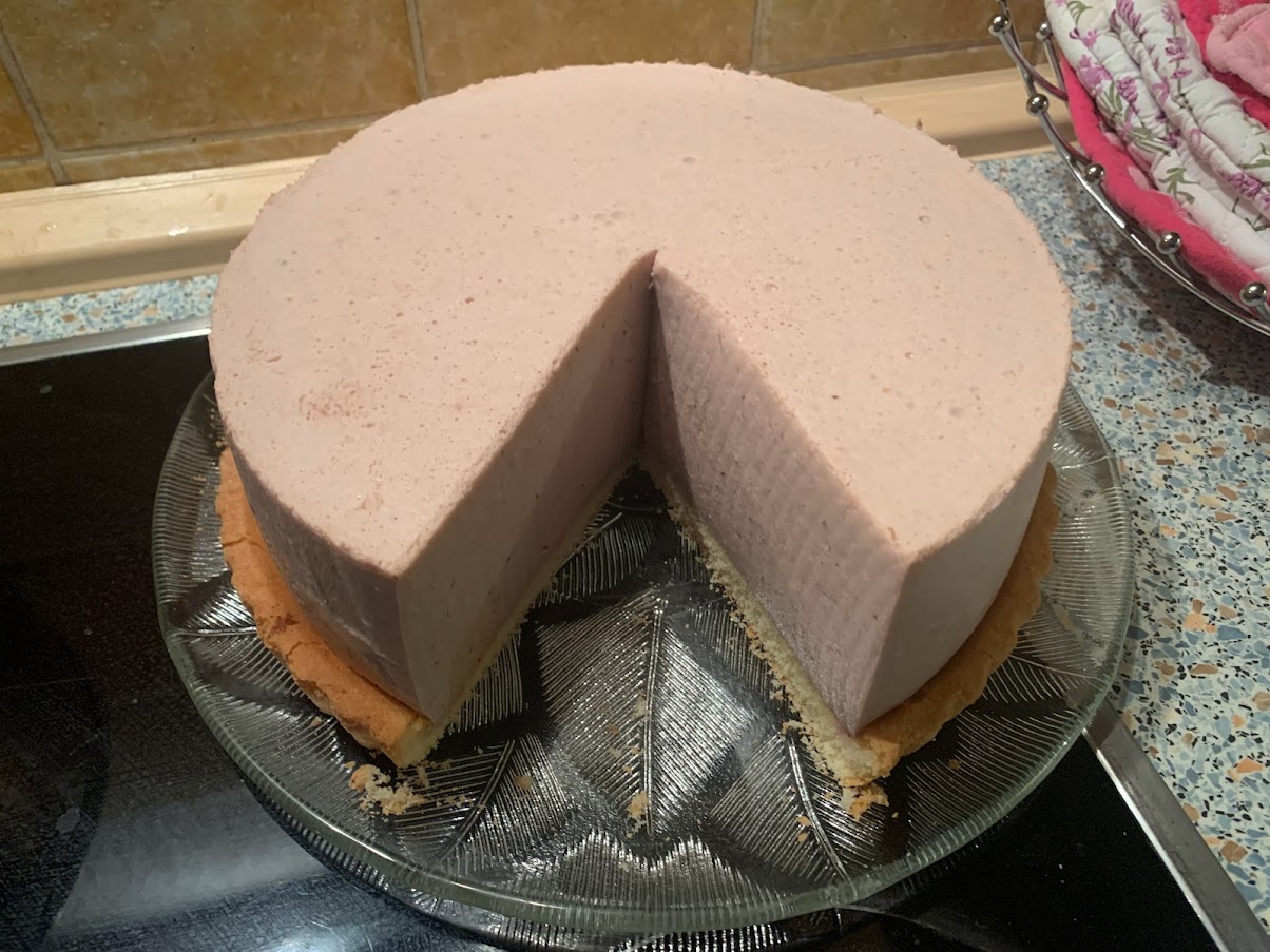 Ich hatte dazu Quark mit Zucker und pürierten Dosenerdbeeren vermengt und mit Gelatine gebunden auf einen Tortenboden gequetscht. Geschmacklich war das leider eher so meh…