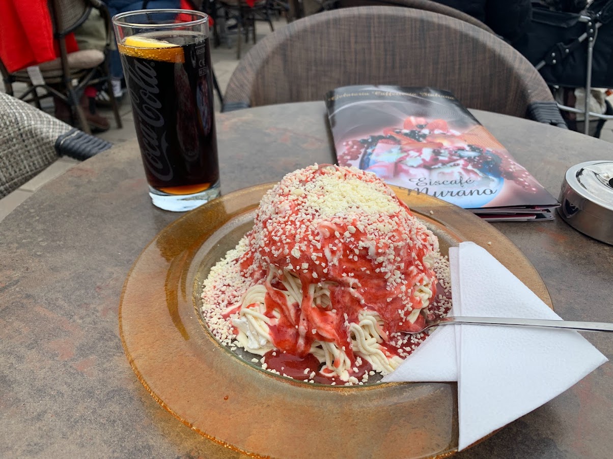 Anschliessend fraß Ich auf dem Kornmarkt ein riesen Spaghettieis in mich rein das mich inkl. Cola 16 € gekostet hat.