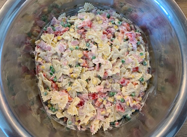 Der Nudelsalat ist einfach ein Klassiker der deutschen Küche. Es gibt ihn nicht nur mit allerlei Zutaten wie Fleischwurst, Schinken, Ei, Mais, Erbsen, Paprika, saure Gurken, Tomaten, Käse in Form von Gouda oder Feta oder Mozzarella oder Edamer oder was weiß ich, was für ein Käse noch, Oliven oder Zwiebeln, sondern auch mit den unterschiedlichsten Saucen aus Sahne, Schmand, Mayonnaise, Salatcreme, Essig und Öl und so weiter und sofort.