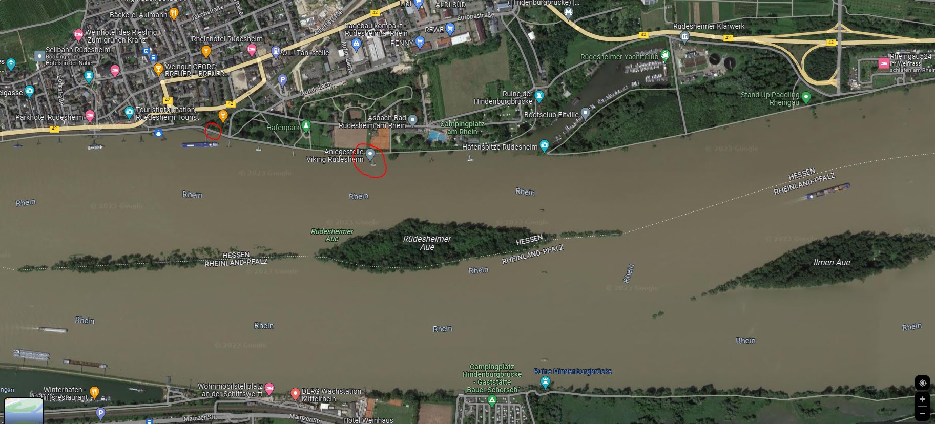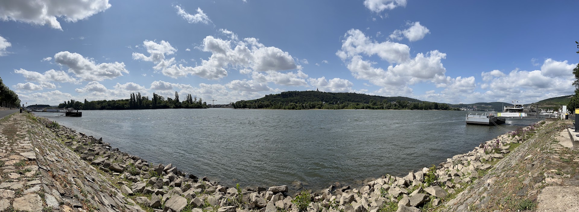 All zu viel Rhein sieht man hier aber nicht, da Ich mich hier direkt an den drei Inseln vis a vis vom Bingener Hafen befinde und die Haupt-Schifffahrtsroute soweit Ich weiss, oder besser gesagt die Fahrrinne, sich auf der anderen Seite der Inseln befindet.